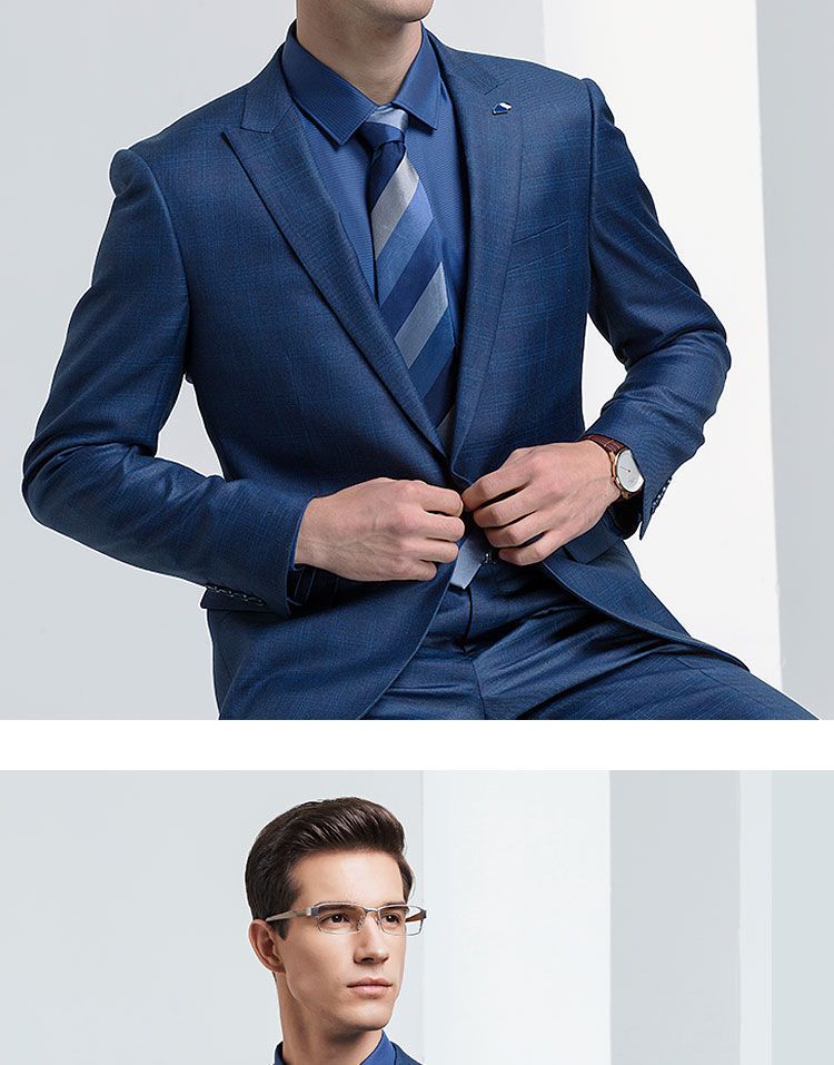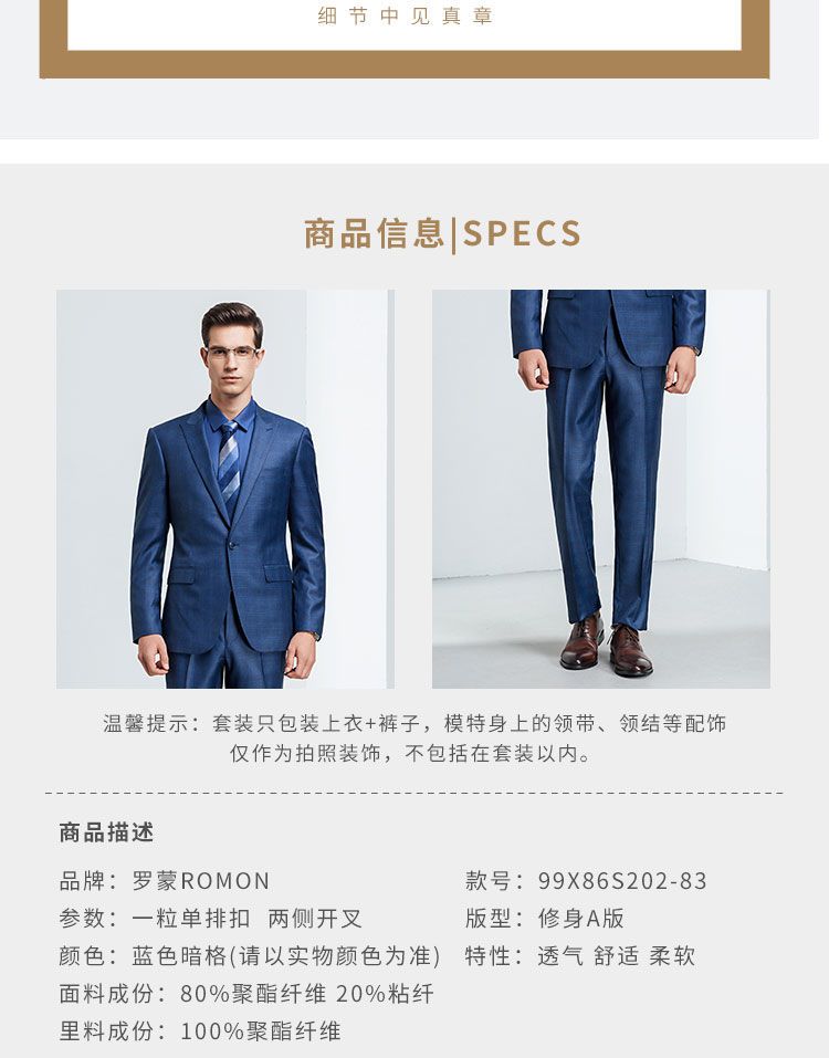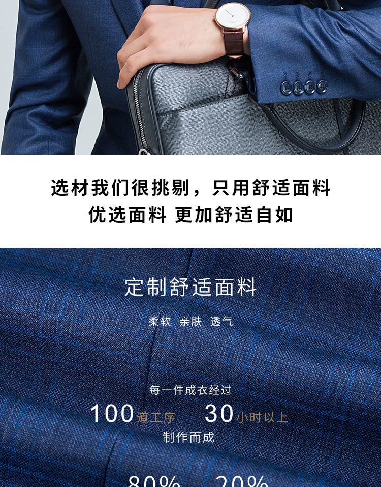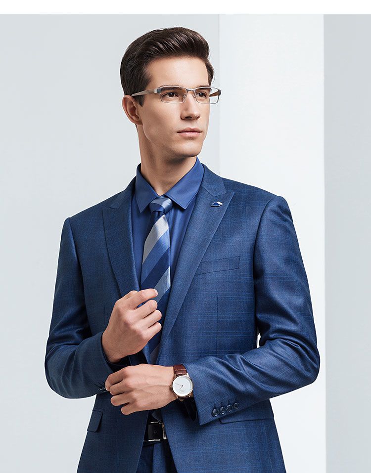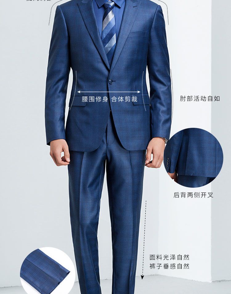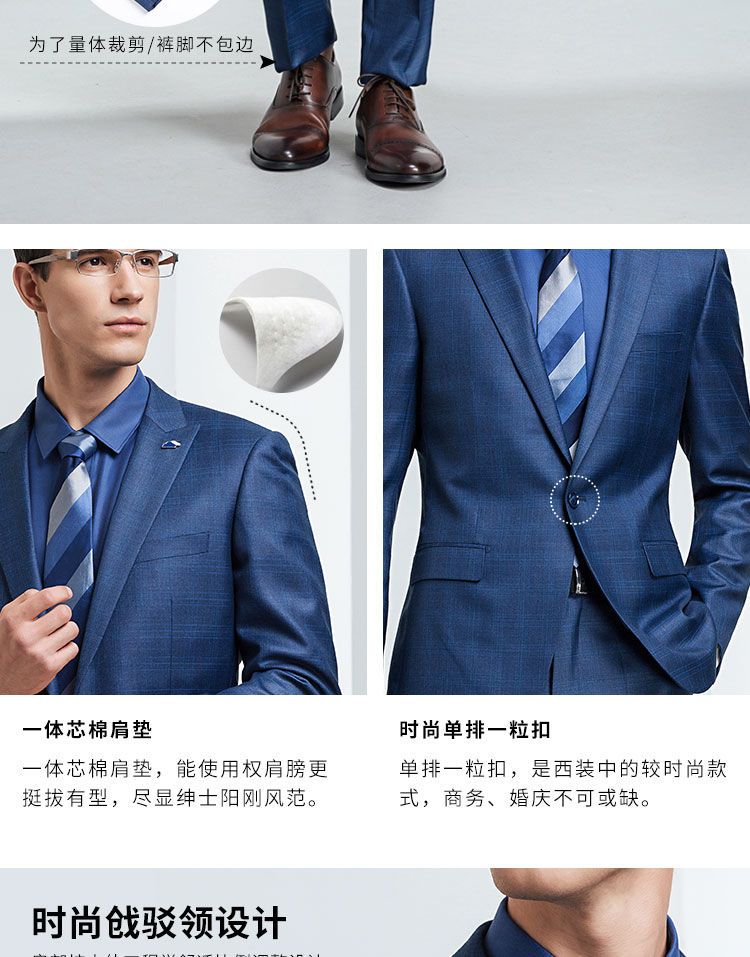 【上衣+裤子】罗蒙西装套装男士时尚修身款格纹西服新郎结婚礼服