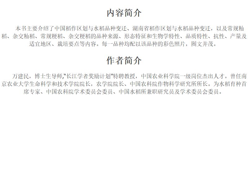 中国水稻品种志 湖南常规稻卷 万建民 总主编 余应弘 主编
