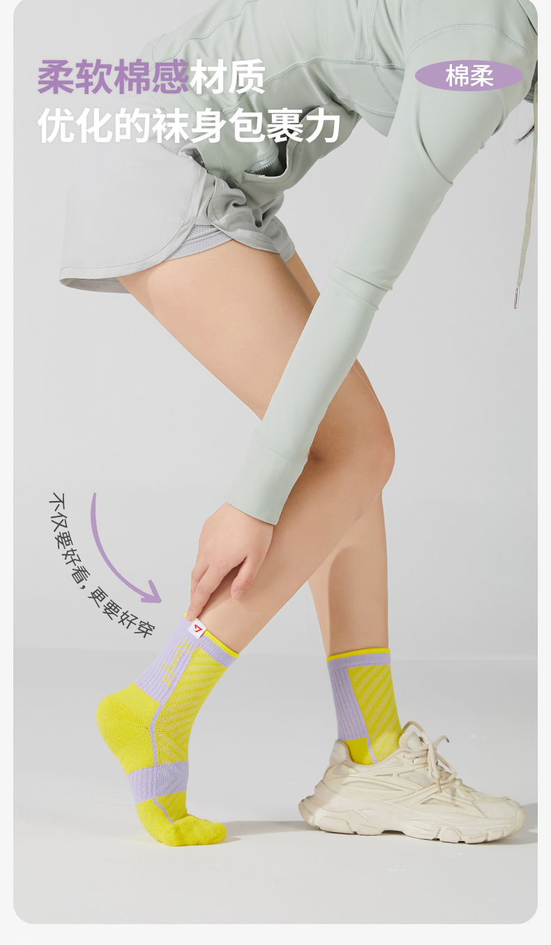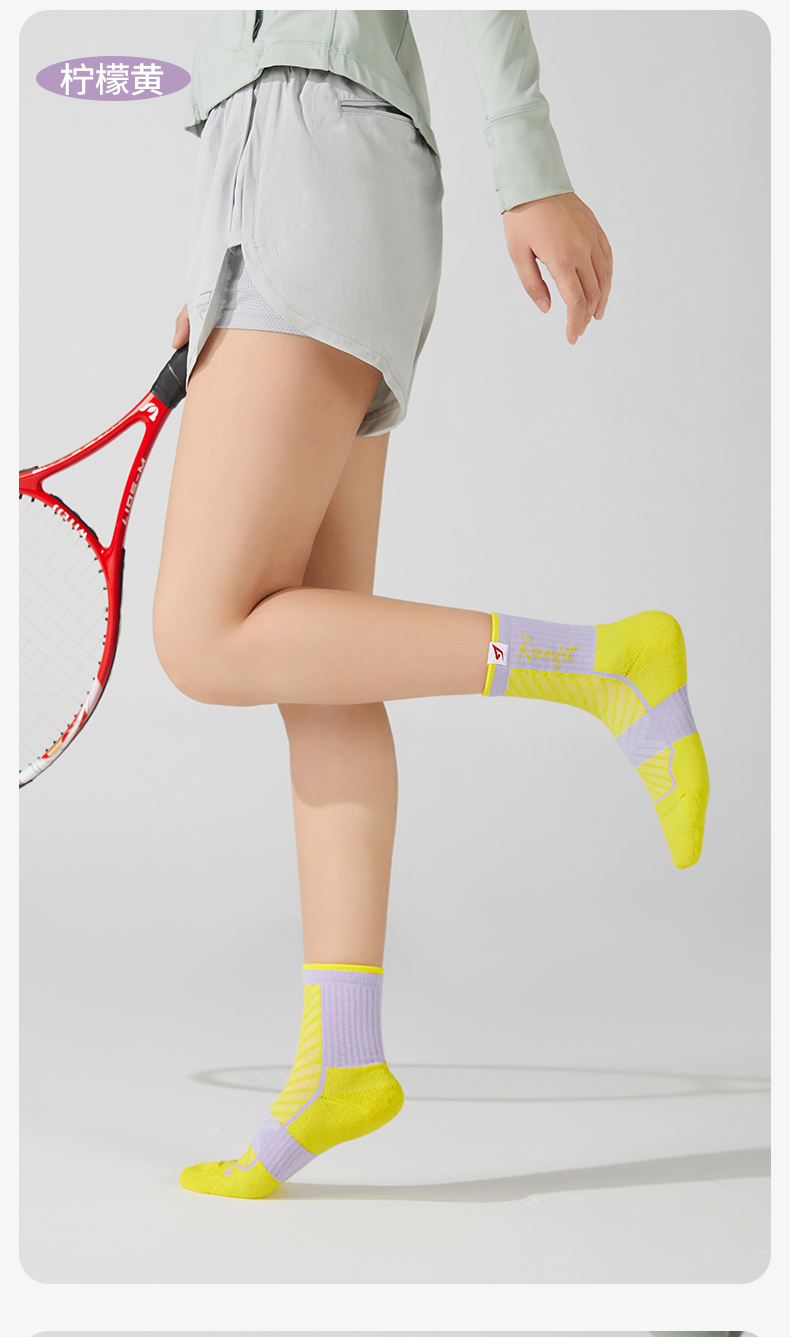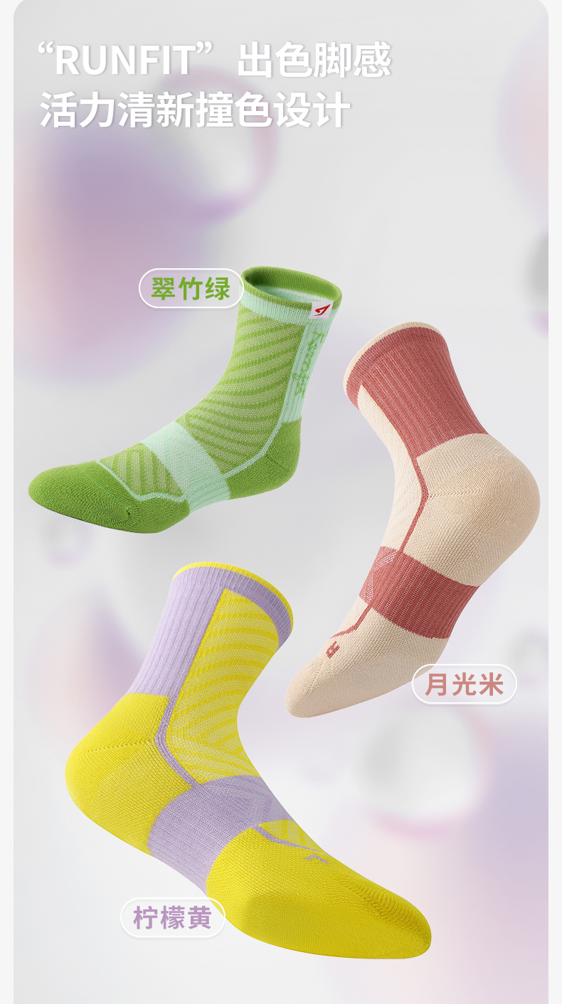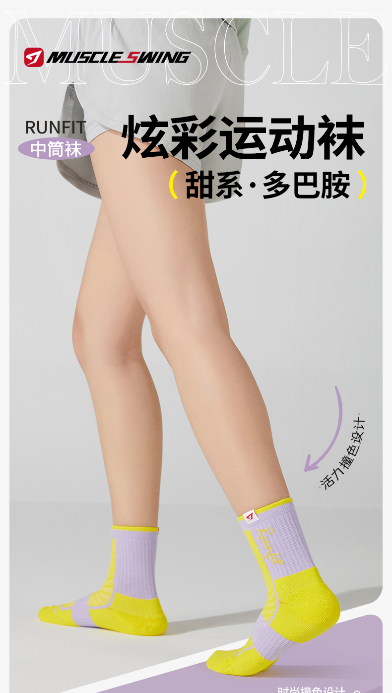 628肌动RUNFIT炫彩中筒袜女甜美多巴胺色系毛巾底运动袜子跑步训练袜