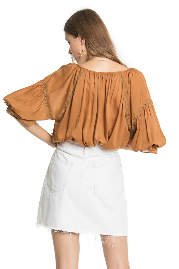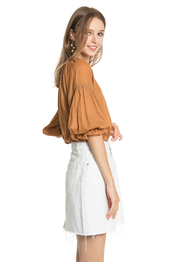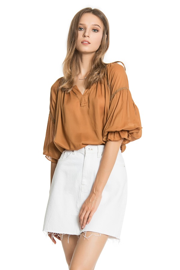 SUMMER & SAGE 白色镂空亮泽上衣 2479