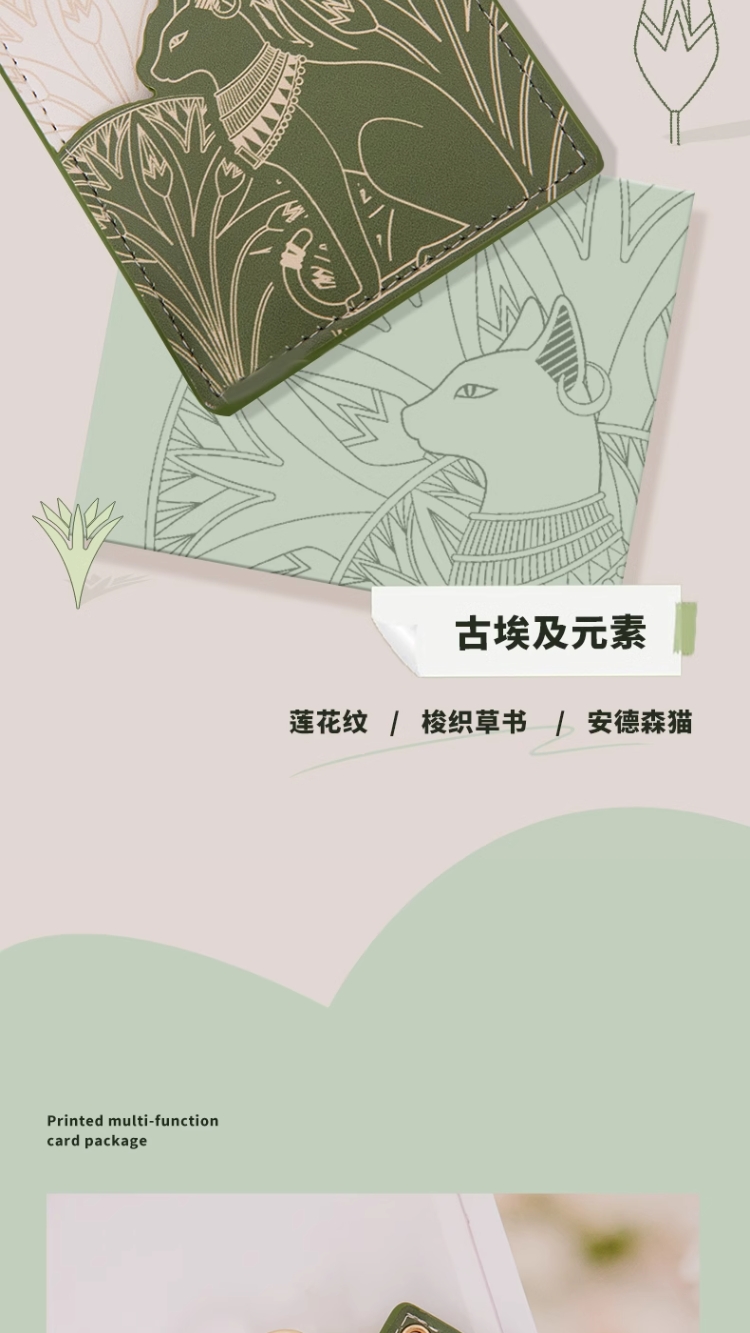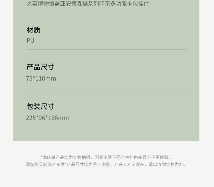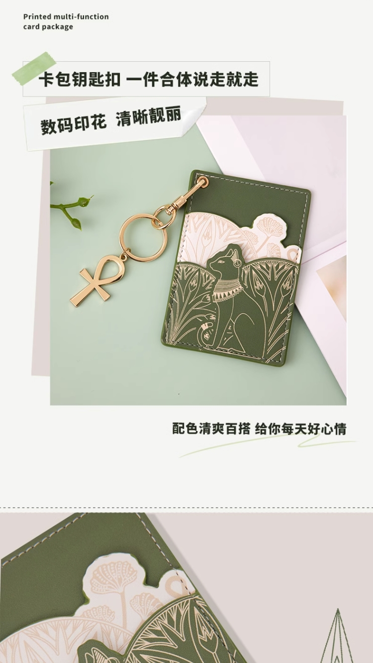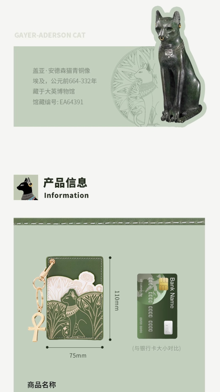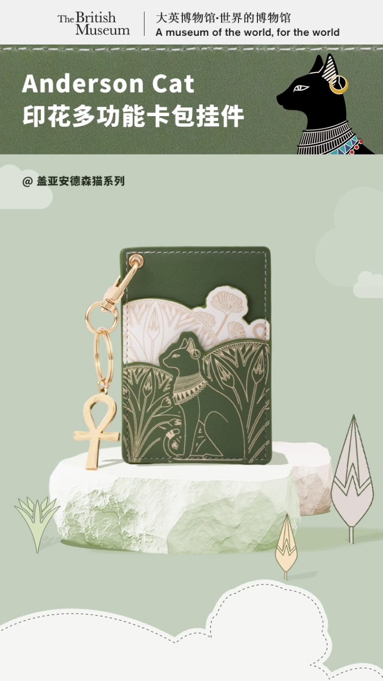大英博物馆 盖亚·安德森猫系列 印花绿色清新多功能卡包 挂件
