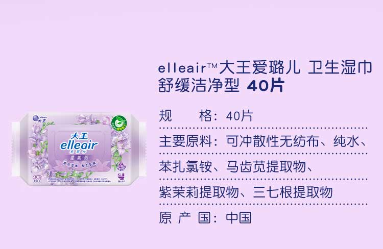 大王爱璐儿卫生湿巾舒缓洁净型40片/份