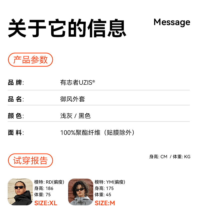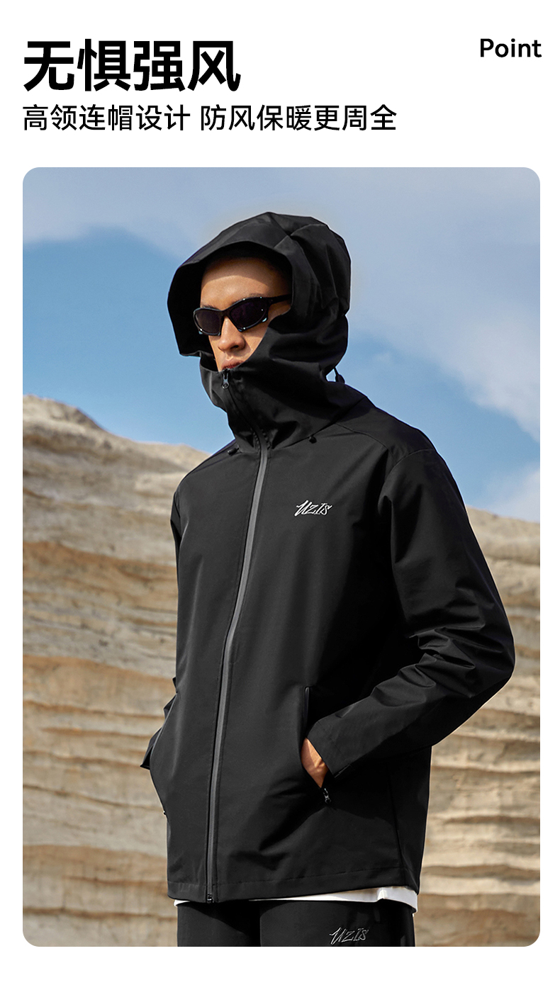 有志者UZIS 运动外套男户外防风防水冲锋衣休闲宽松连帽夹克[御风