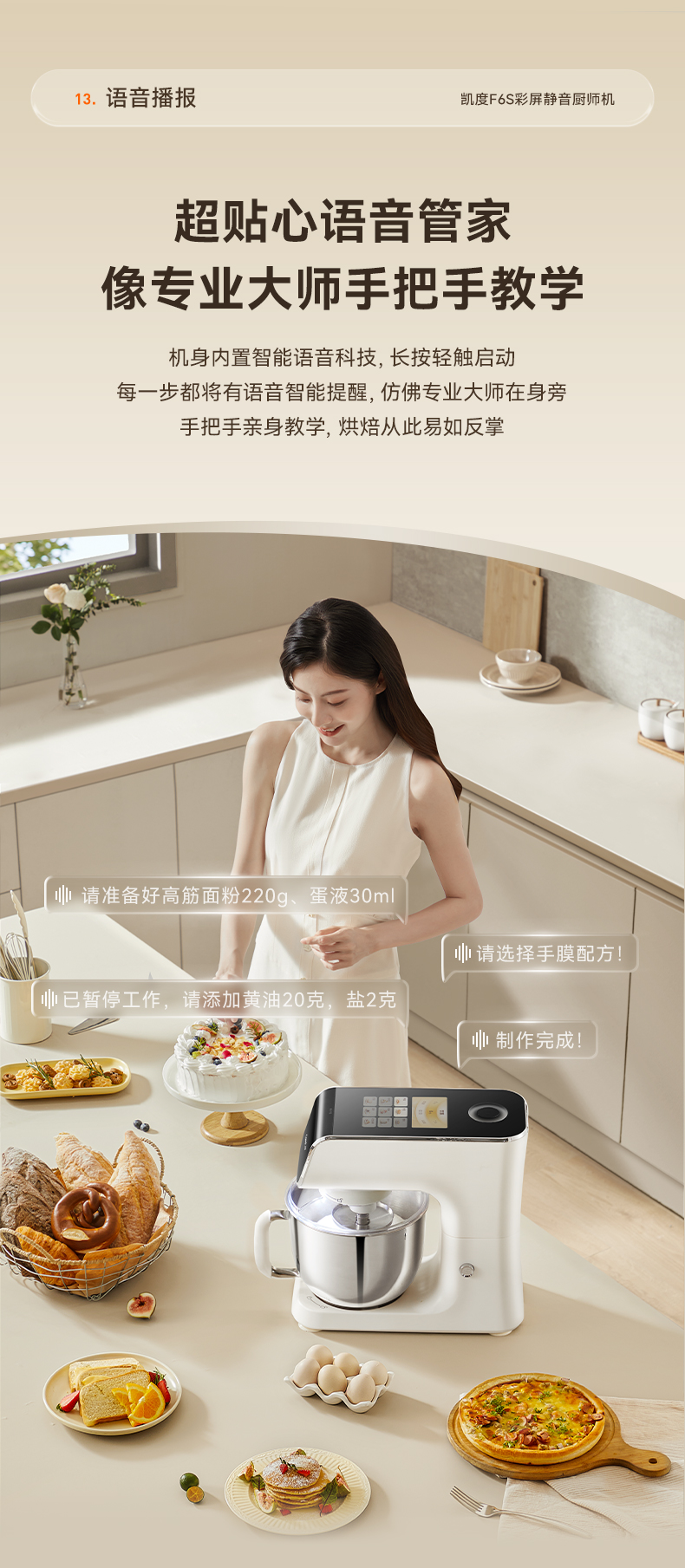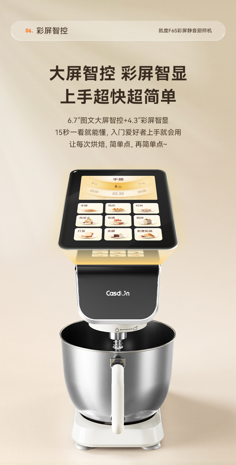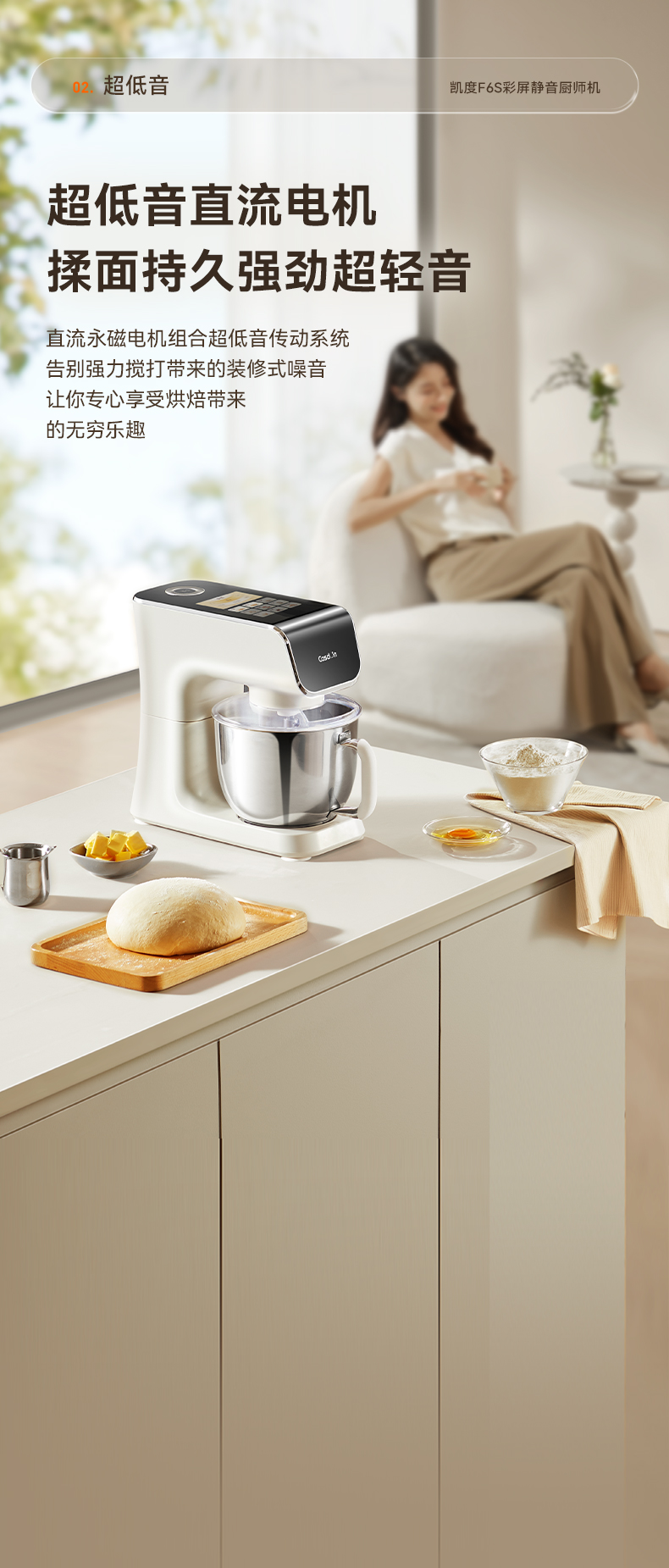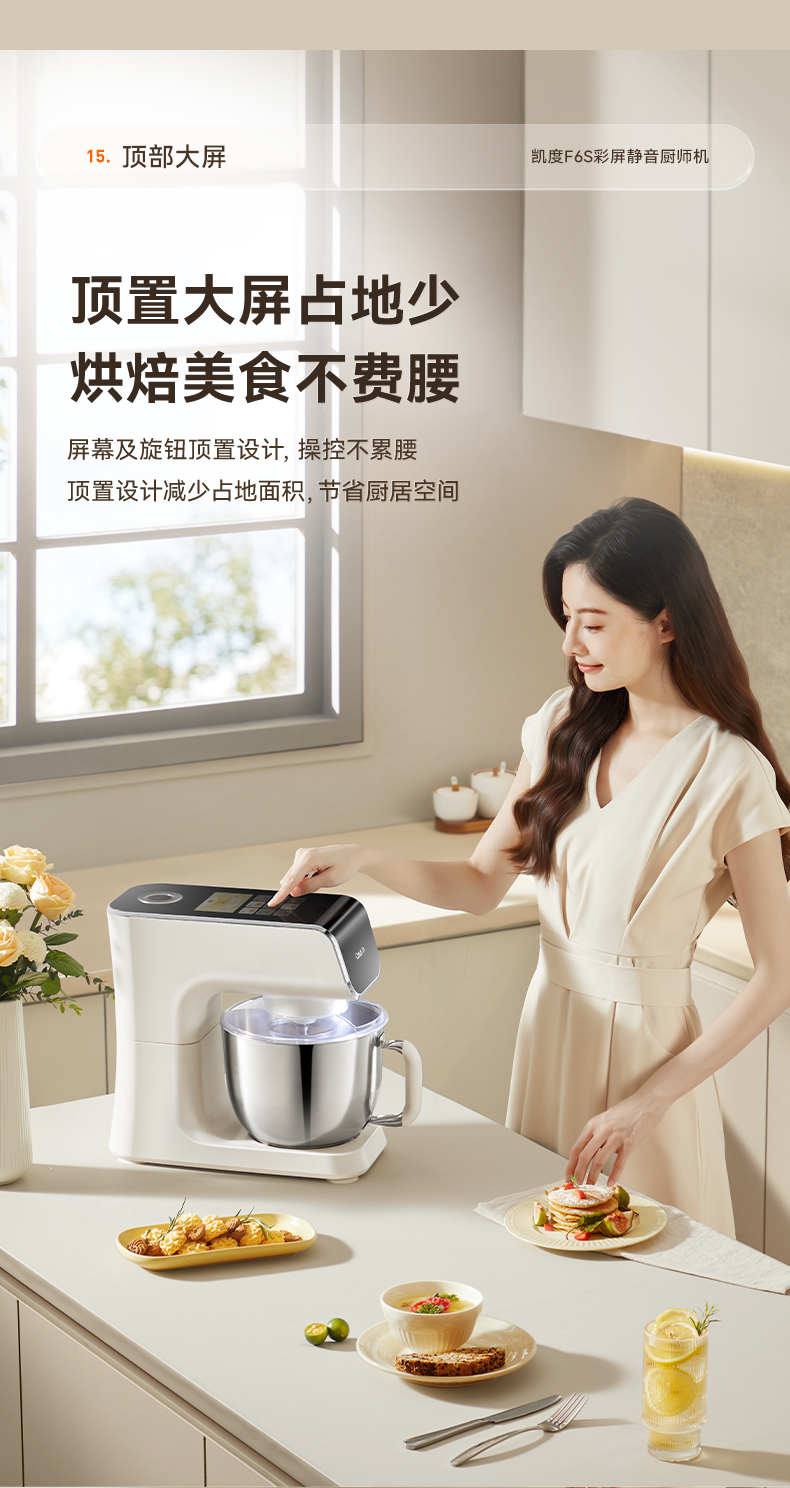 【超级新品】凯度小磐石F6S彩屏智能语音厨师机静音家用和面