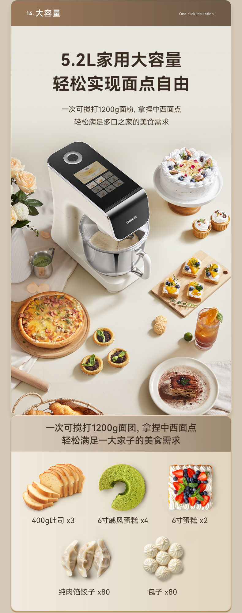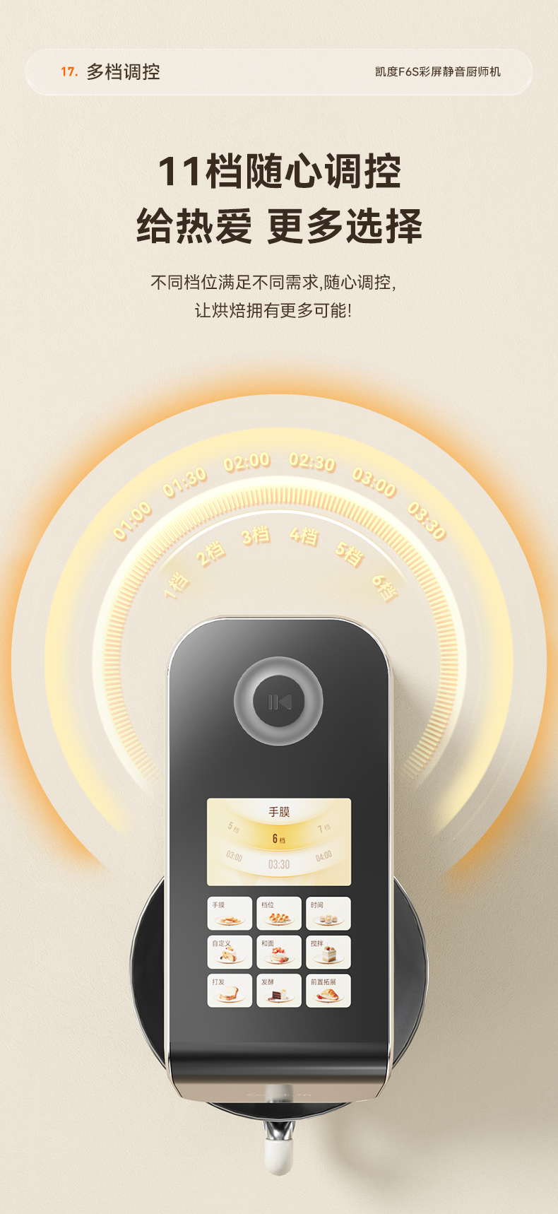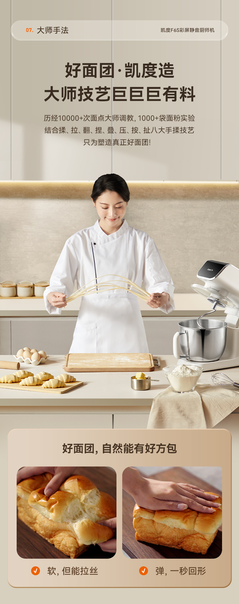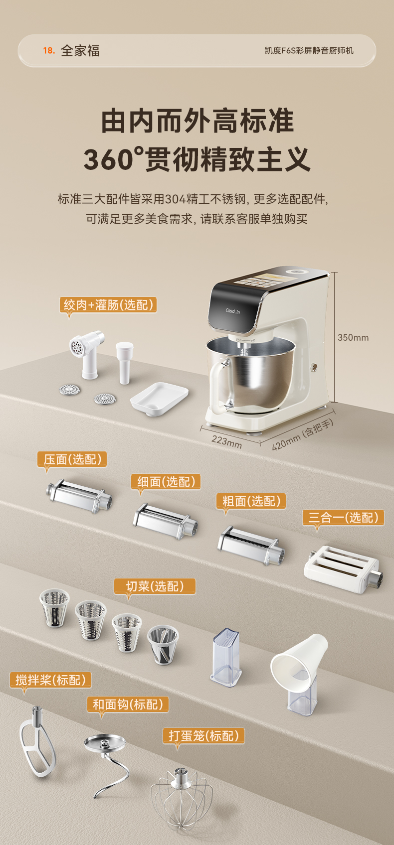 【超级新品】凯度小磐石F6S彩屏智能语音厨师机静音家用和面