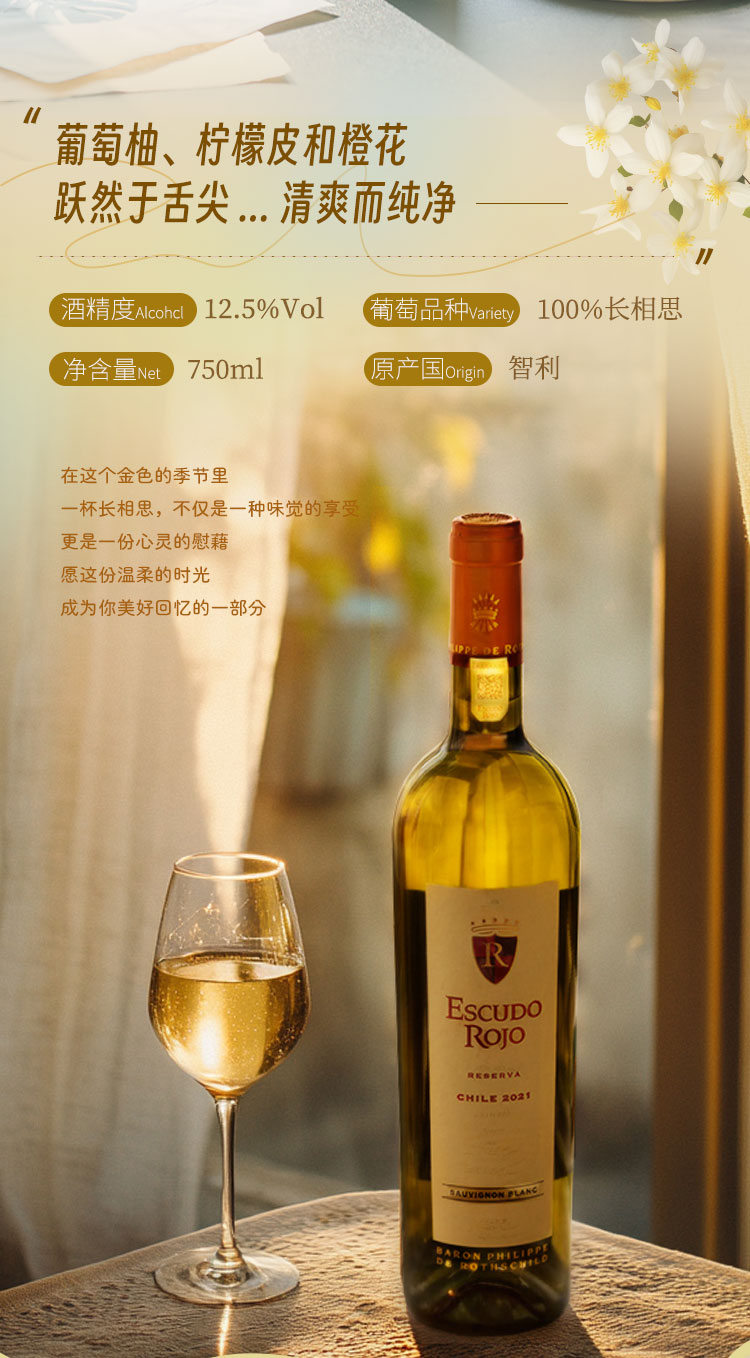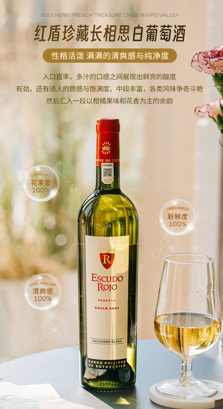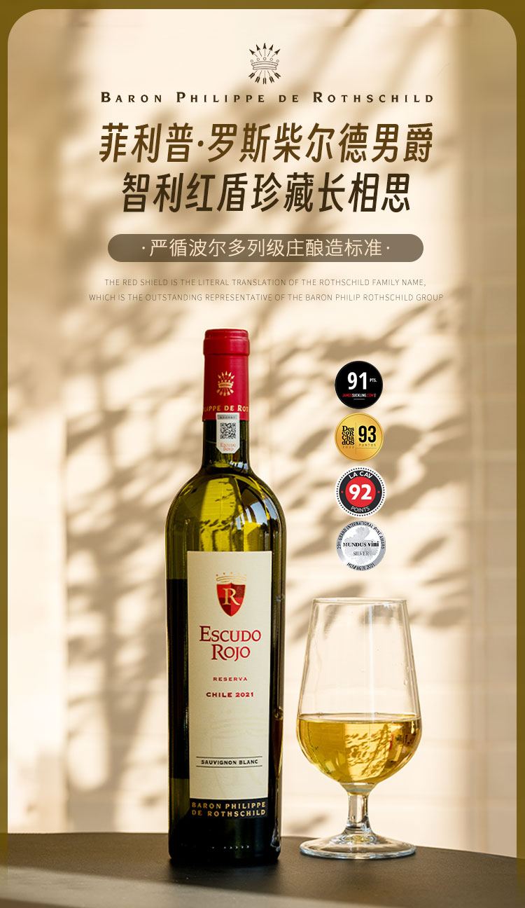 【菲利普·罗斯柴尔德男爵集团出品】智利红盾珍藏长相思白葡萄酒 智利 13%vol