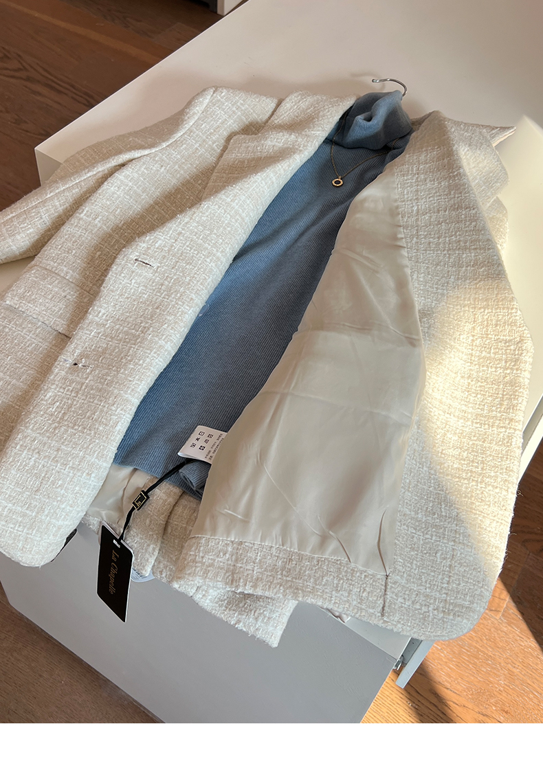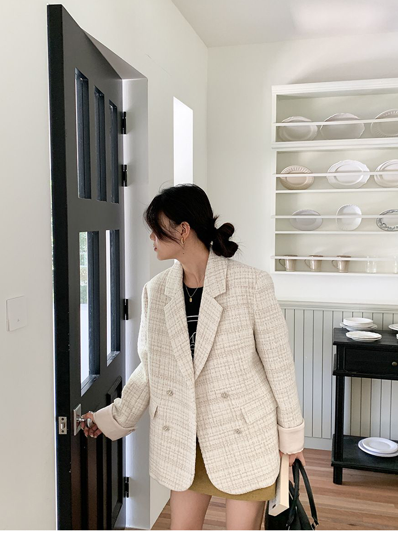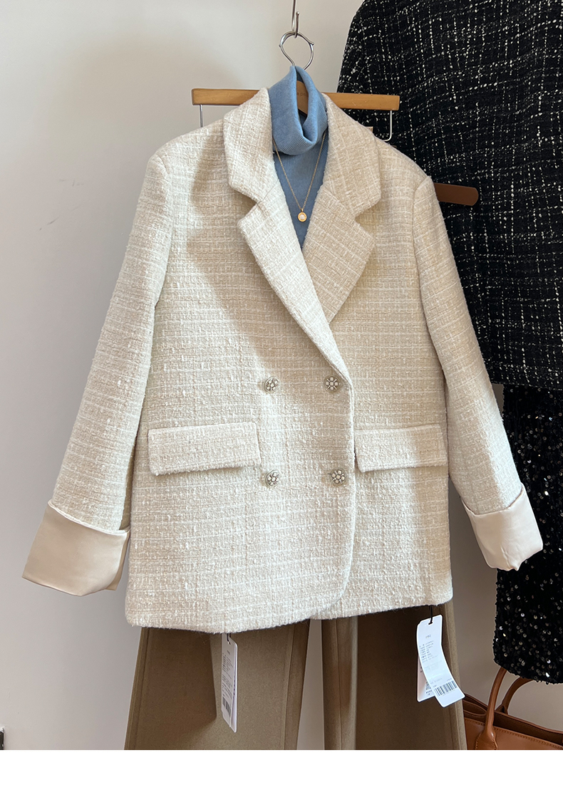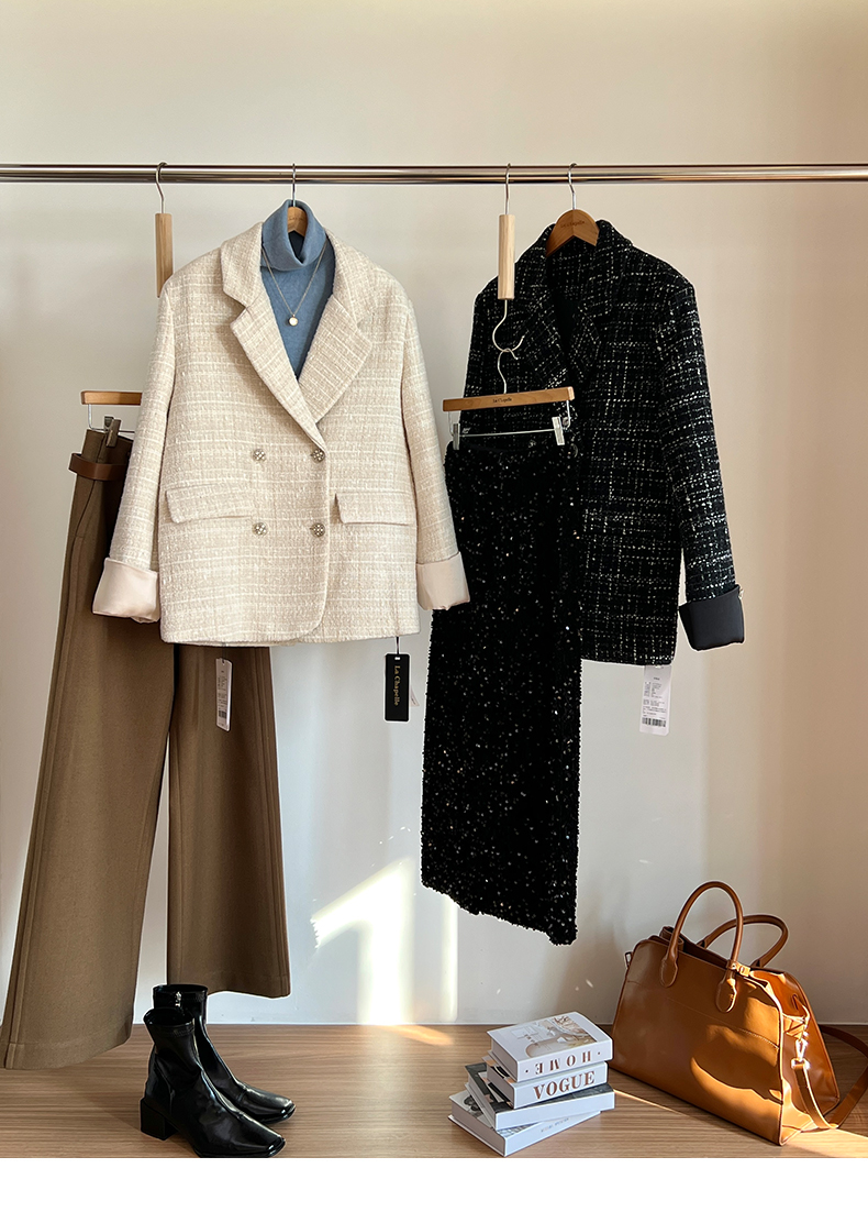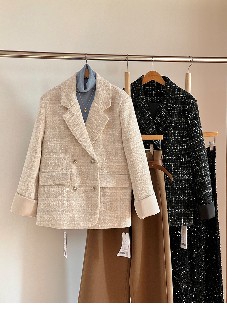 拉夏贝尔/La Chapelle高级感重工编织小香风外套~翻领双排扣廓形西装