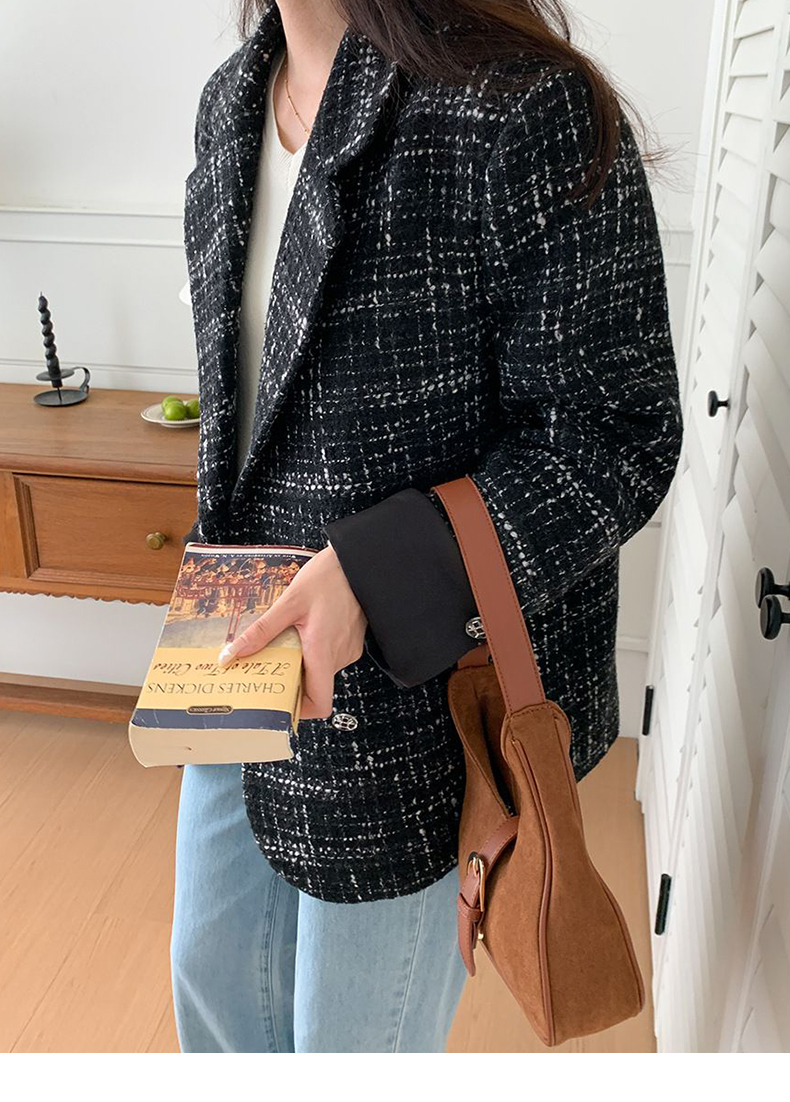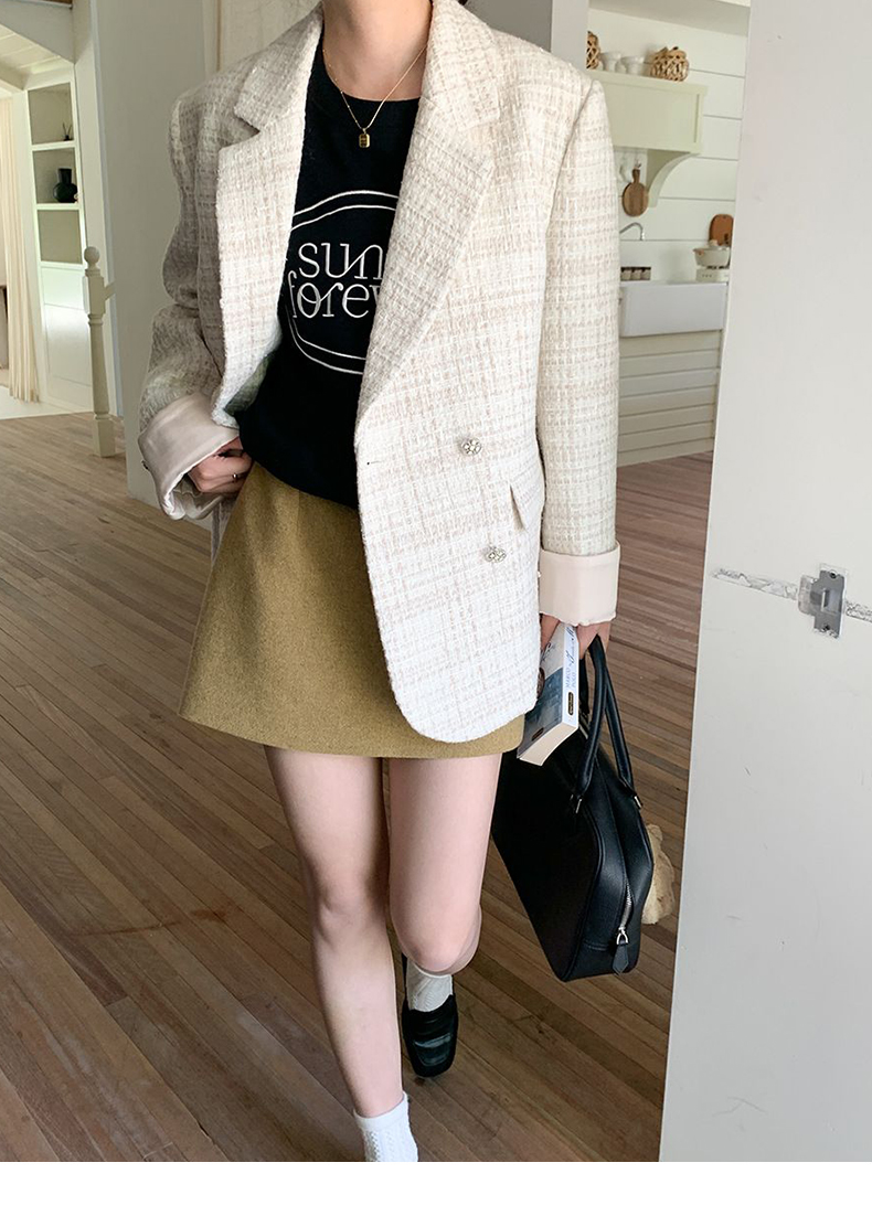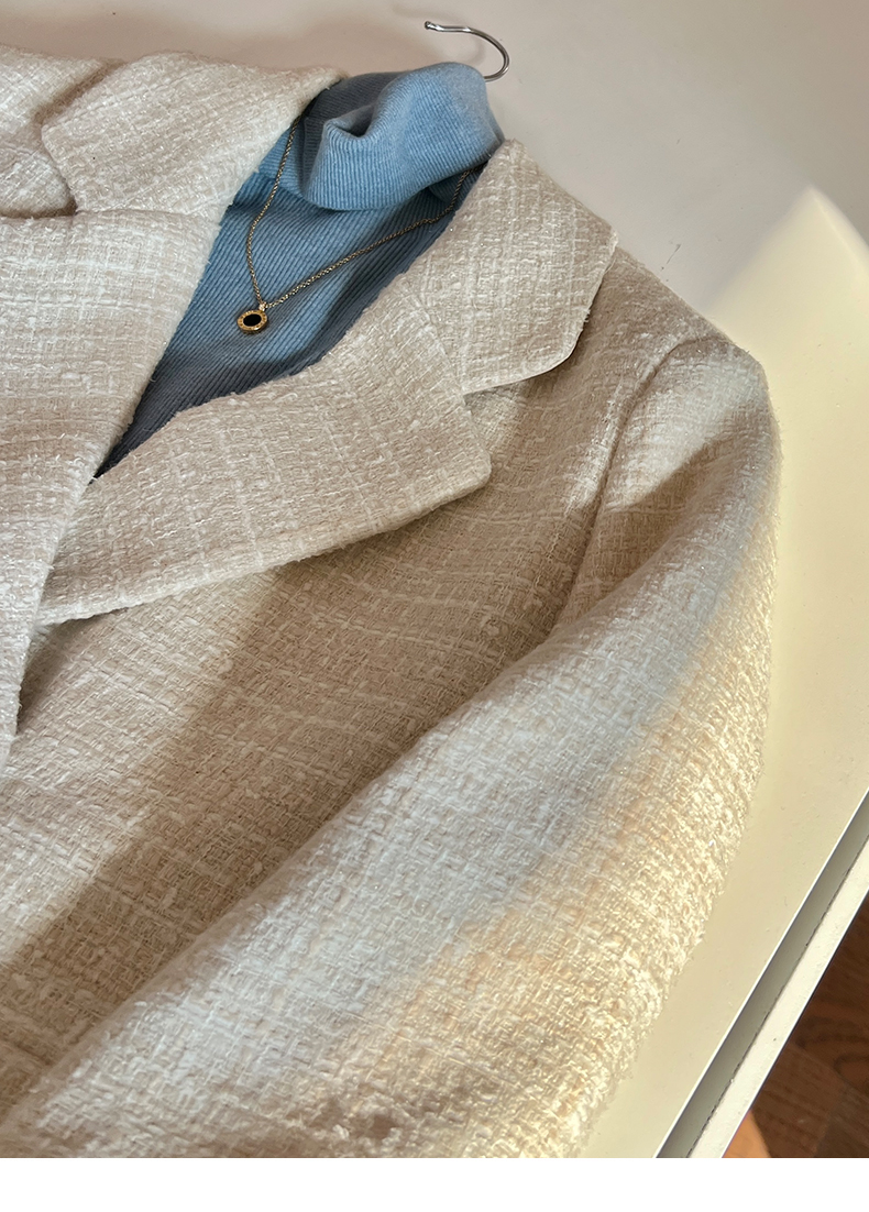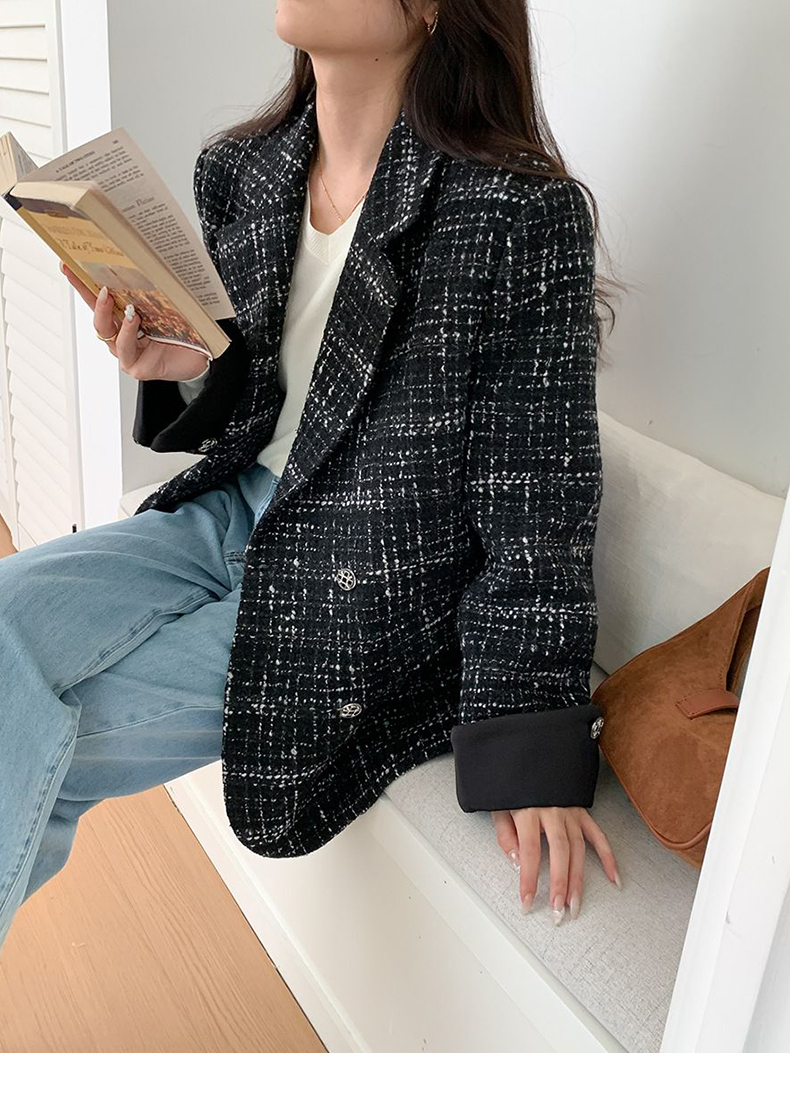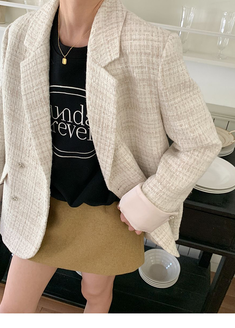 拉夏贝尔/La Chapelle高级感重工编织小香风外套~翻领双排扣廓形西装