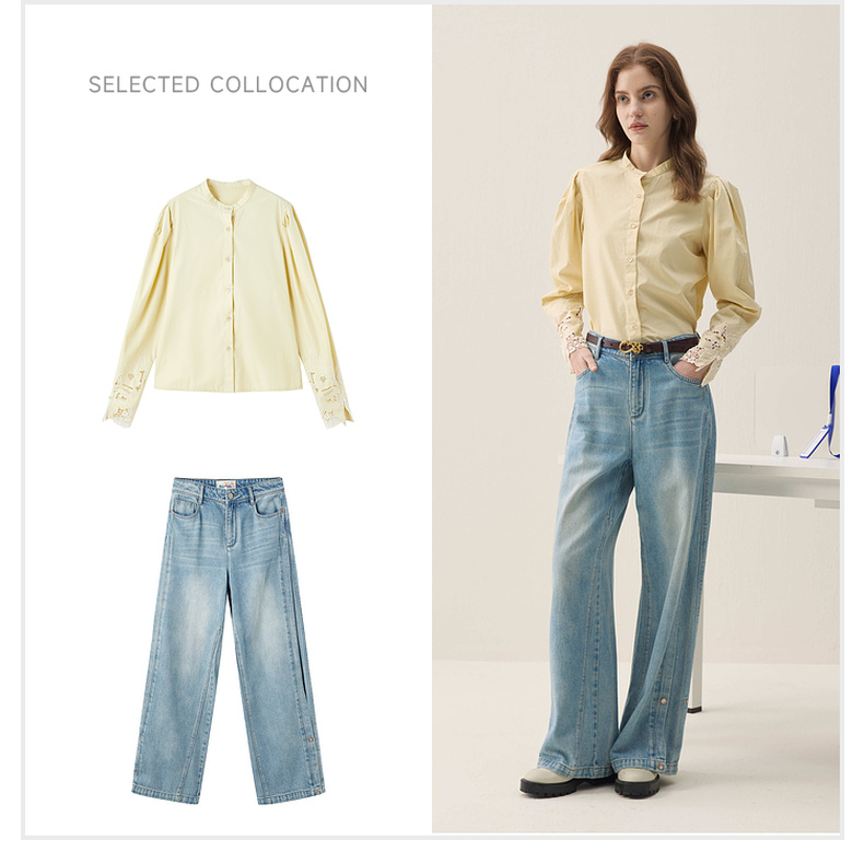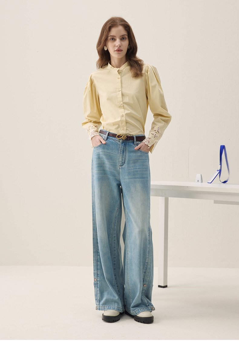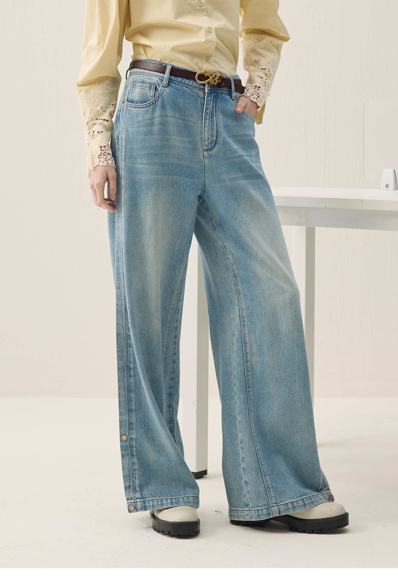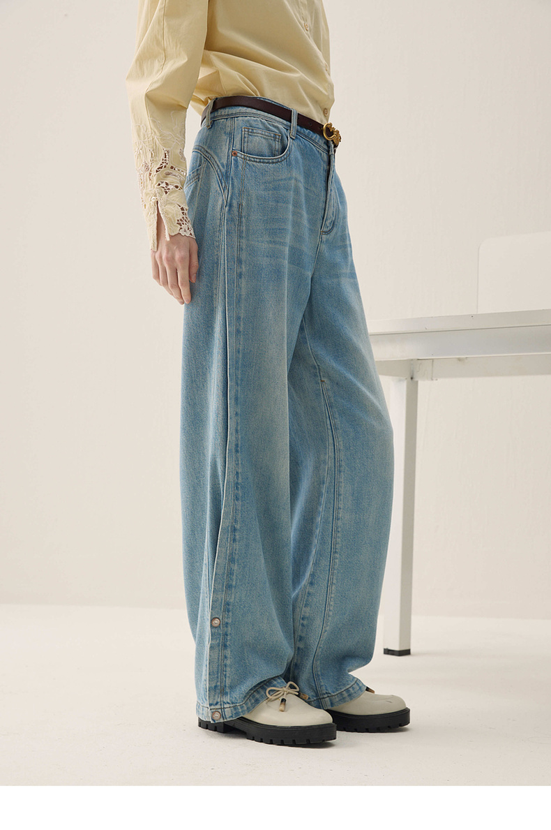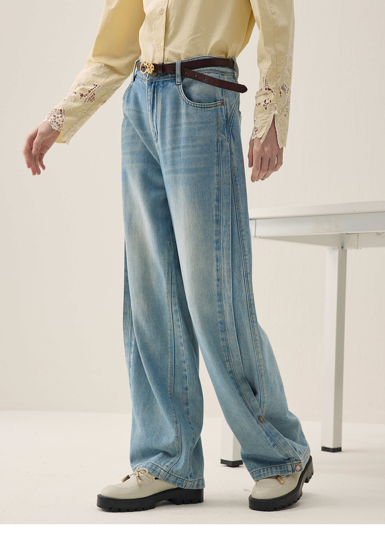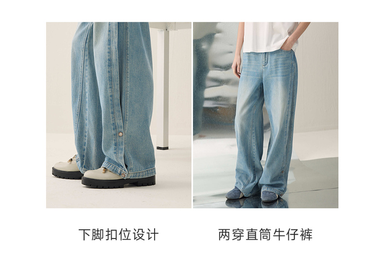 谜底直筒牛仔裤长裤2026年春季新品下脚扣位两穿复古女261MJ0222