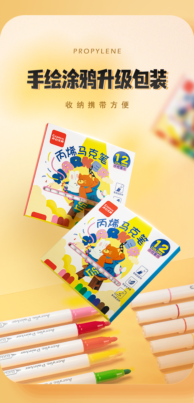 齐心BXMK10-12丙烯马克笔彩色记号笔彩色水笔防水覆盖附着性好学生儿童彩绘12色