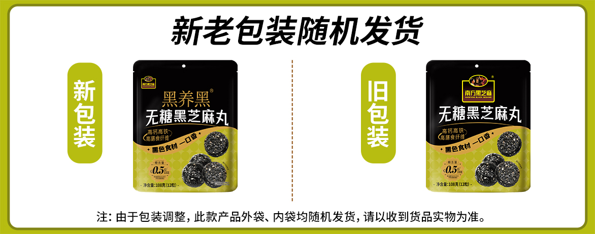【品牌直营】南方黑芝麻五黑芝麻丸无糖阿胶芝麻丸108g多口味可选办公室休闲零食