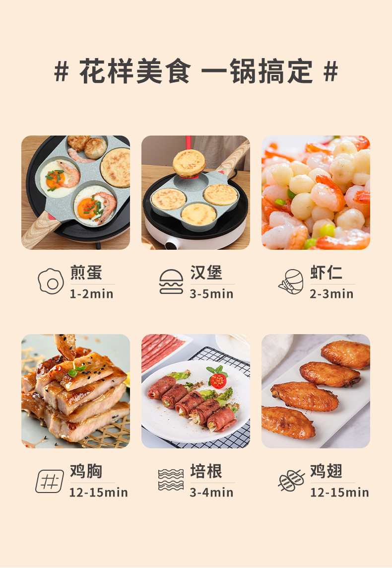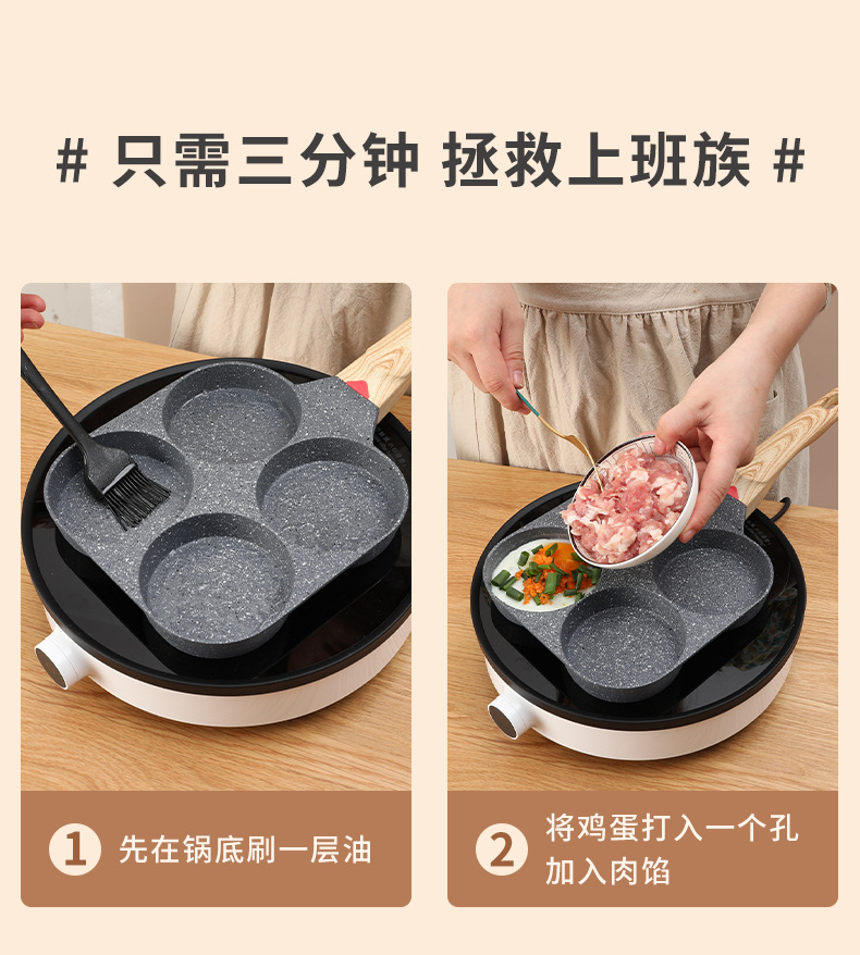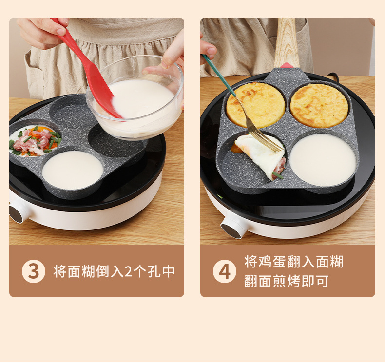 煎蛋锅麦饭石平底锅不粘锅家用四孔锅迷你早餐锅煎蛋神器小煎饼锅