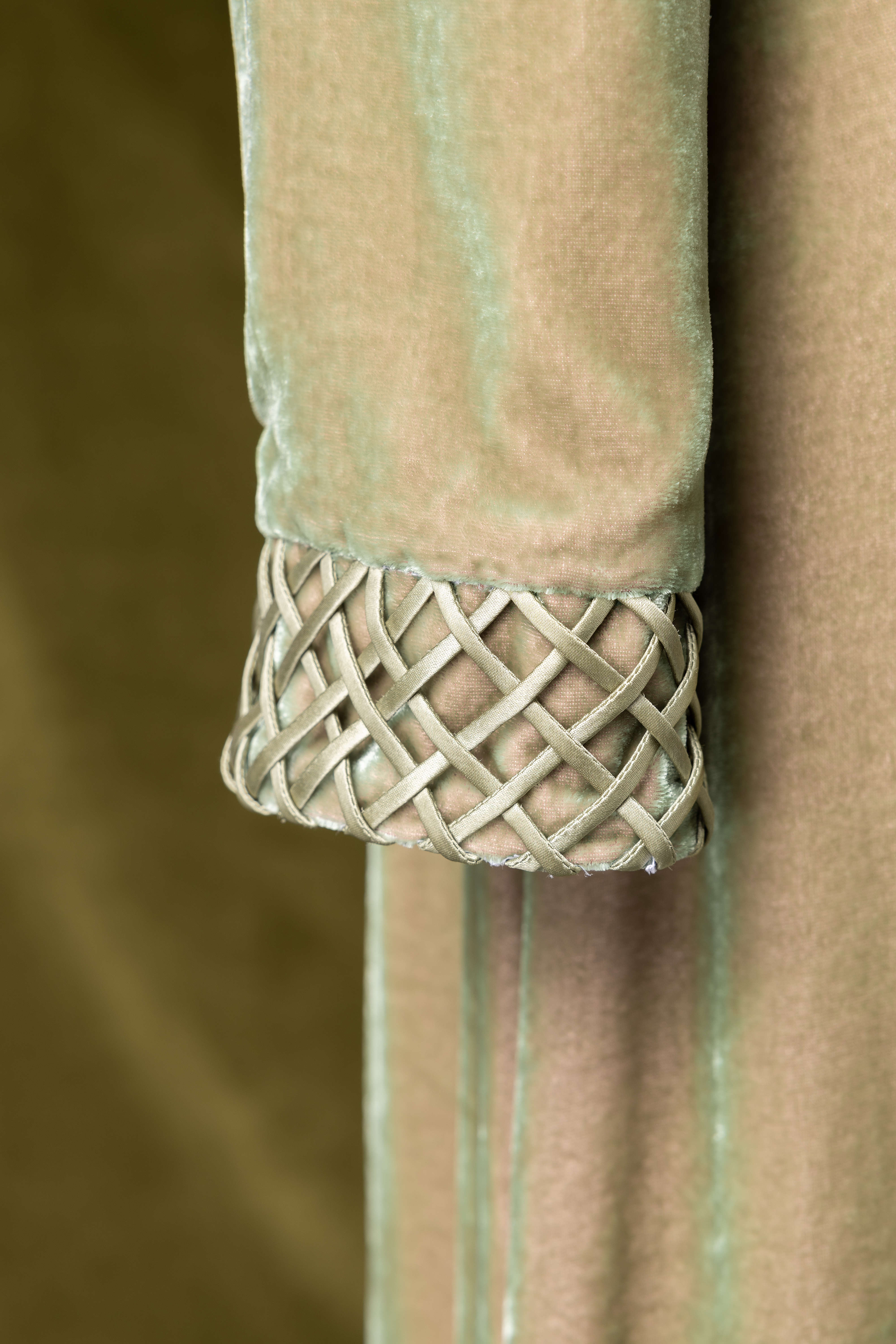 荷言HEYEN绿烟清辉 绿色编织真丝丝绒改良旗袍裙手工高级定制时装周 商品图4