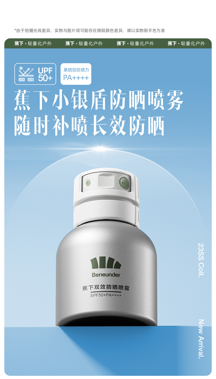 蕉下(beneunder)防晒喷雾双效全身防晒户外男女清爽保湿防水抗光老小银盾100ML