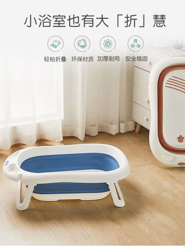 新款曼龙婴儿折叠浴盆儿童洗澡盆可坐躺宝宝家用新生儿大号沐浴桶