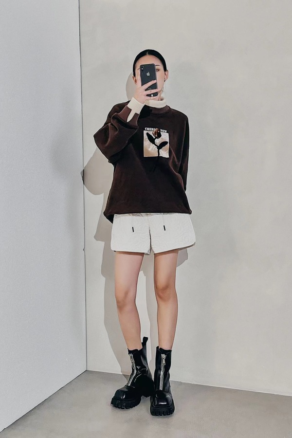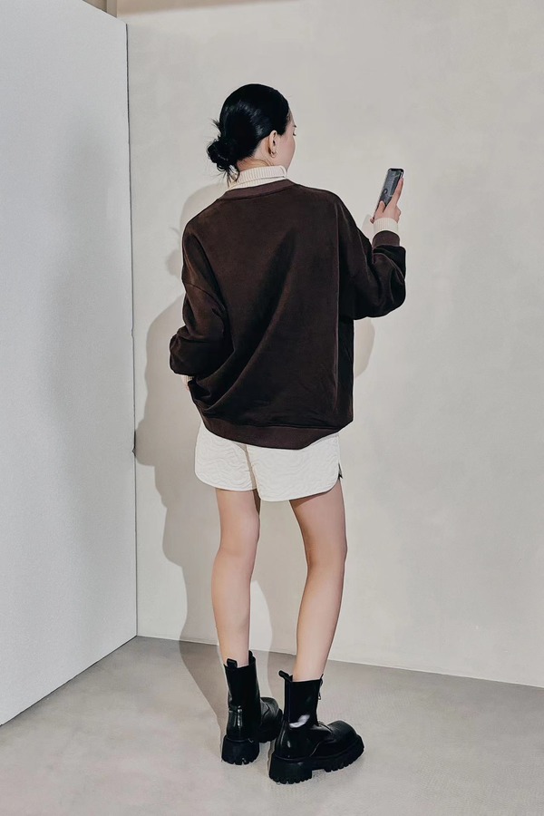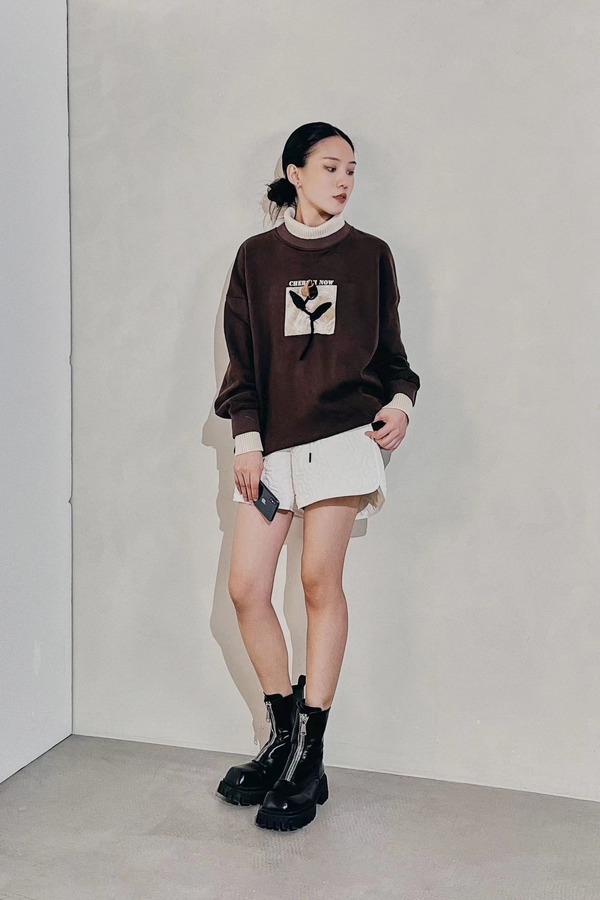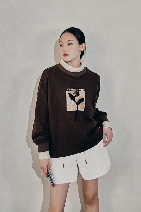 WHO KNOWS 假两件立体花朵装饰加绒卫衣 19553