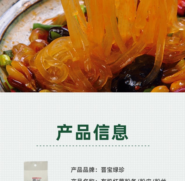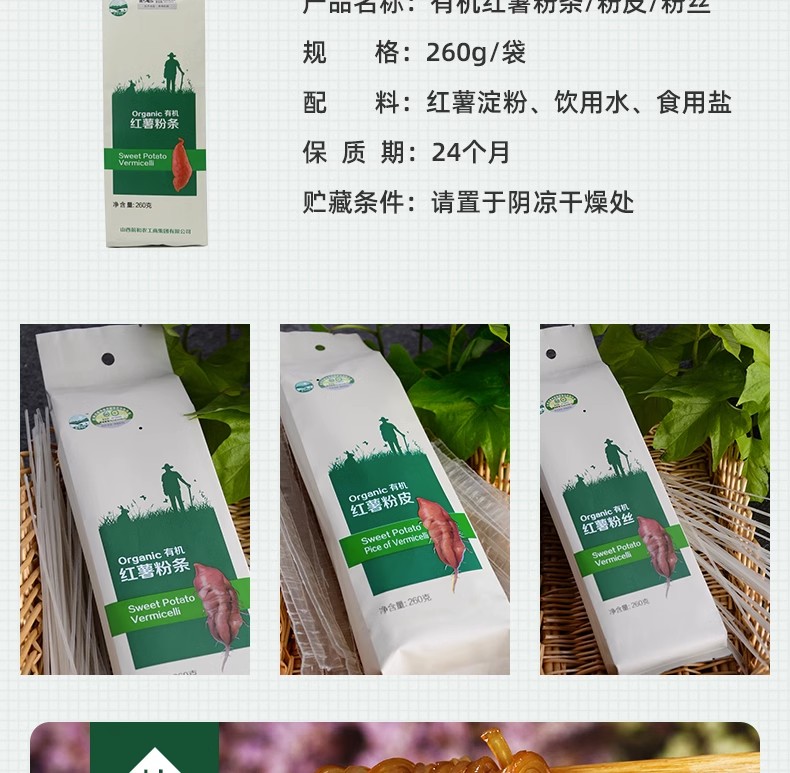 有机红薯粉条粉皮粉丝粉条袋装 无胶无矾 260g 【京东快递送货上门】