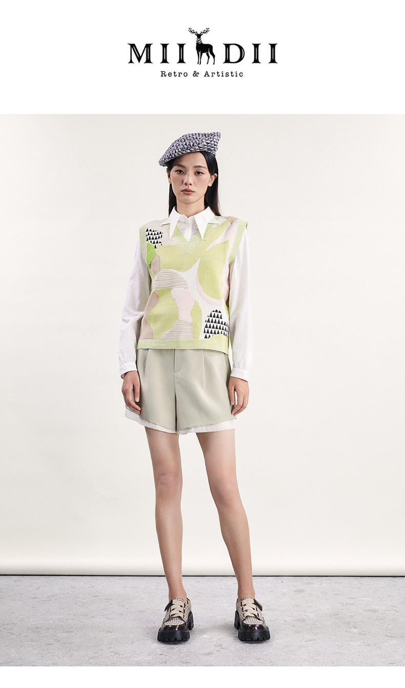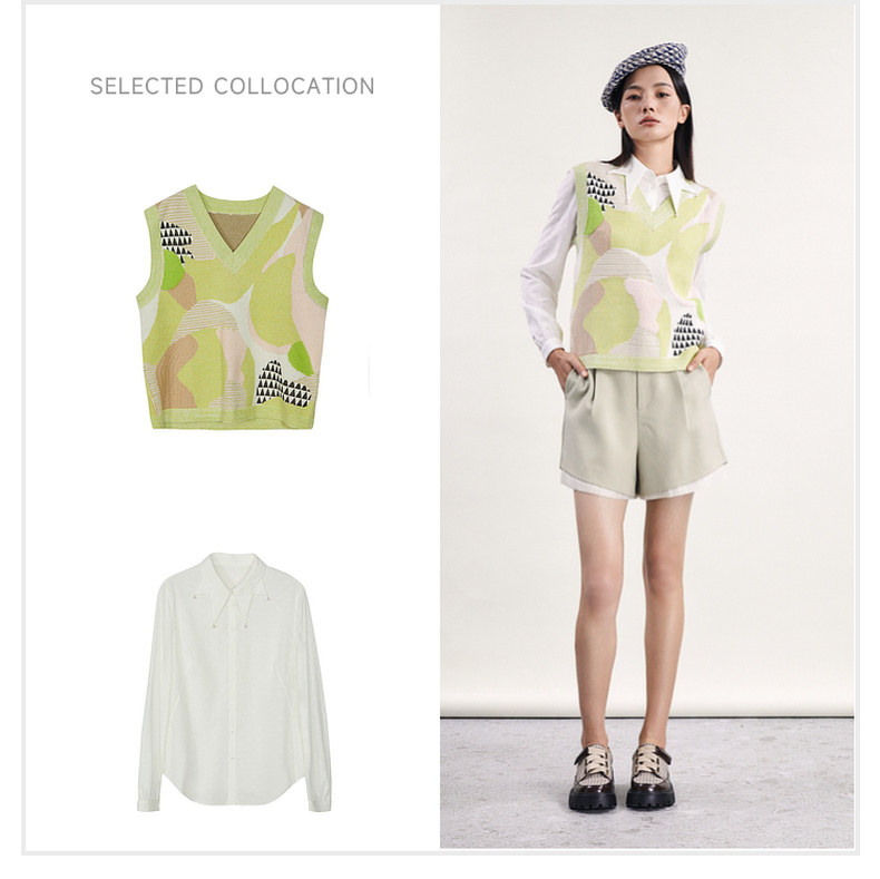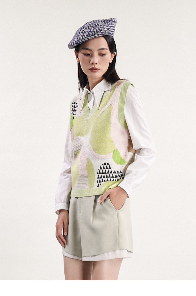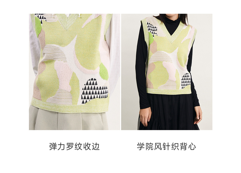谜底针织马夹女2024春新款学院风V领百搭套头针织衫背心241MZ0303