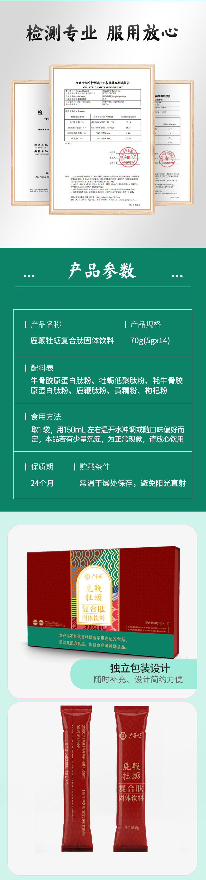 鹿鞭牡蛎复合肽固体饮料 鹿鞭 牡蛎 精华提取 小分子 易吸收 5克*14袋/盒