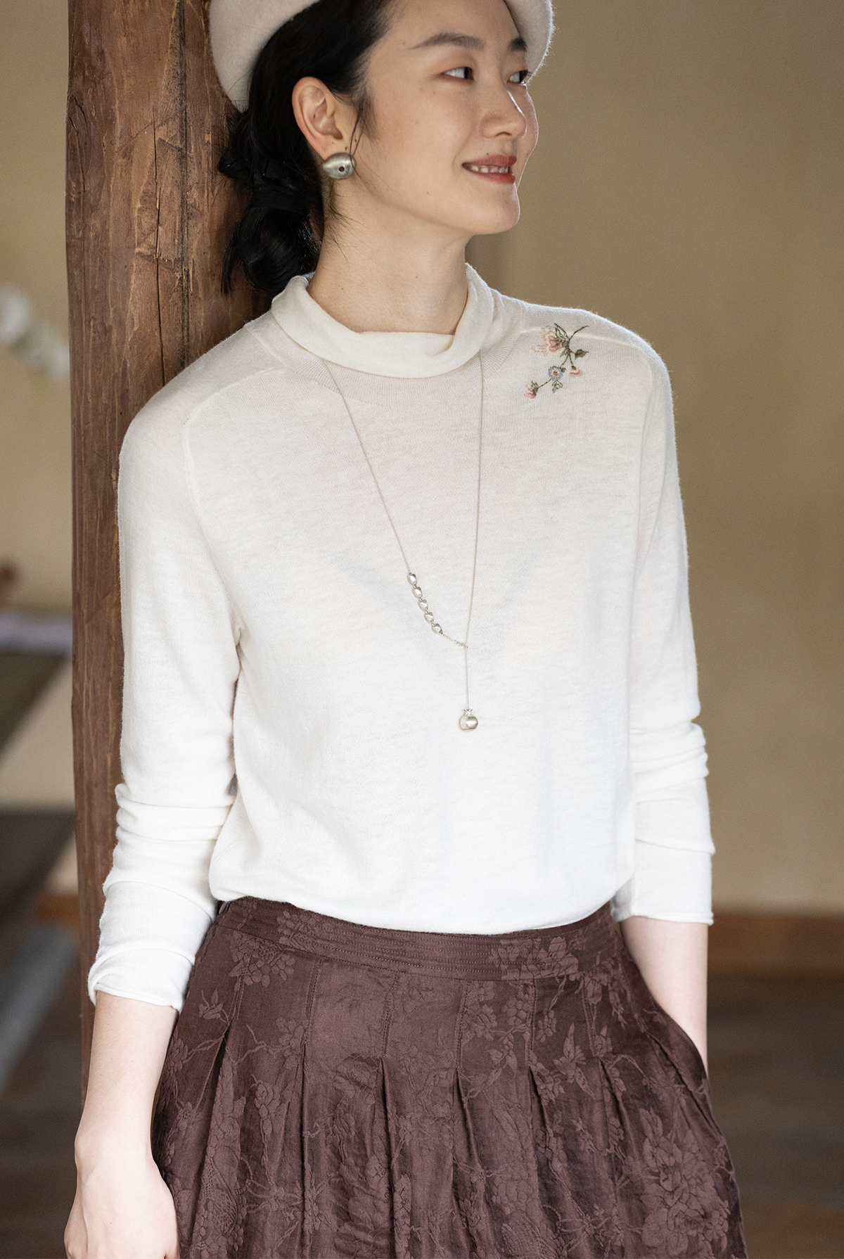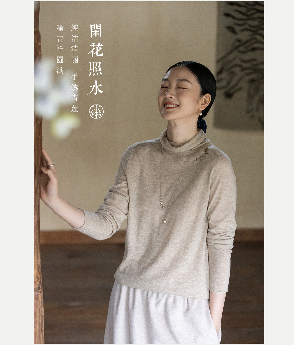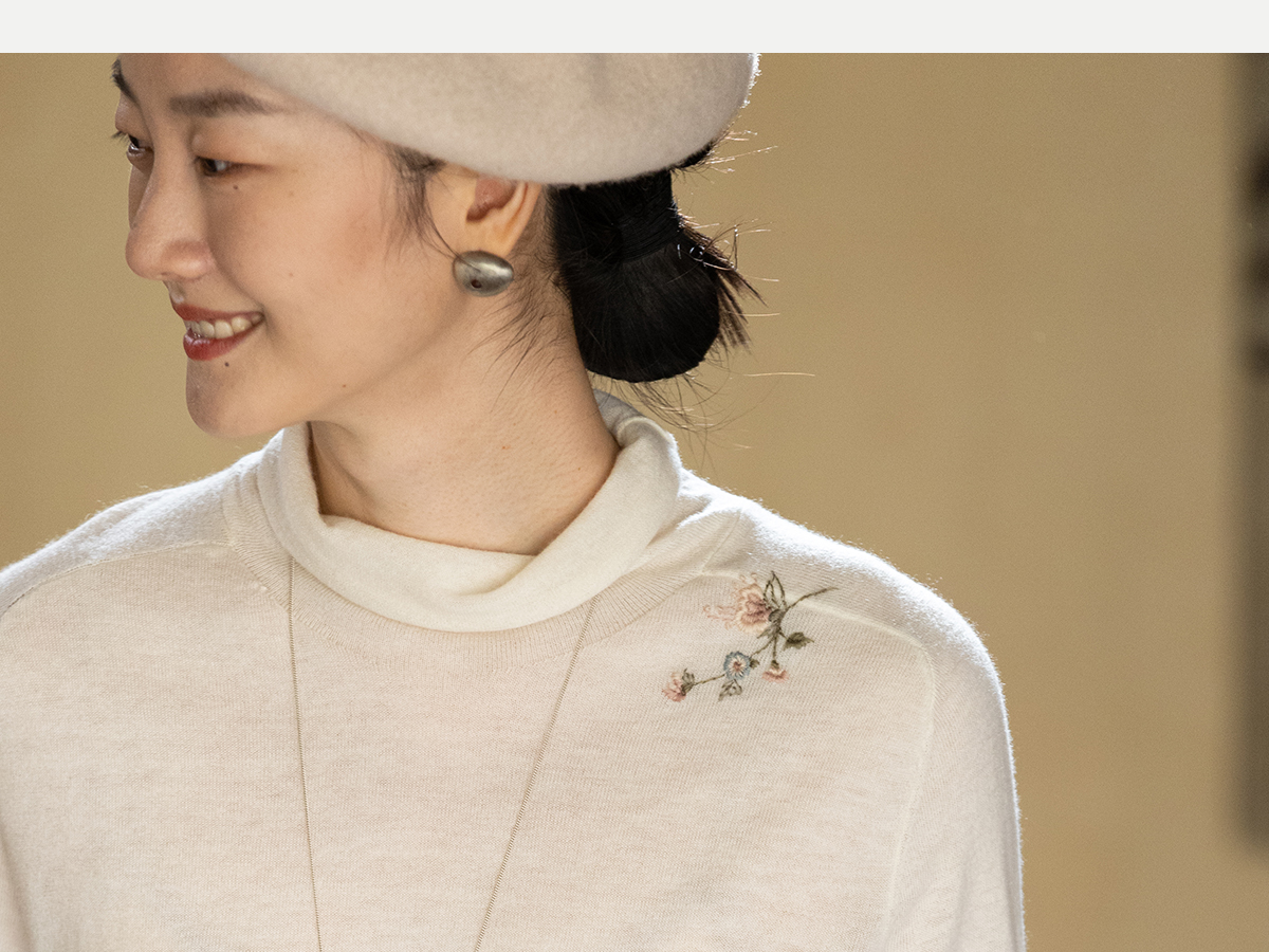 牧衣游原创 手工刺绣羊毛套头衫女冬新款细腻蓬松保暖毛衣 东云