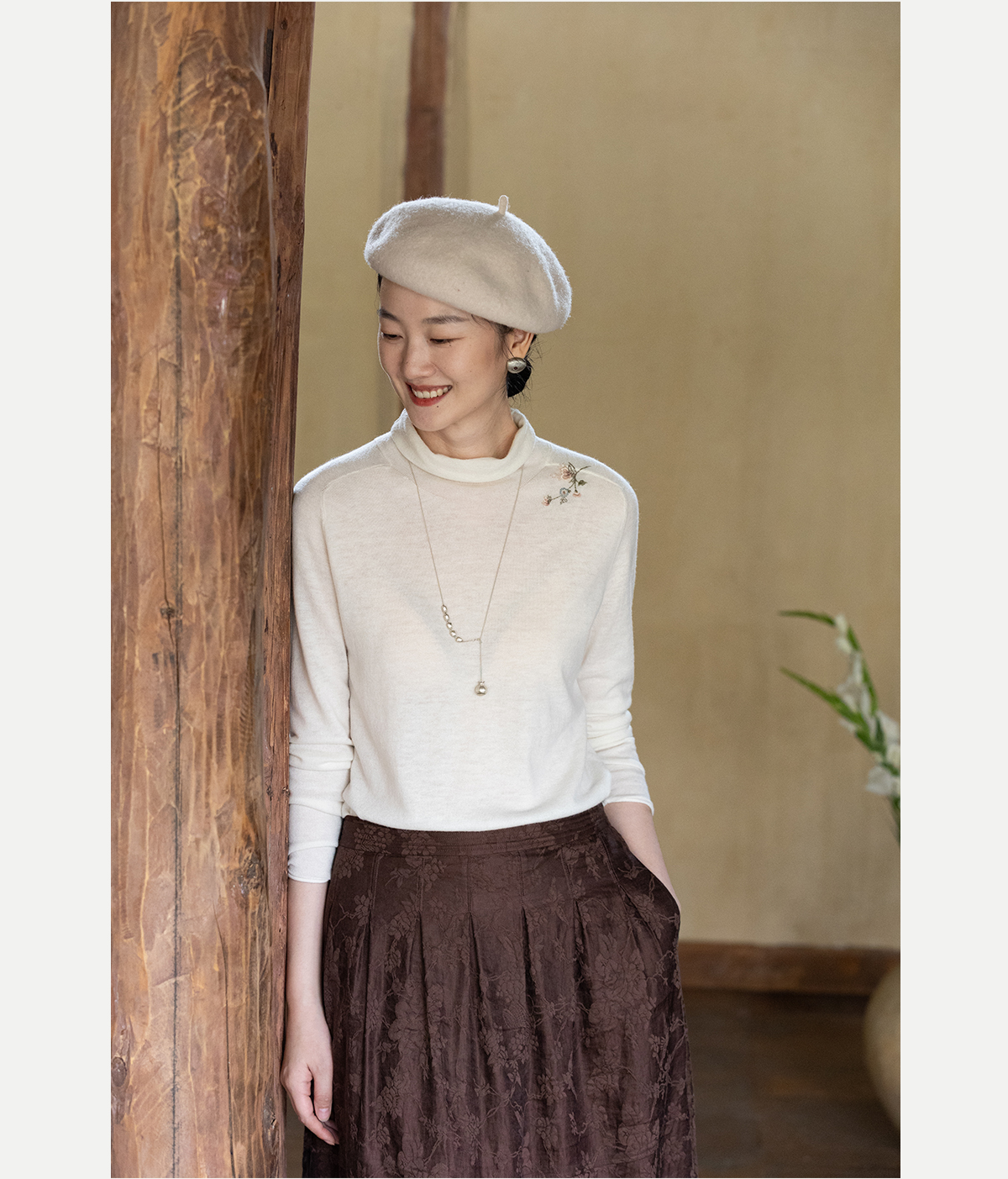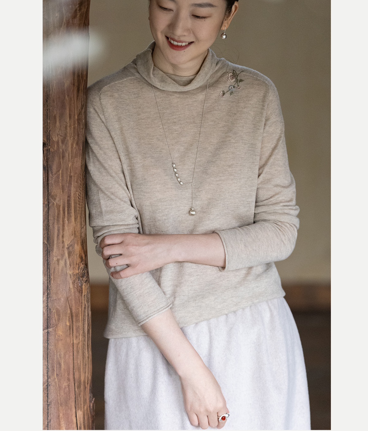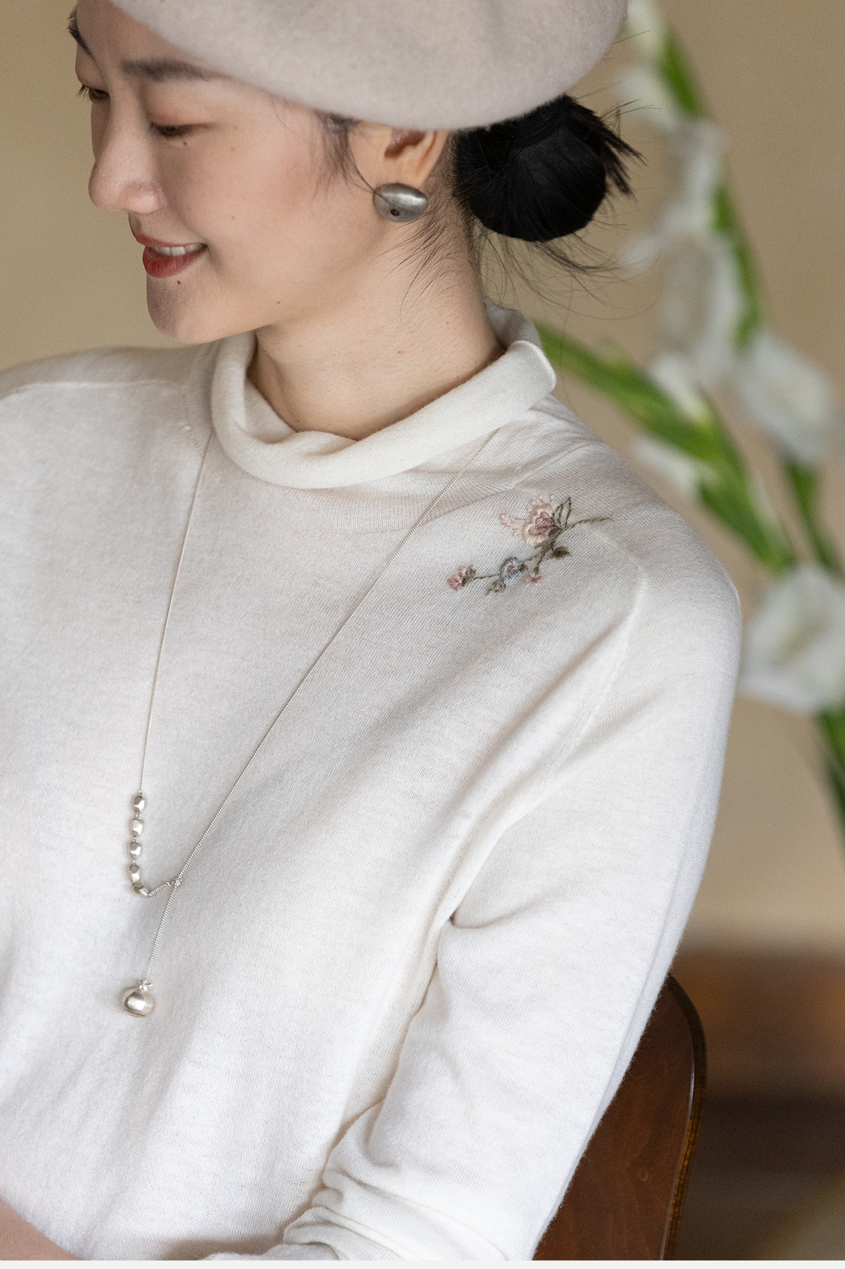 牧衣游原创 手工刺绣羊毛套头衫女冬新款细腻蓬松保暖毛衣 东云