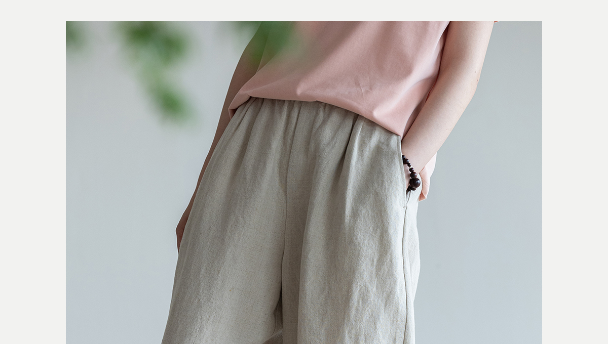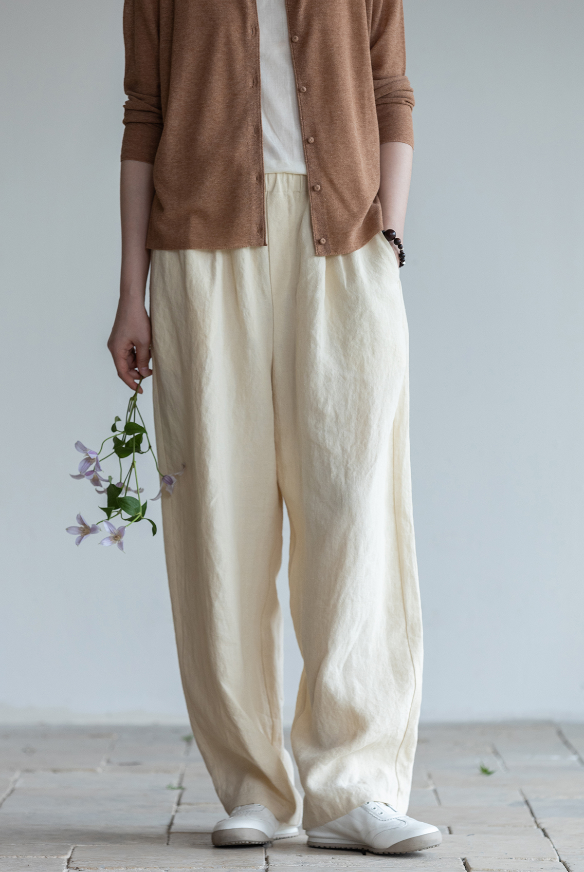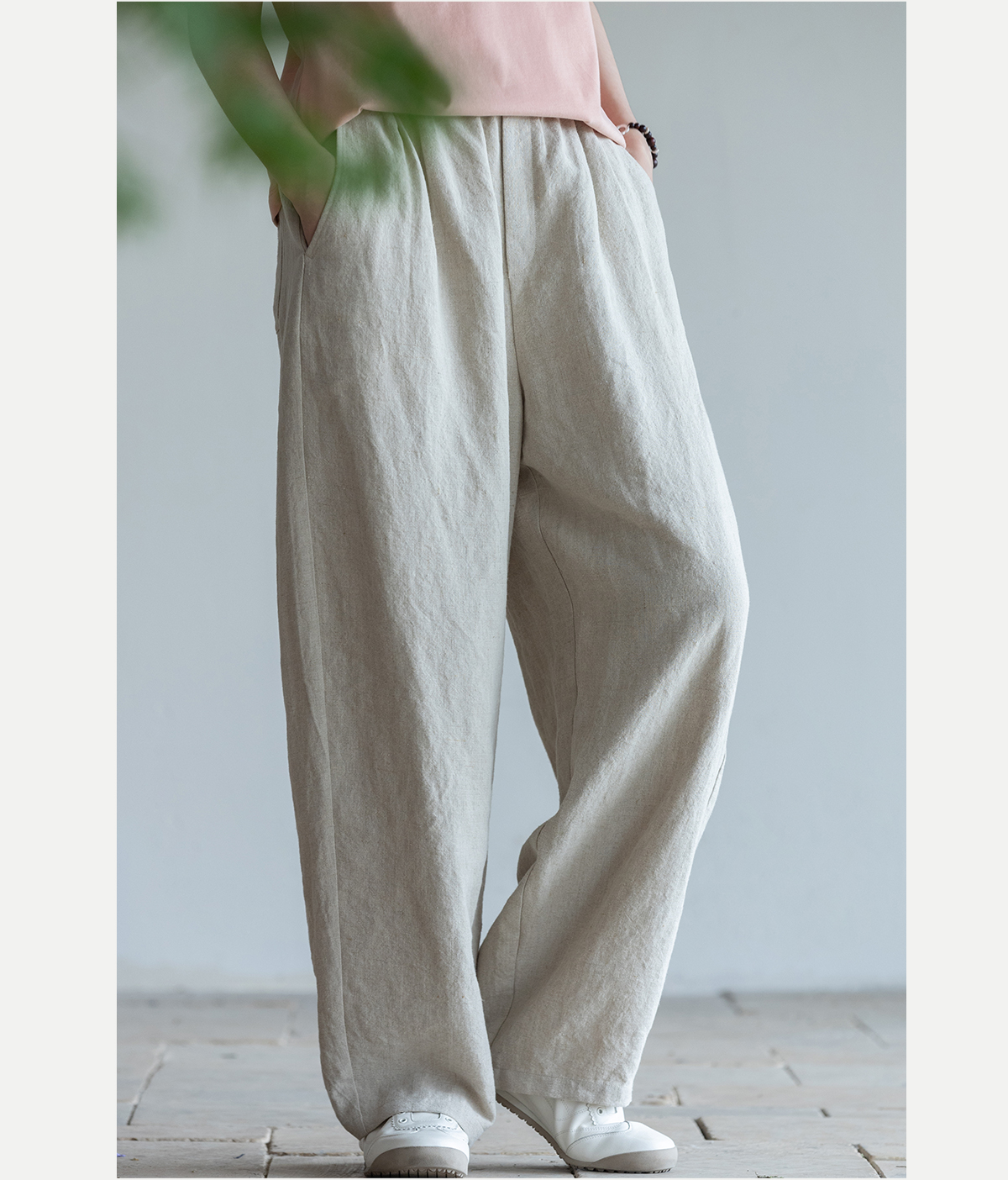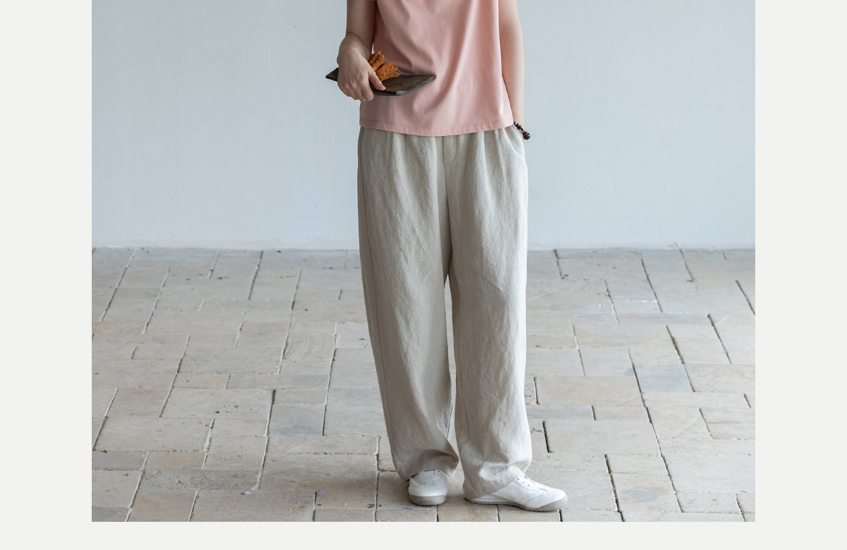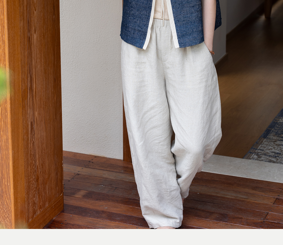 牧衣游原创 亚麻净色长裤新款透气清凉随性宽松百搭休闲裤 归屿