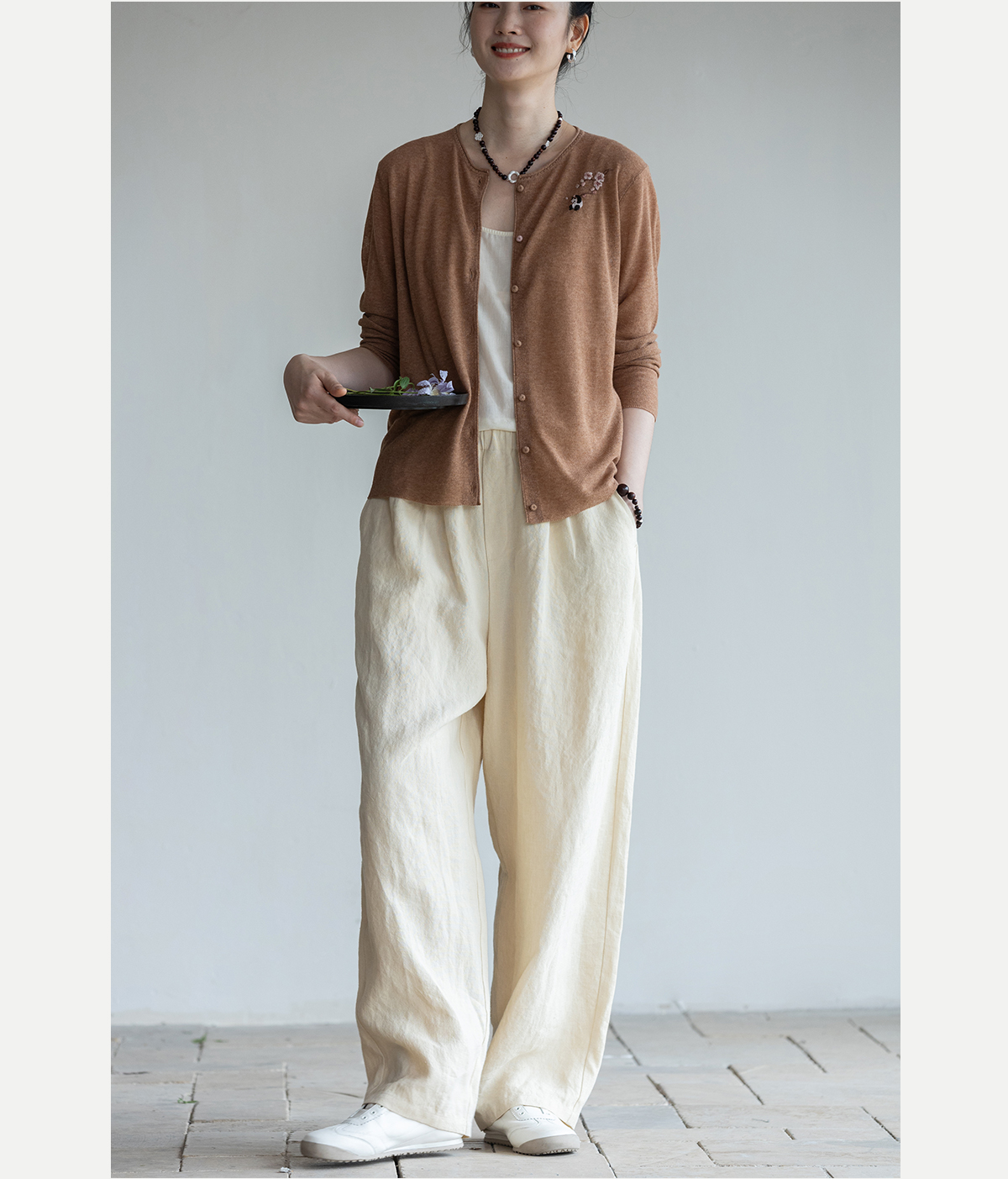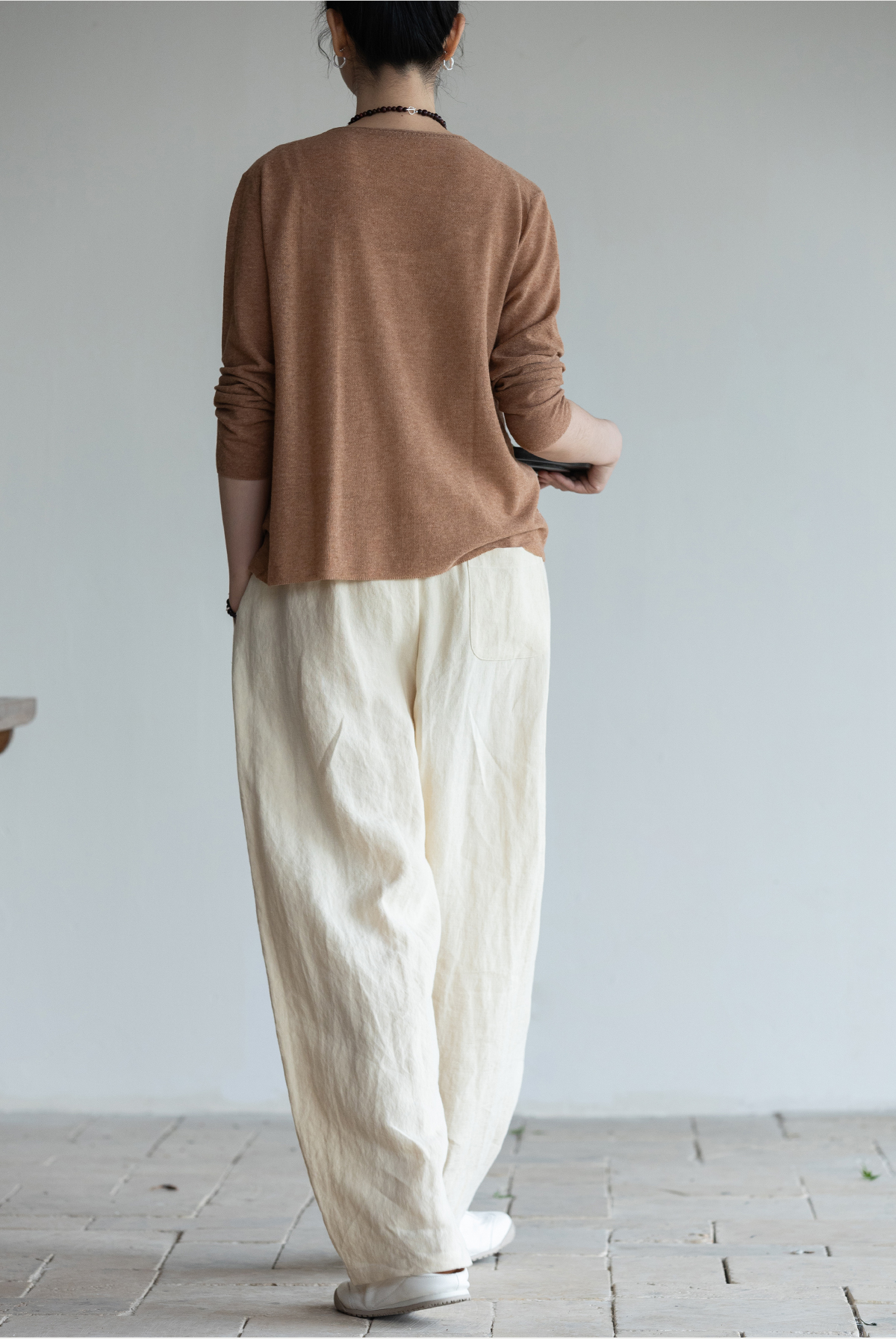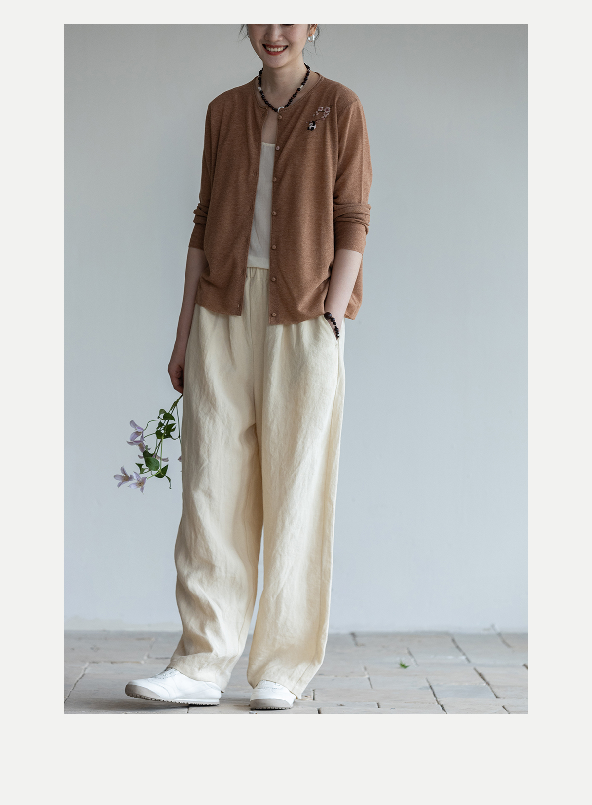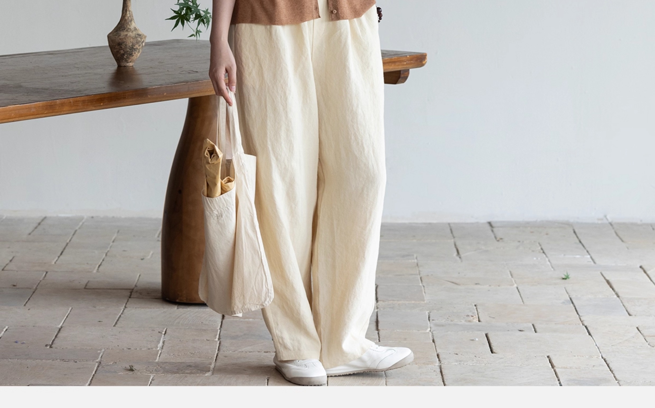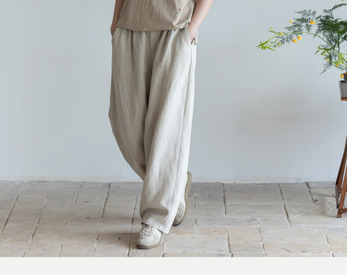 牧衣游原创 亚麻净色长裤新款透气清凉随性宽松百搭休闲裤 归屿