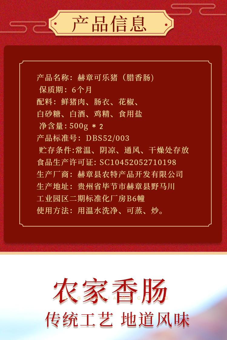 【贵州赫章帮扶】赫章可乐猪腊香肠 多规格可选