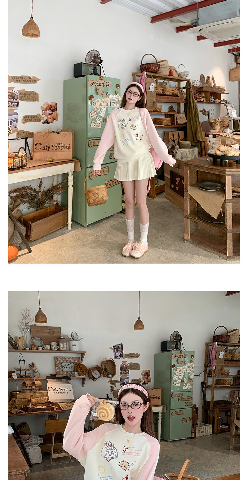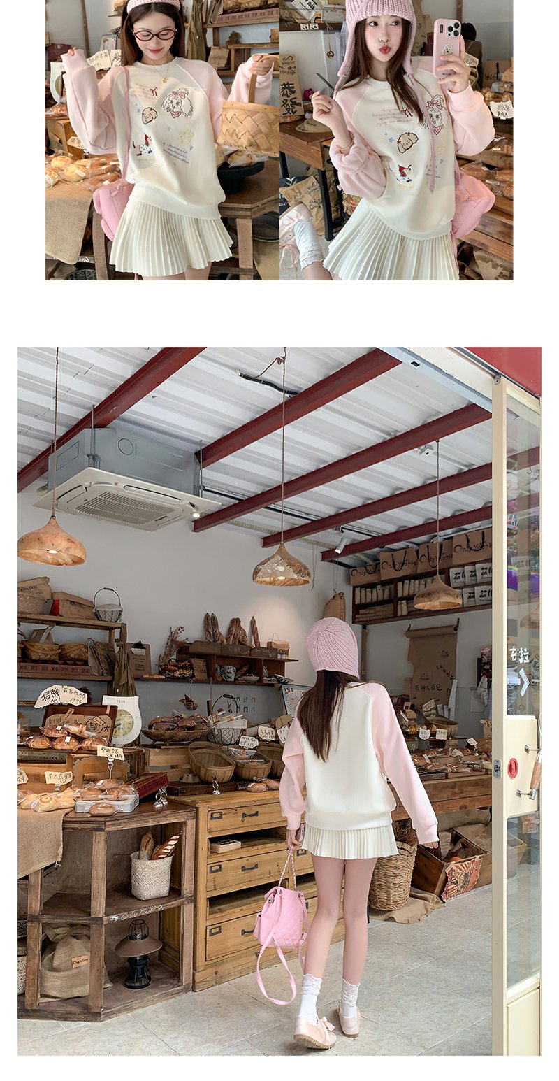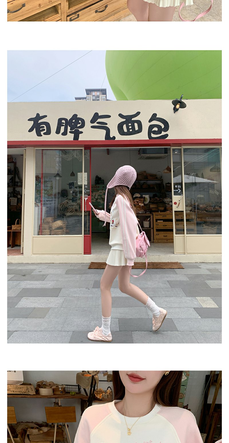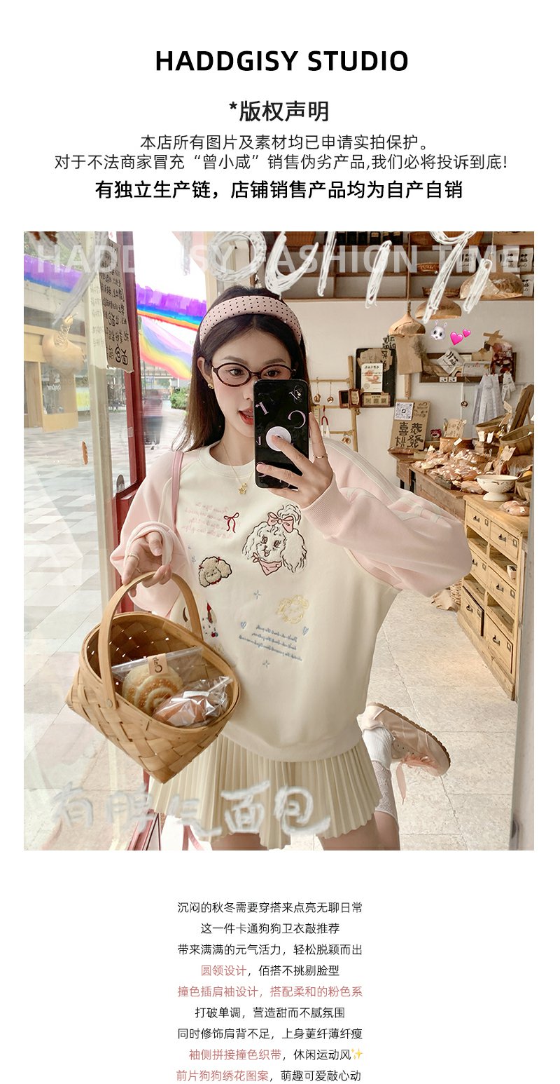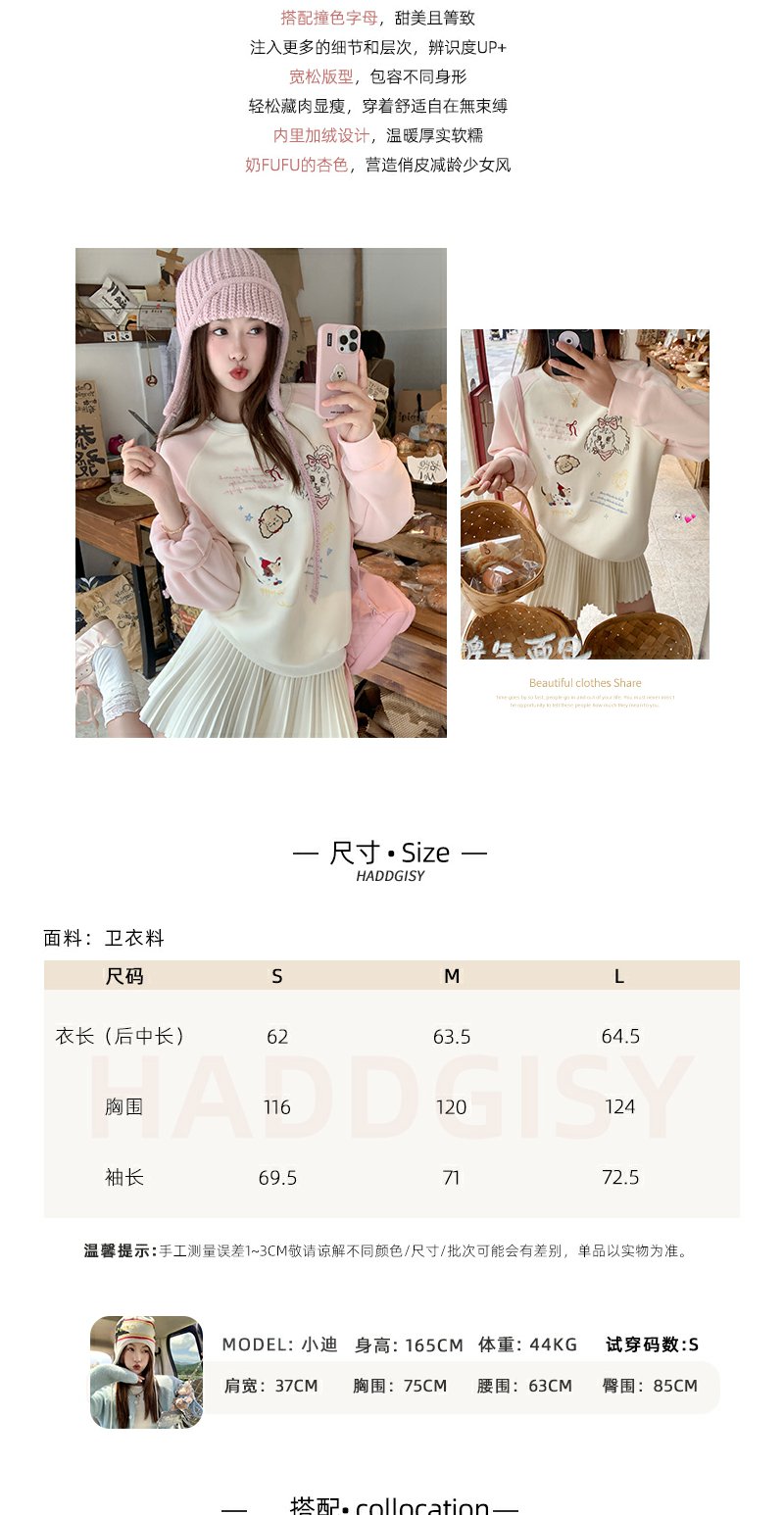 <曾小咸推荐>杏色圆领粉色插肩袖加绒卫衣
