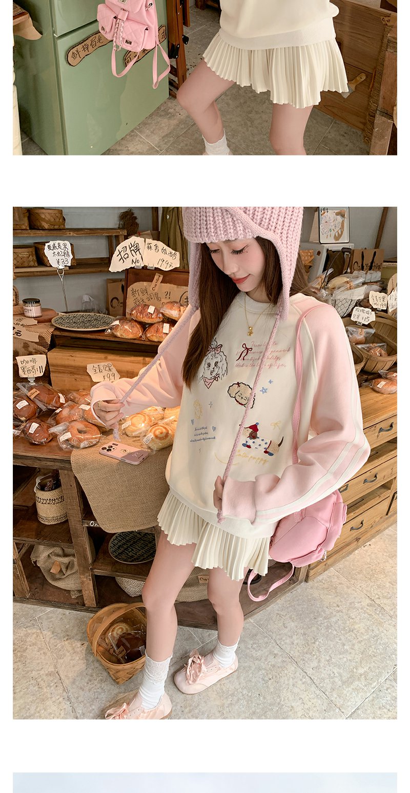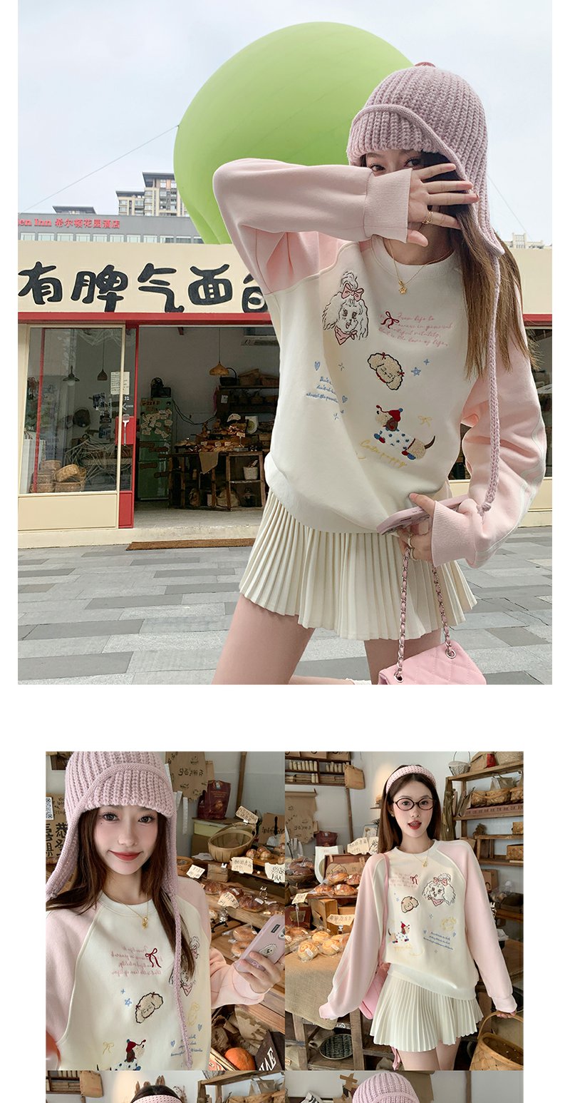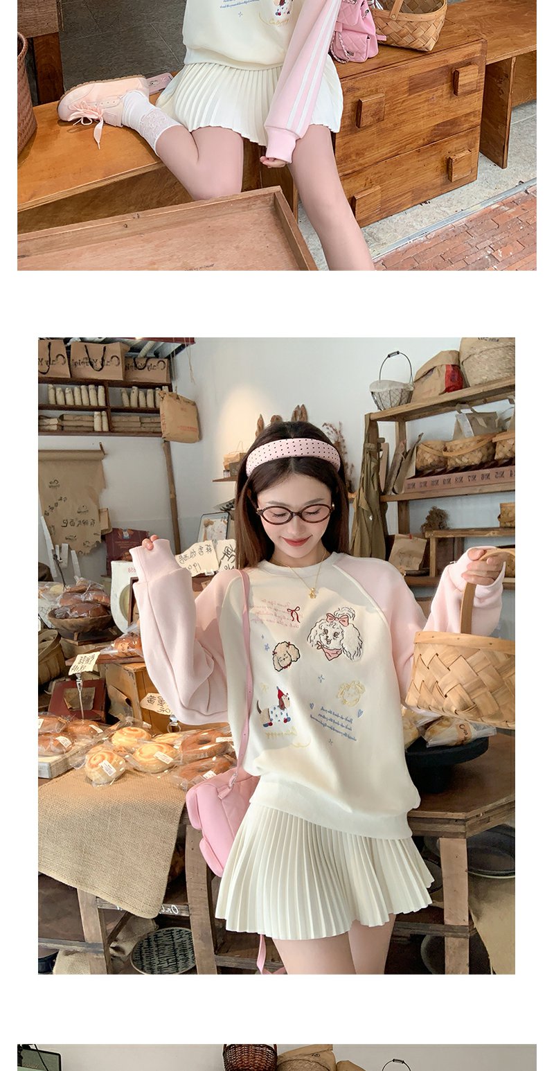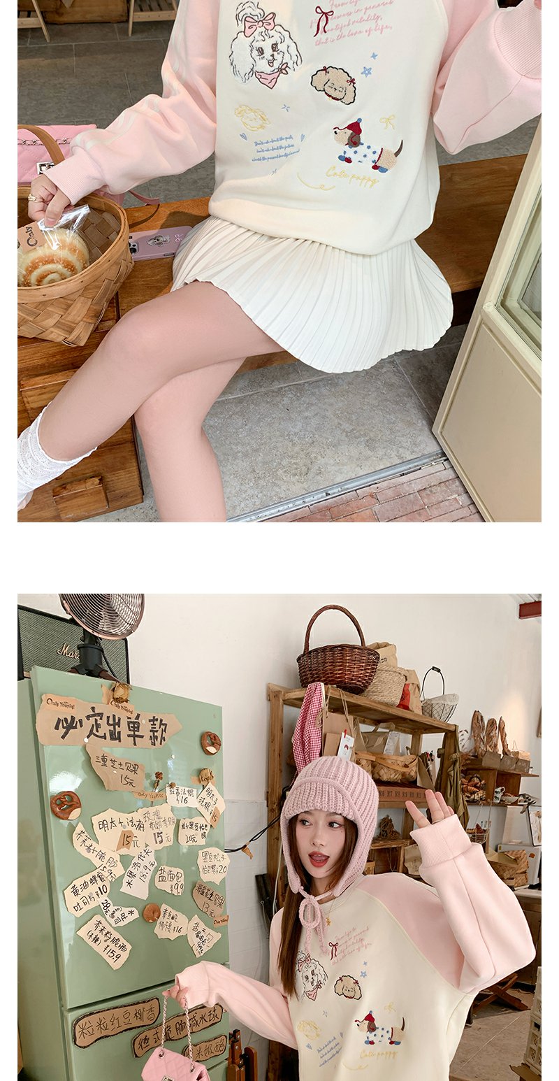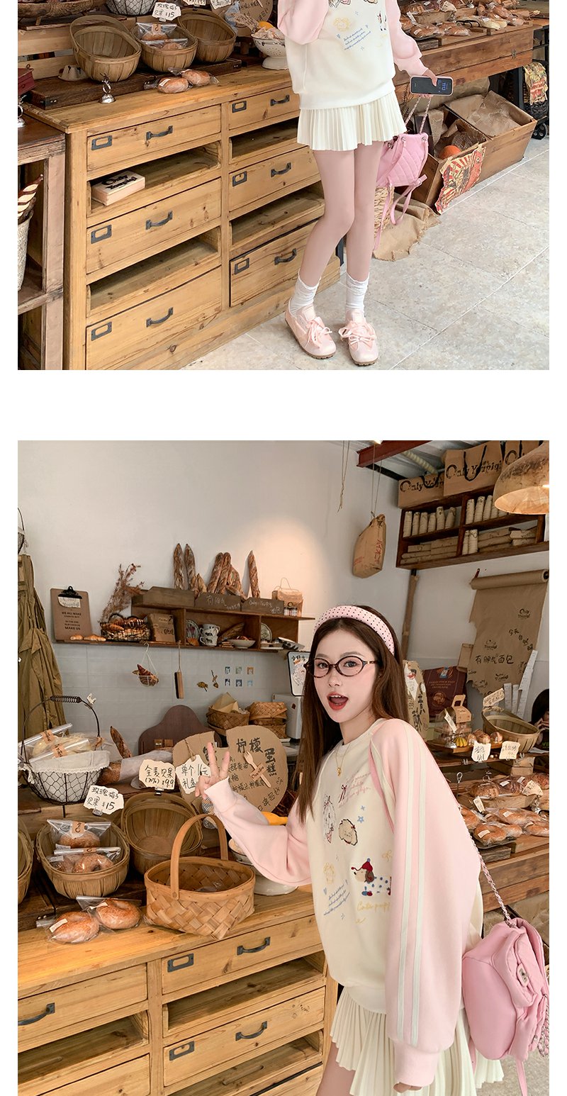 <曾小咸推荐>杏色圆领粉色插肩袖加绒卫衣