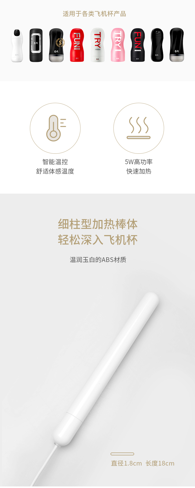 【加热棒】网易春风TRYFUN飞机杯智能温控加热棒白色