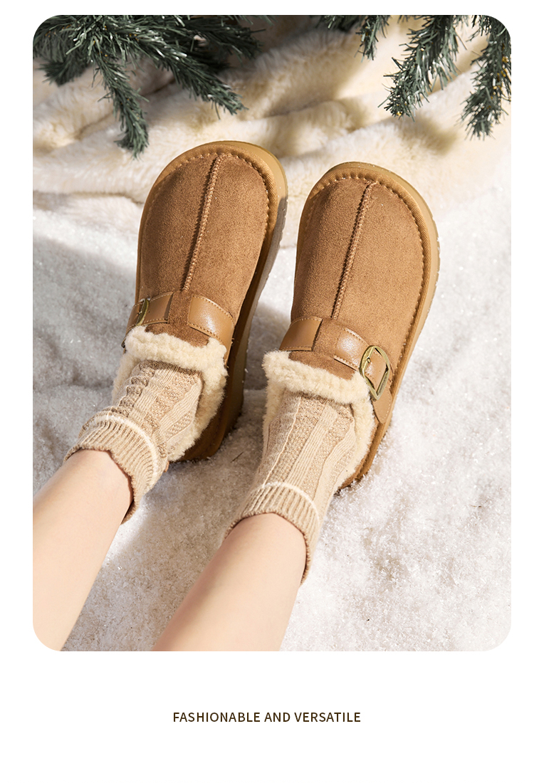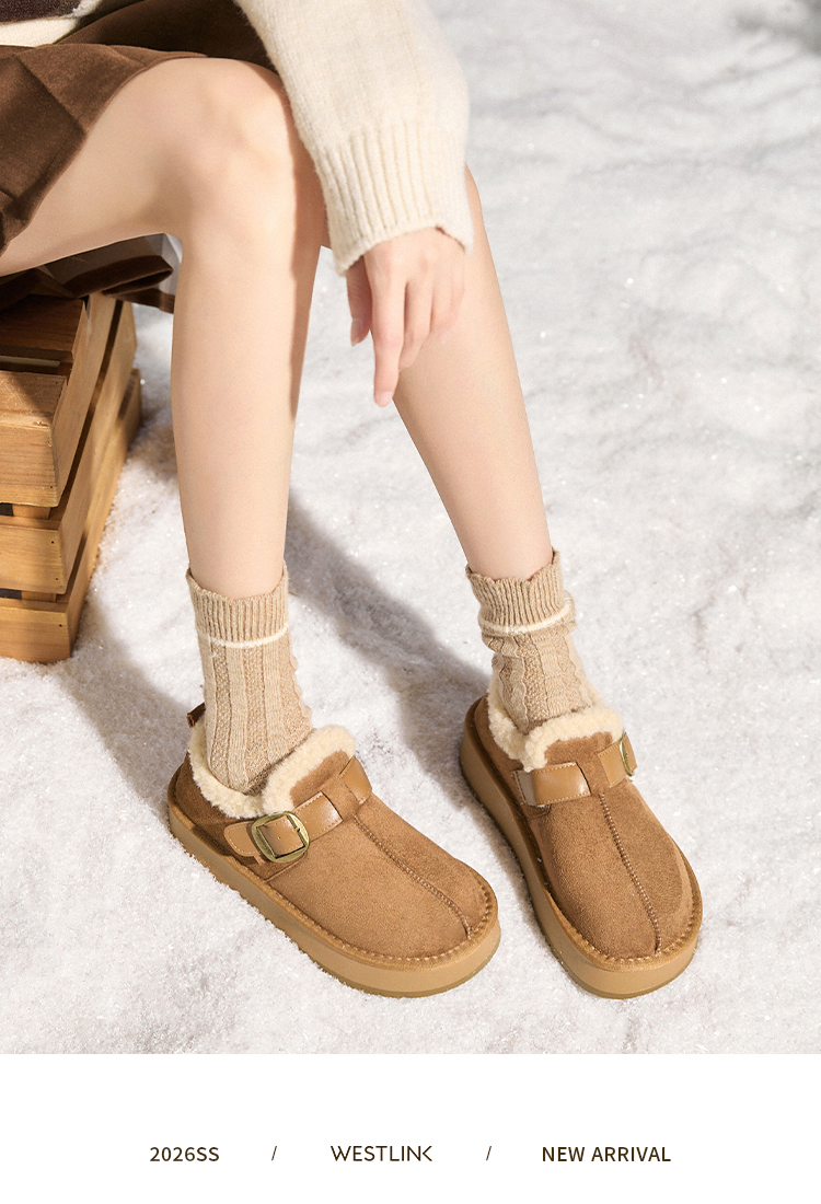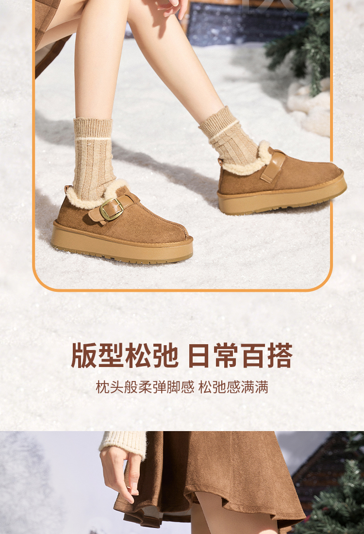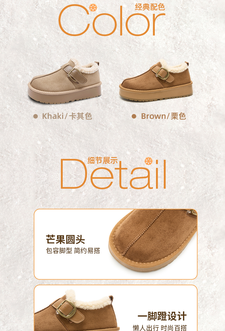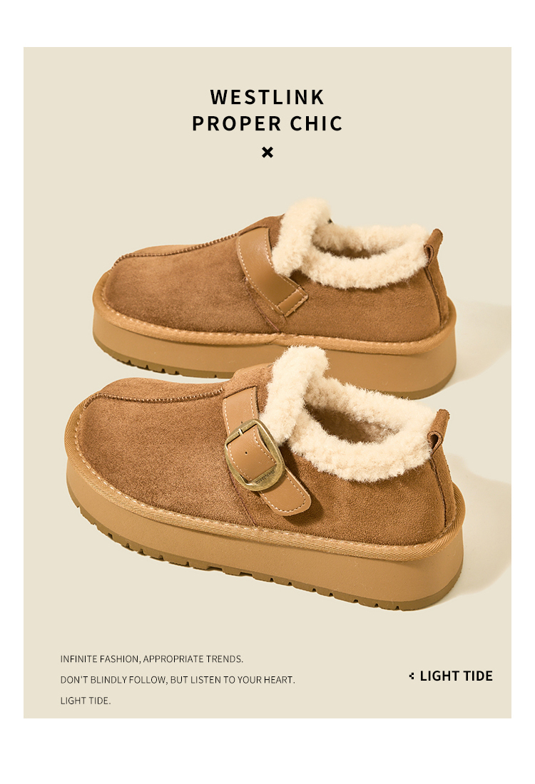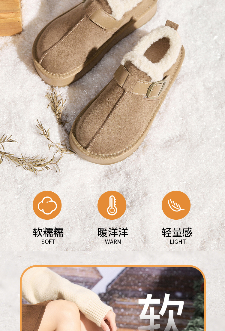 西遇厚底增高加绒勃肯鞋女冬季一脚蹬全包毛毛棉鞋加厚雪地靴K0057373