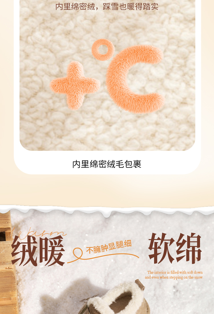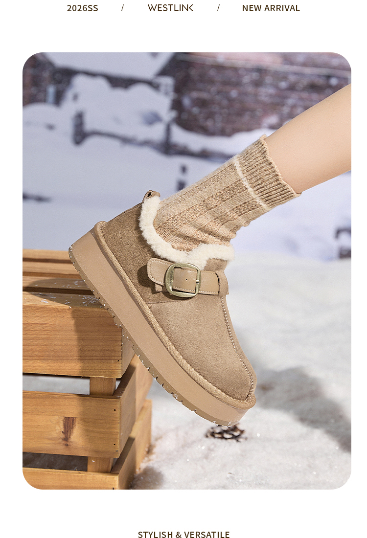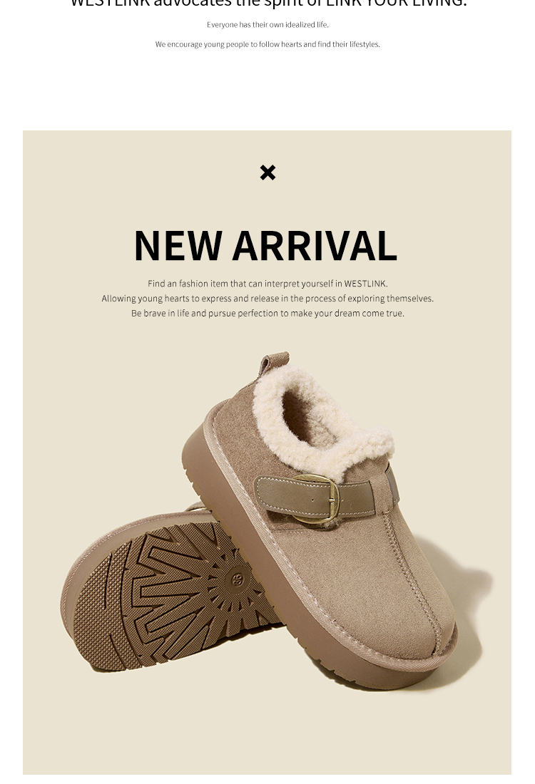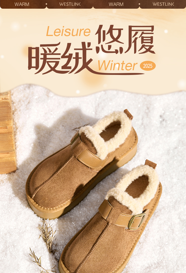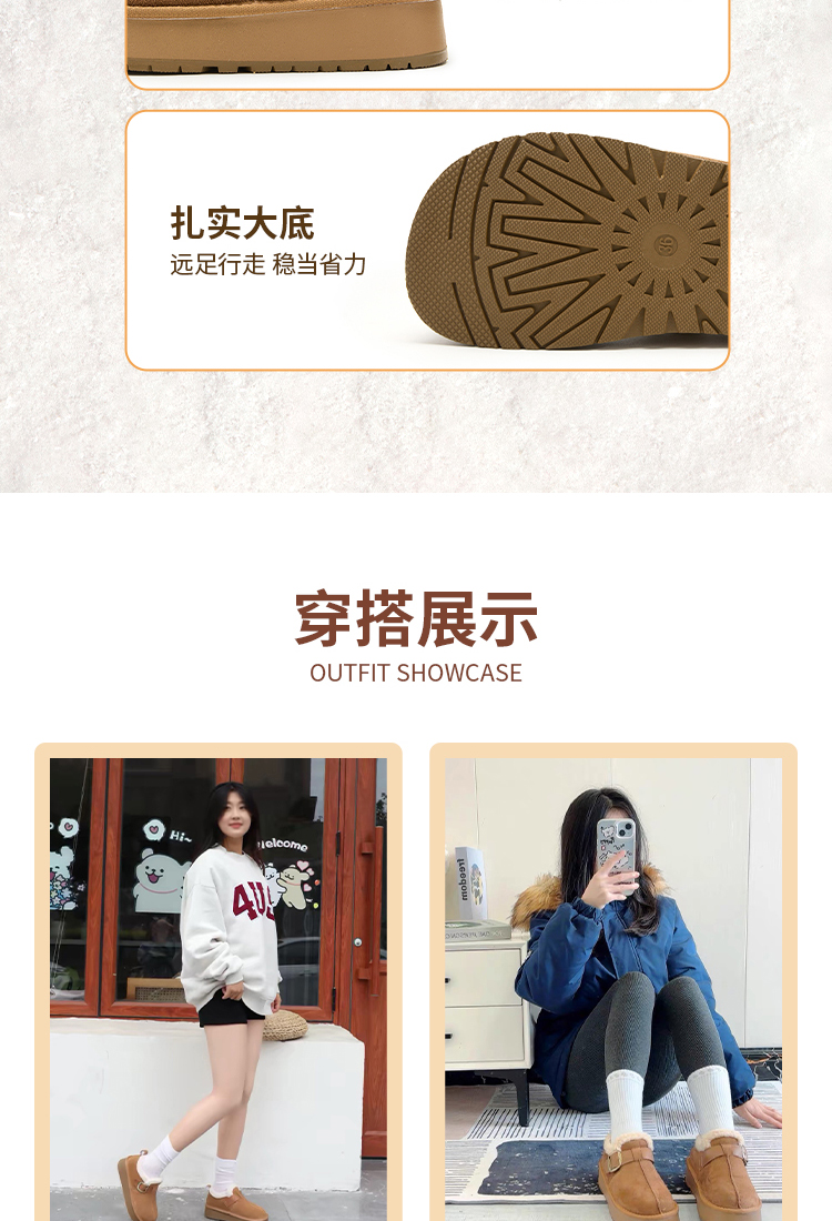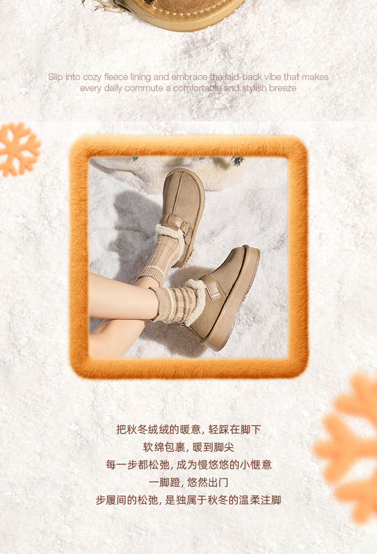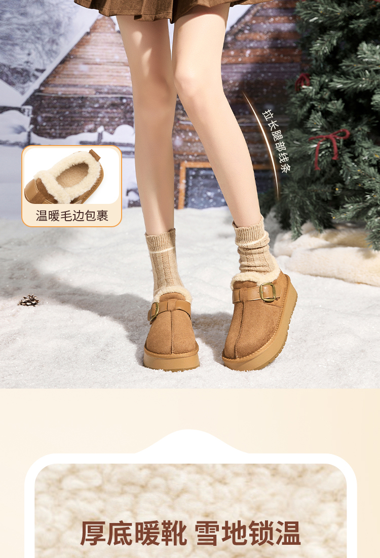 西遇厚底增高加绒勃肯鞋女冬季一脚蹬全包毛毛棉鞋加厚雪地靴K0057373