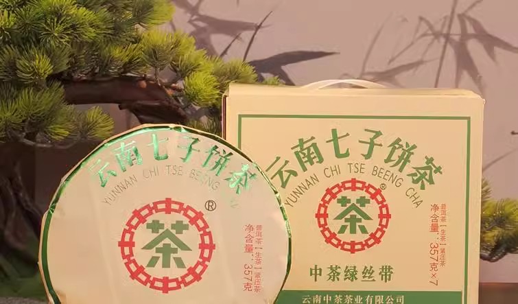 中粮-中茶绿丝带生普云南七子饼茶叶优质紧压茶357g /云南干仓直发