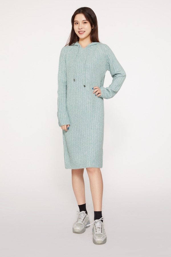 HAYES 薄荷绿针织连帽卫衣连衣裙 10282