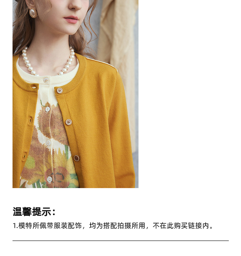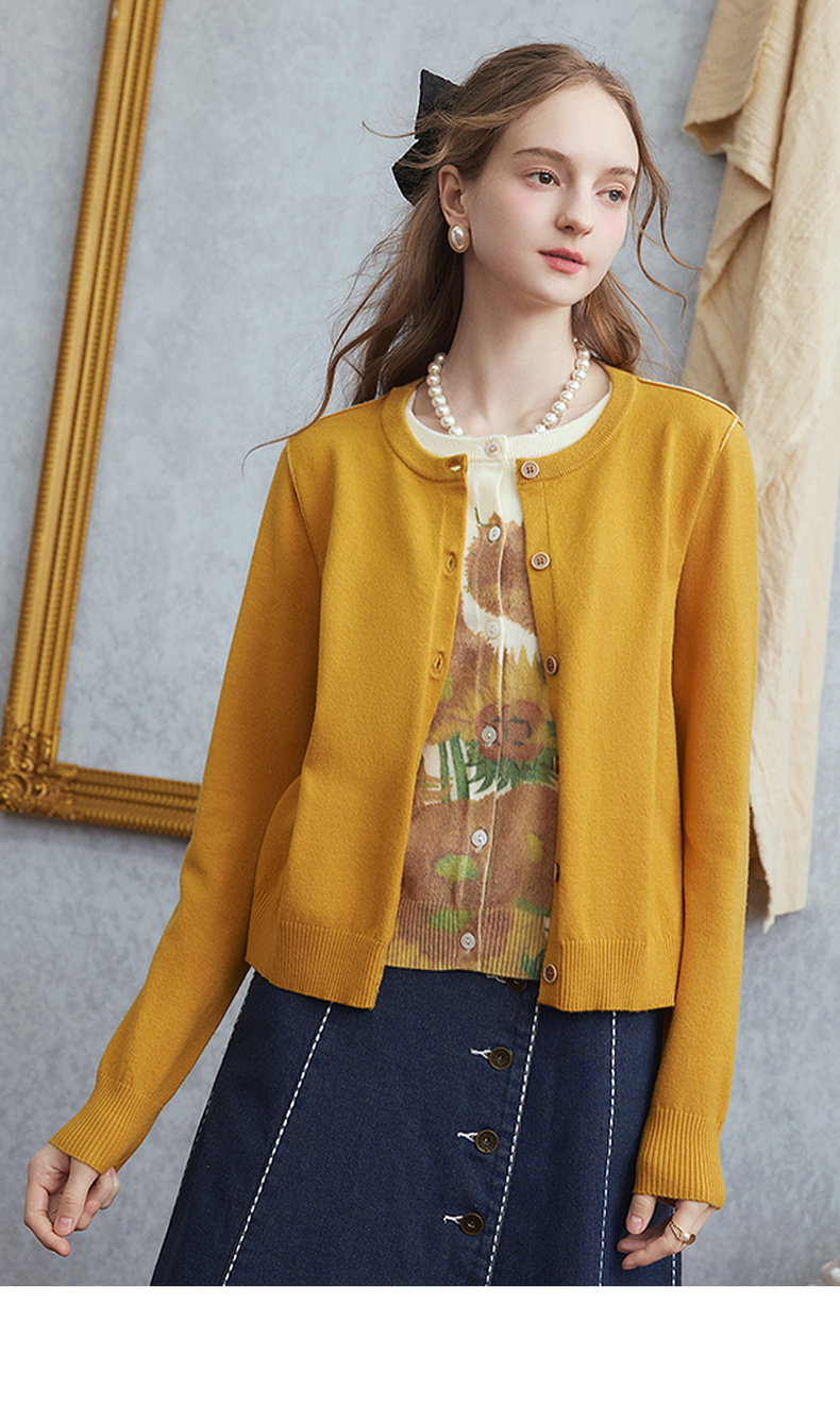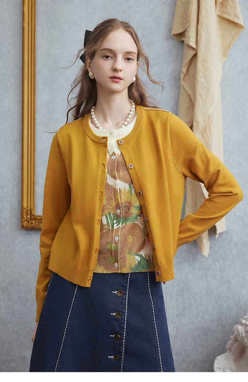 两三事梵高文艺几度夕阳2025秋季新款向日葵印花假两件针织开衫女
