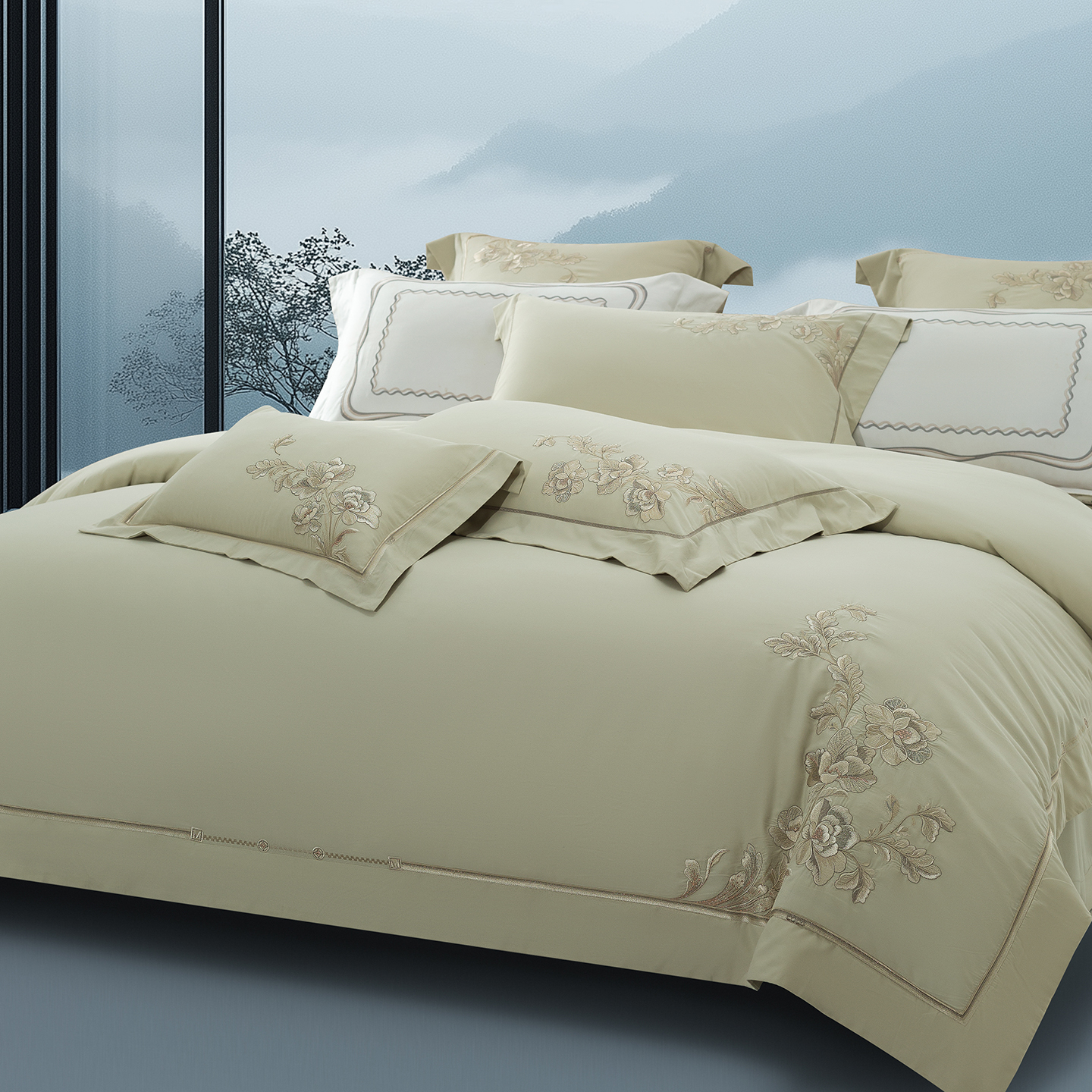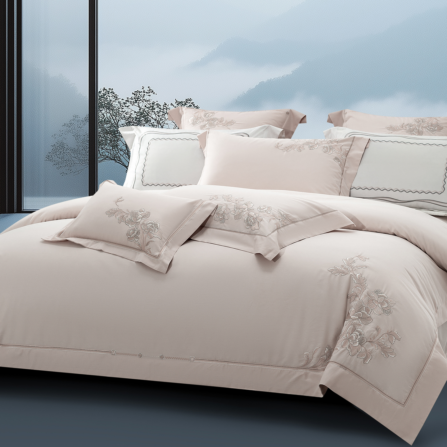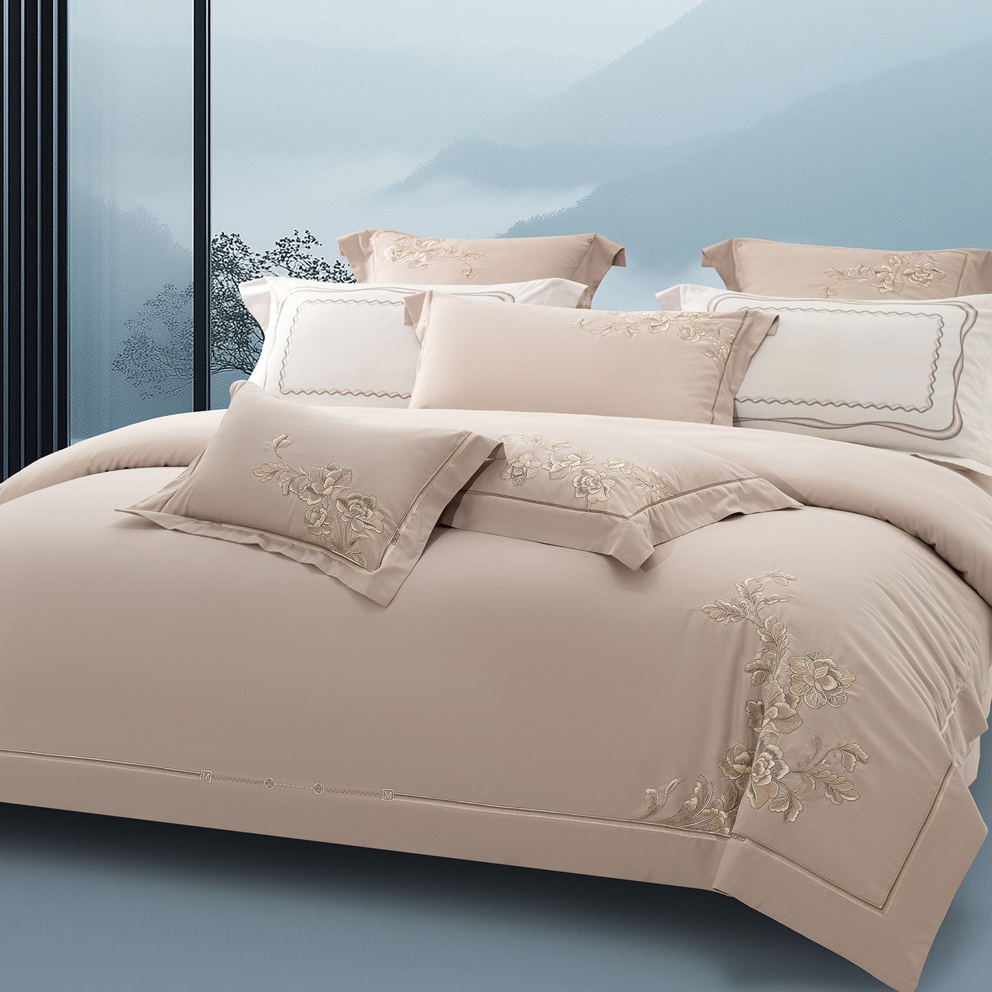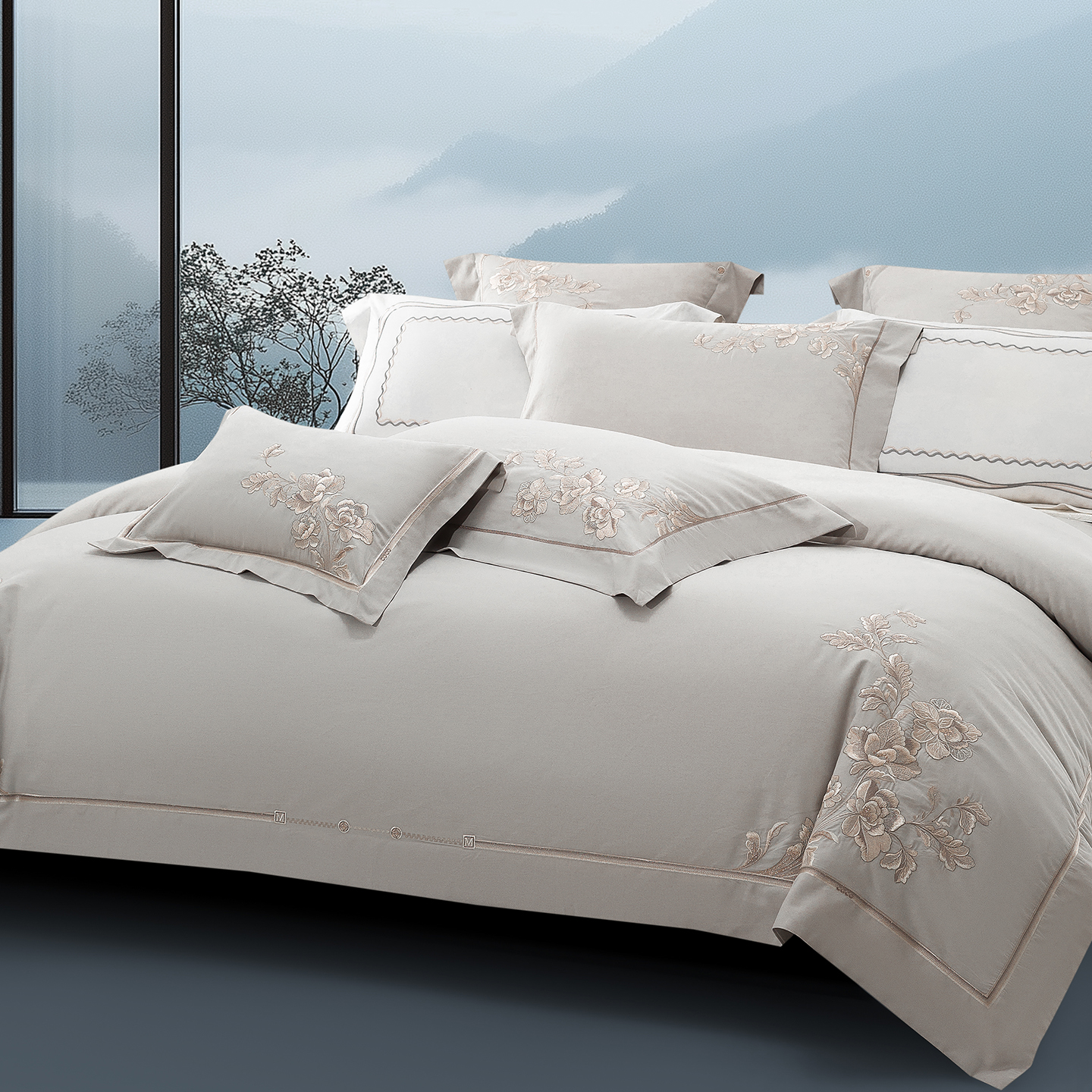 自然醒140支长绒棉磨毛高端绣花四件套100%全棉刺绣被套罩纯棉床单轻奢床上用品4四季GDS