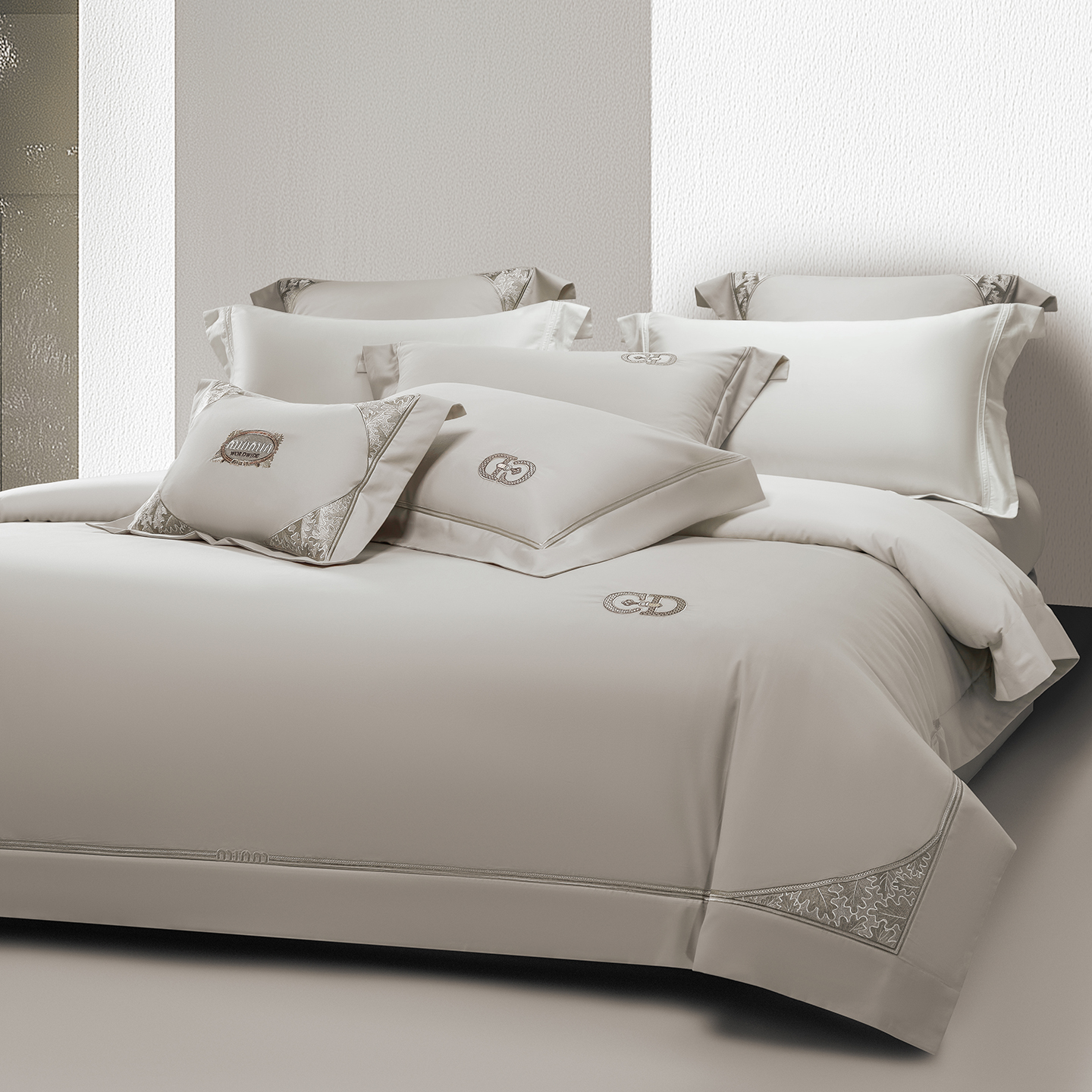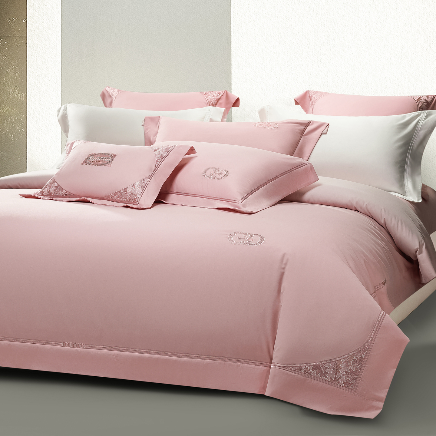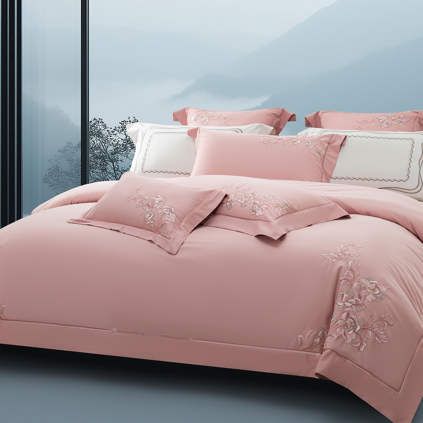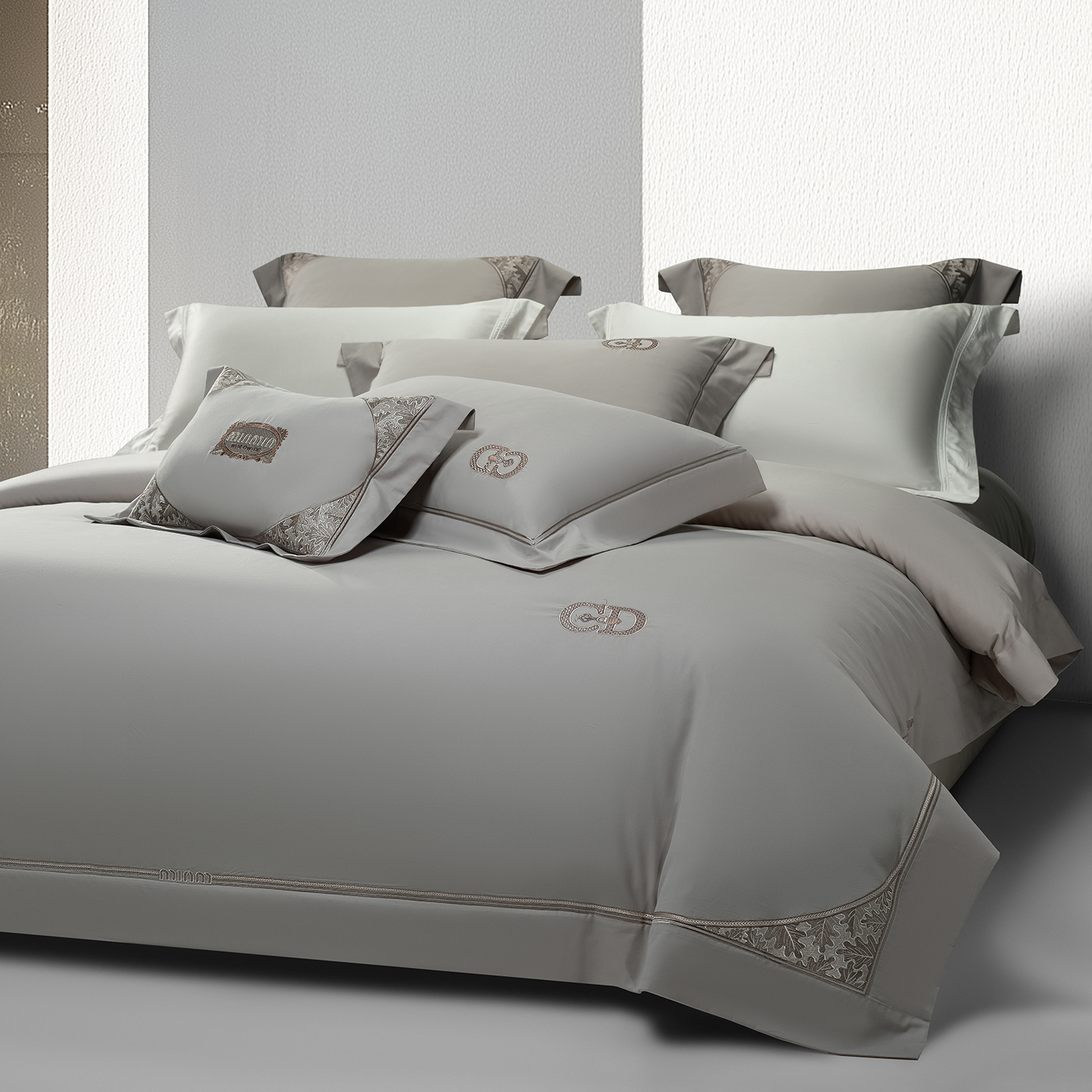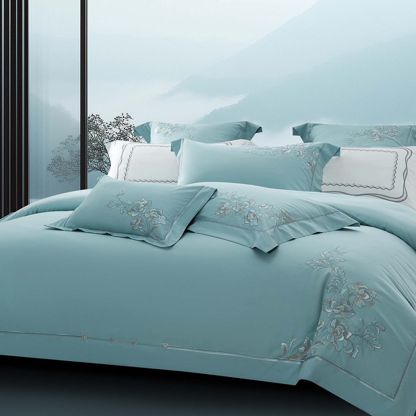 自然醒140支长绒棉磨毛高端绣花四件套100%全棉刺绣被套罩纯棉床单轻奢床上用品4四季GDS