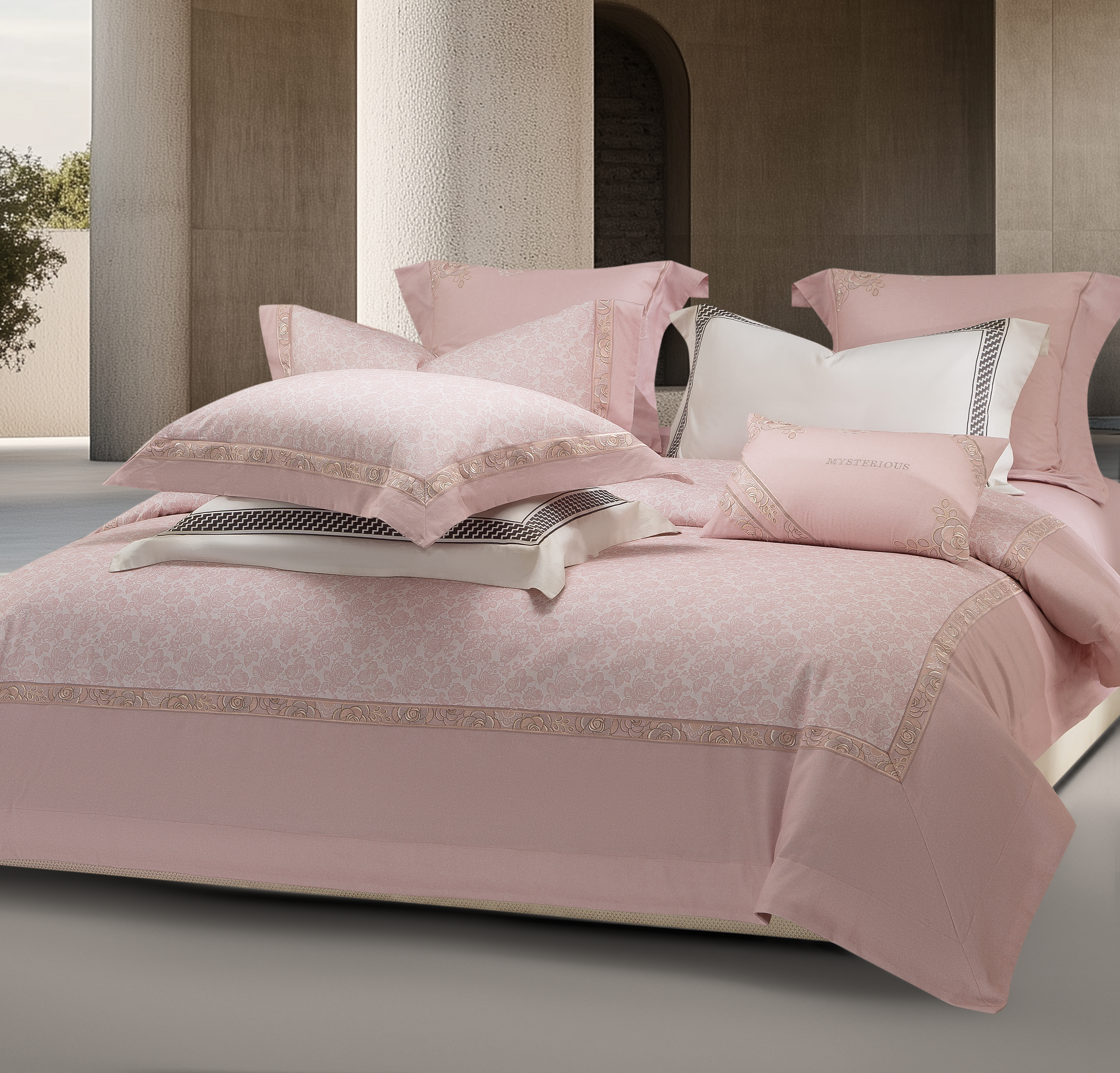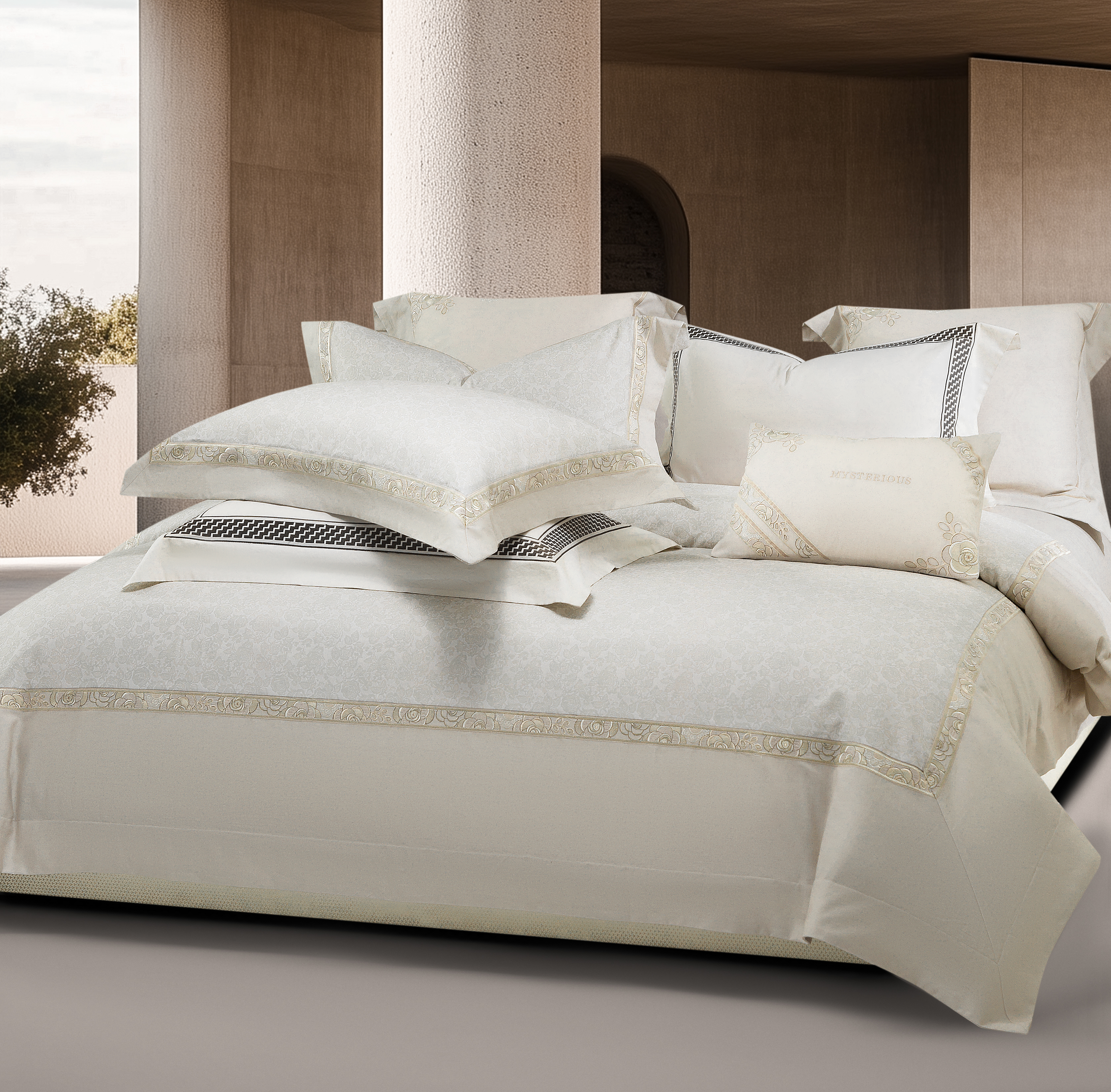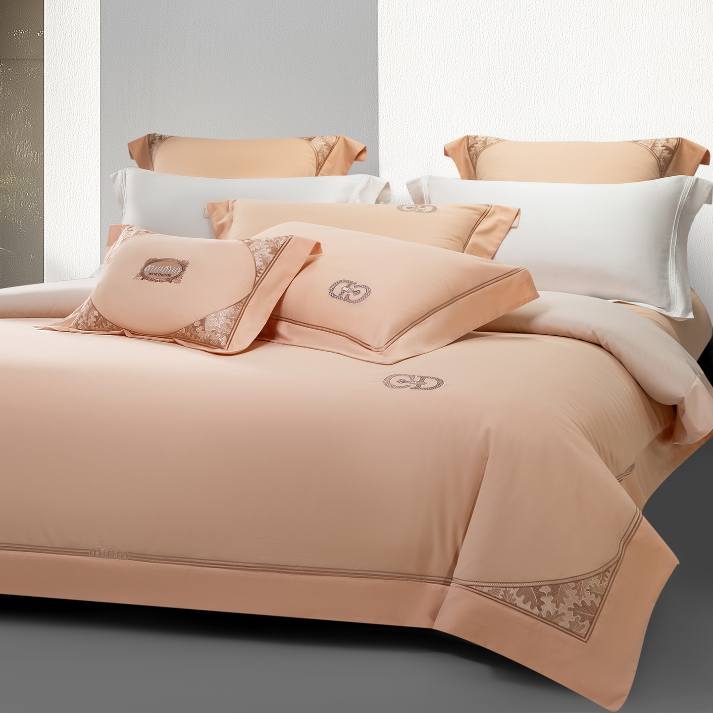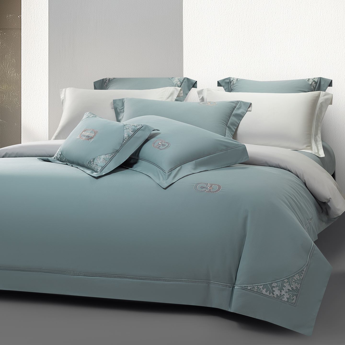 自然醒140支长绒棉磨毛高端绣花四件套100%全棉刺绣被套罩纯棉床单轻奢床上用品4四季GDS