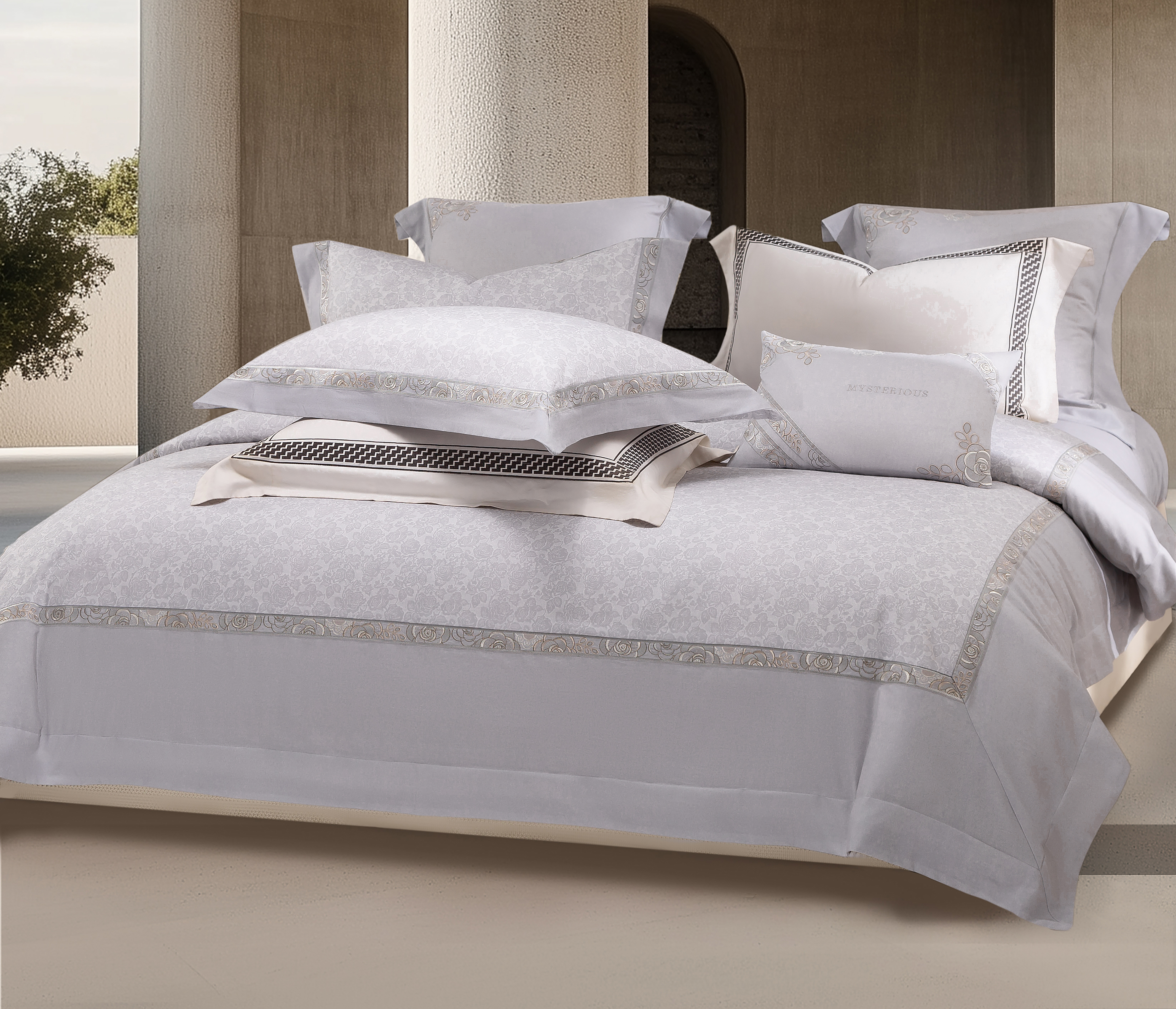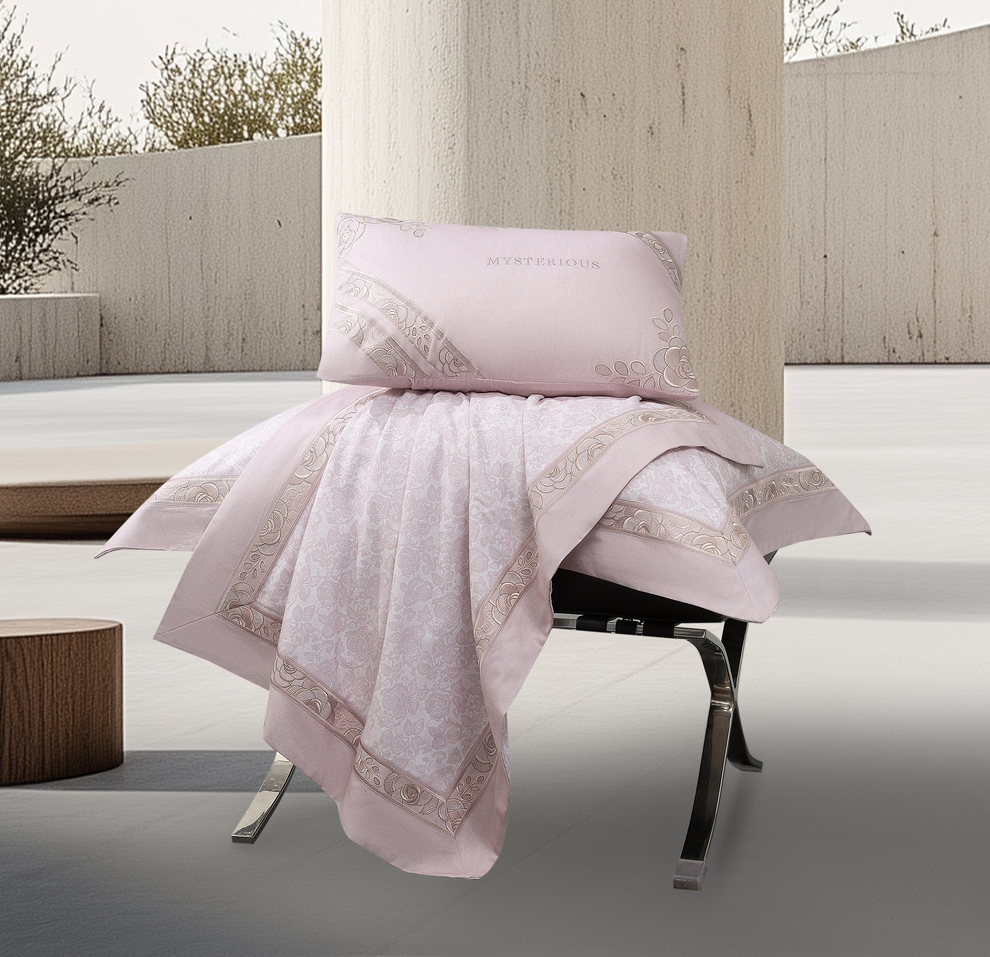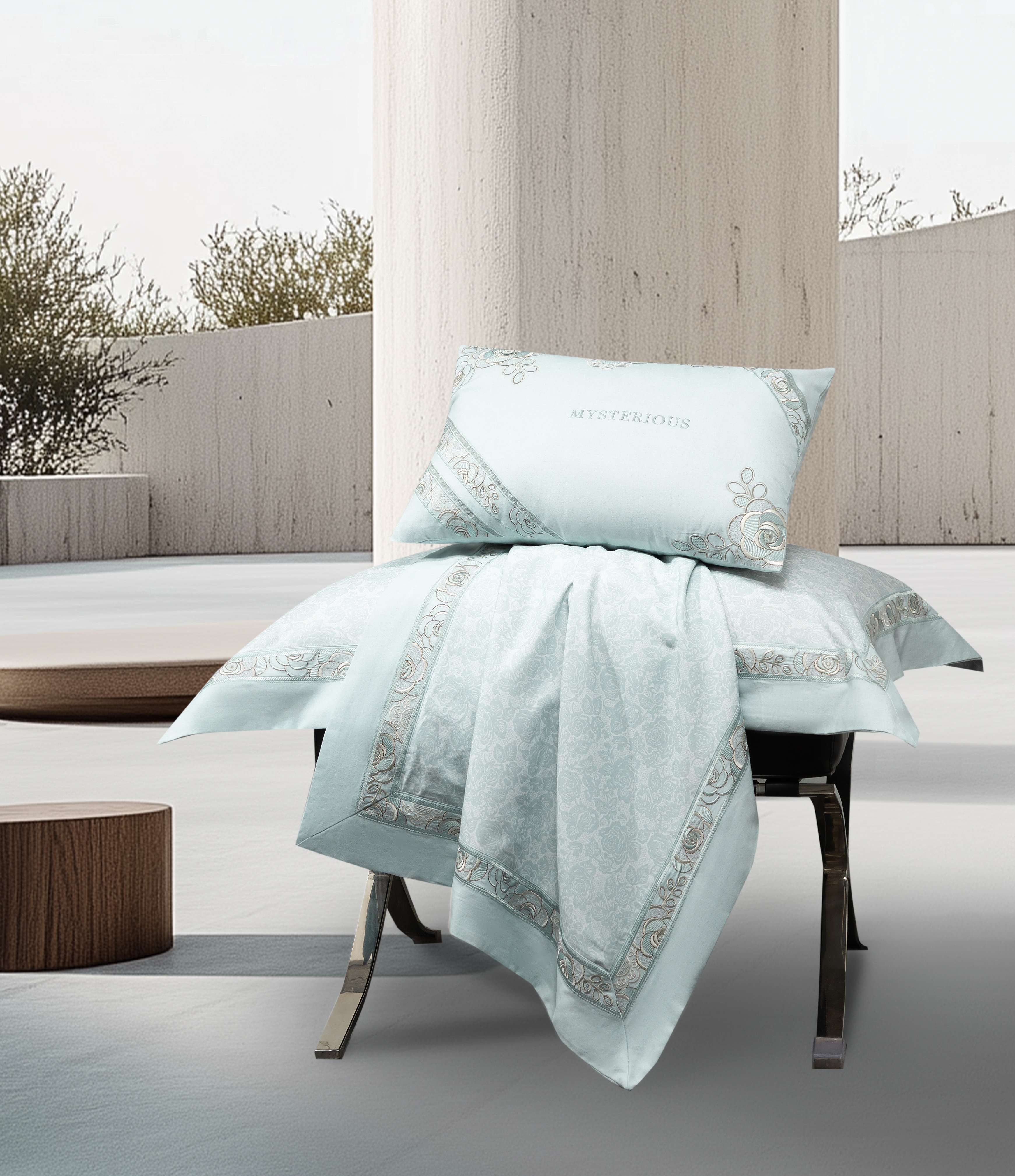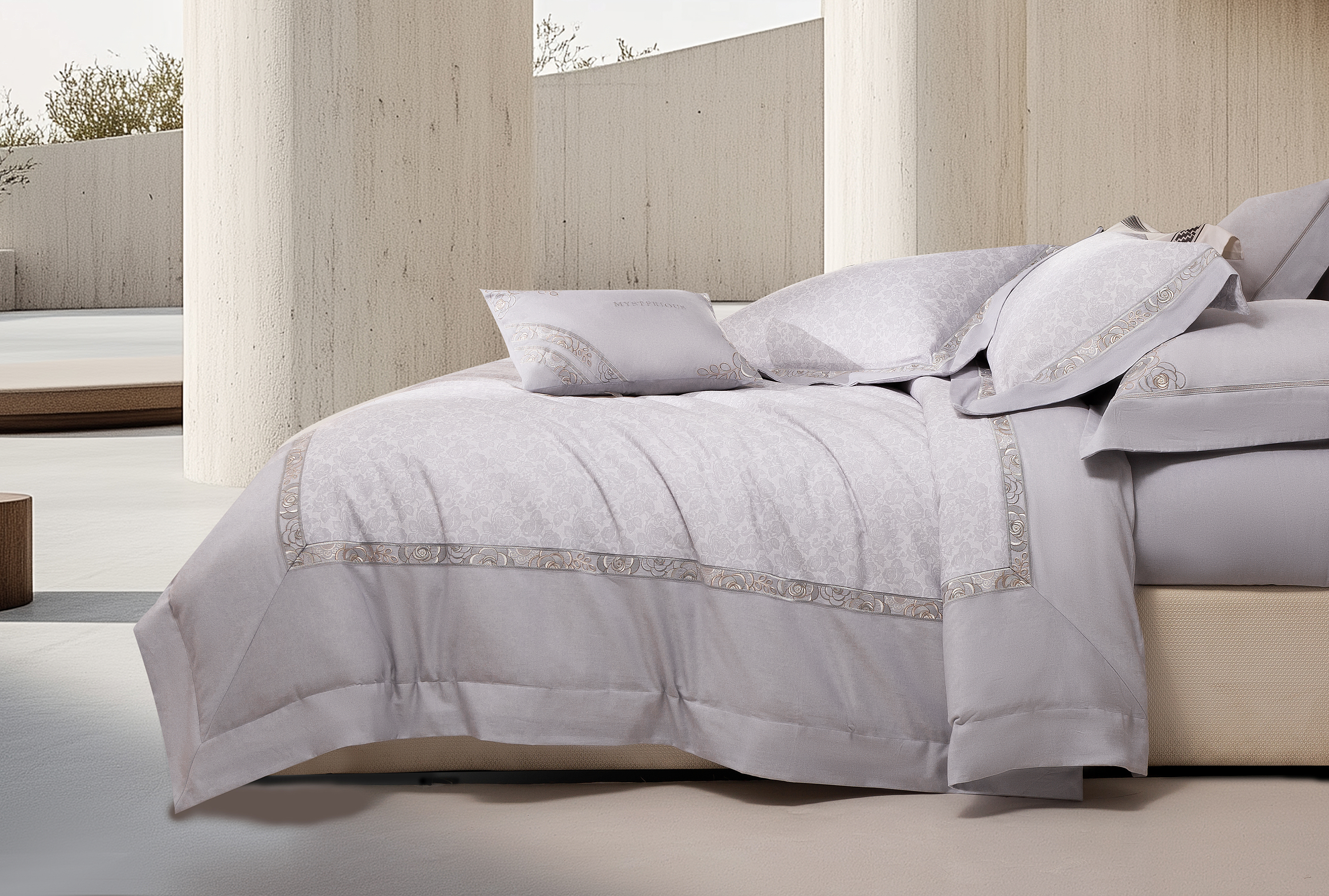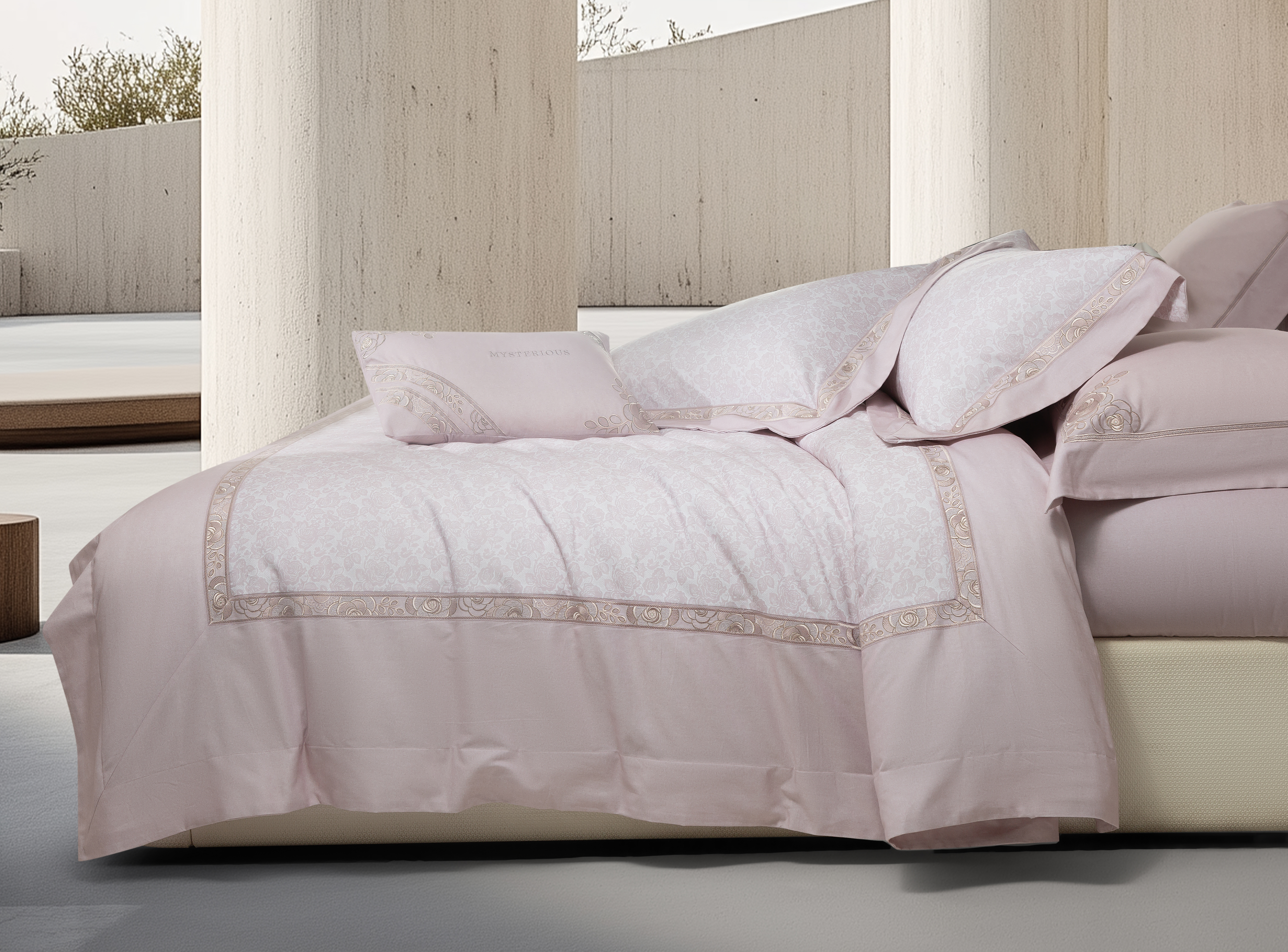 自然醒140支长绒棉磨毛高端绣花四件套100%全棉刺绣被套罩纯棉床单轻奢床上用品4四季GDS