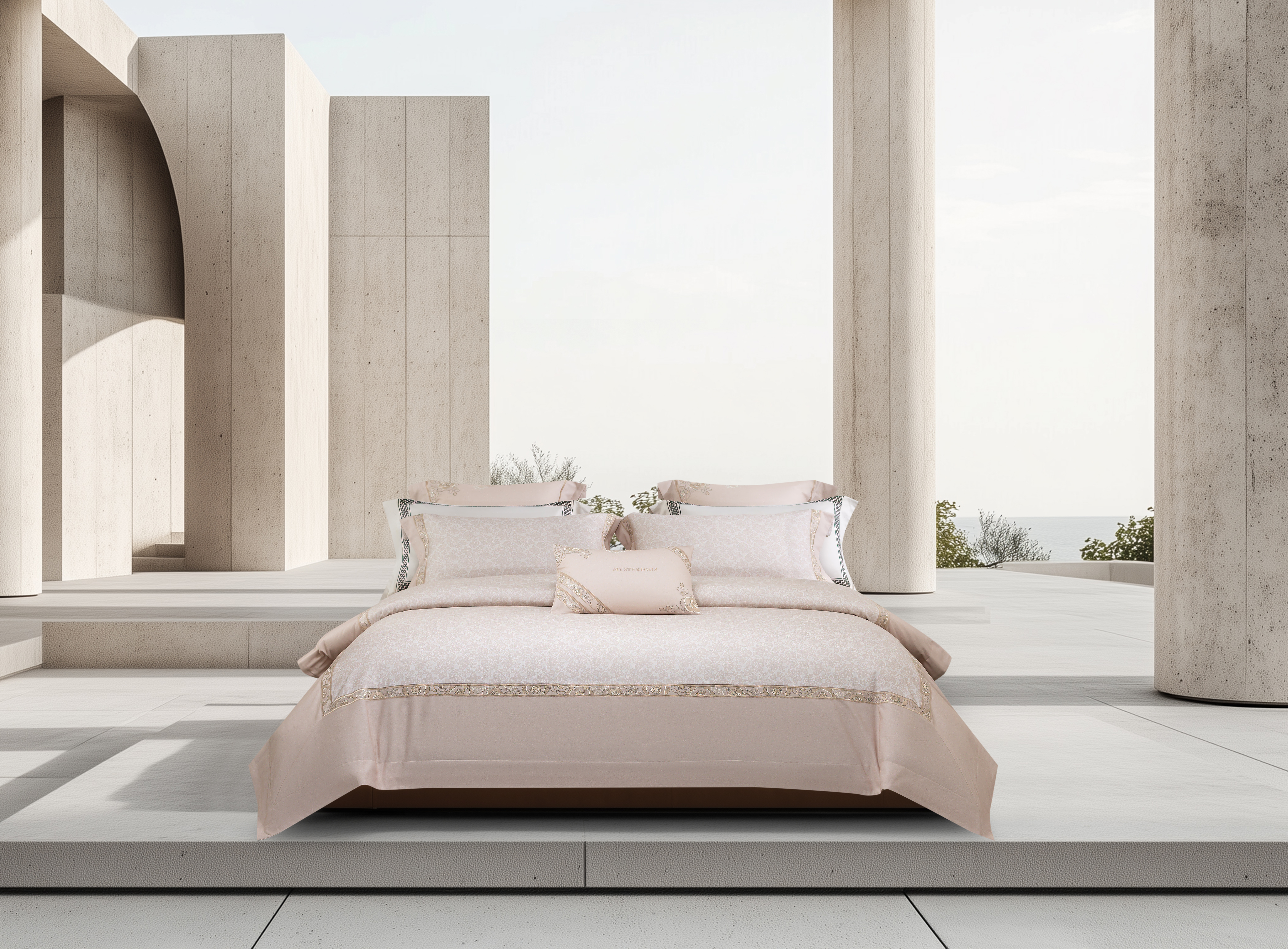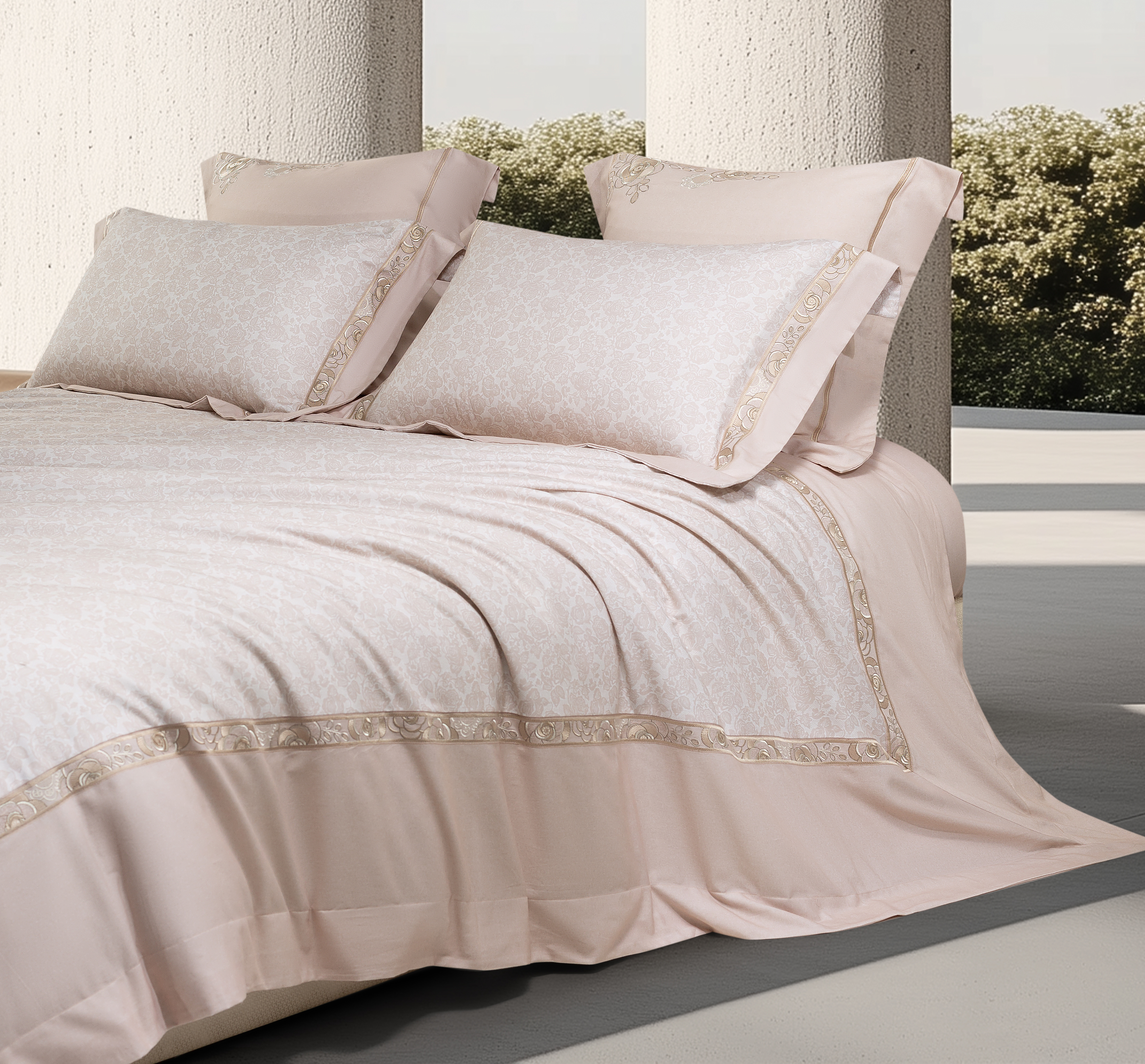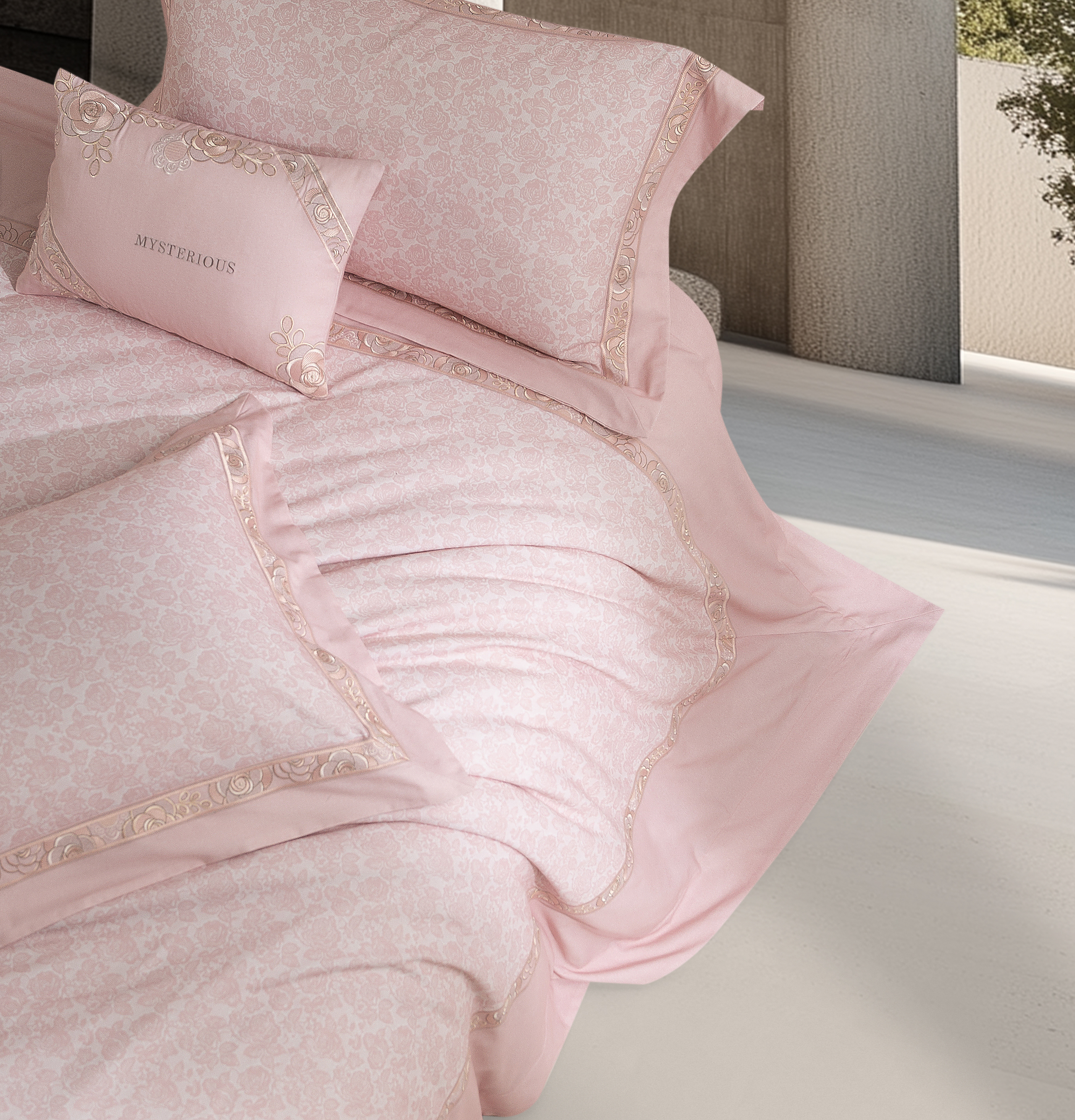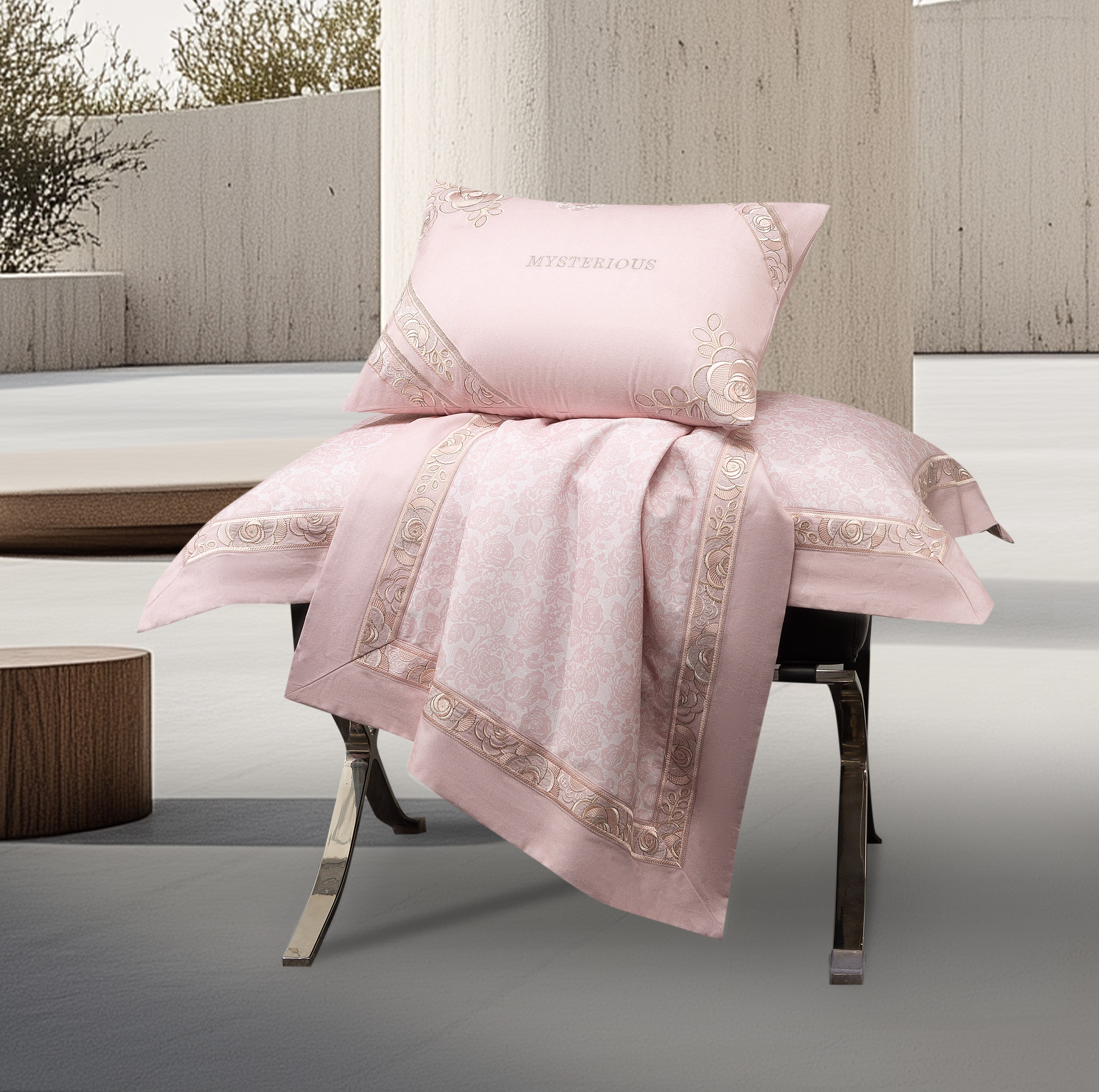 自然醒140支长绒棉磨毛高端绣花四件套100%全棉刺绣被套罩纯棉床单轻奢床上用品4四季GDS