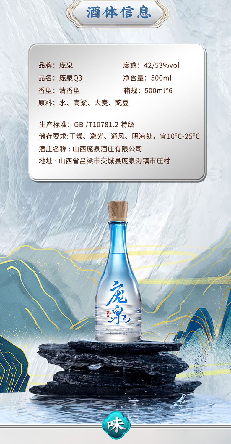 庞泉Q3清香型白酒42/53度500ml*6整箱纯粮食酒口粮酒山西老酒大曲酒