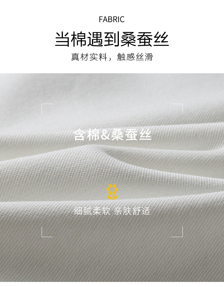 面料:60.7%棉 37.2%聚酯纤维 2.1%桑蚕丝