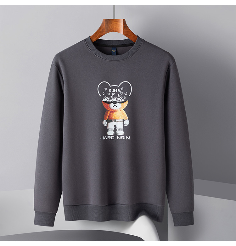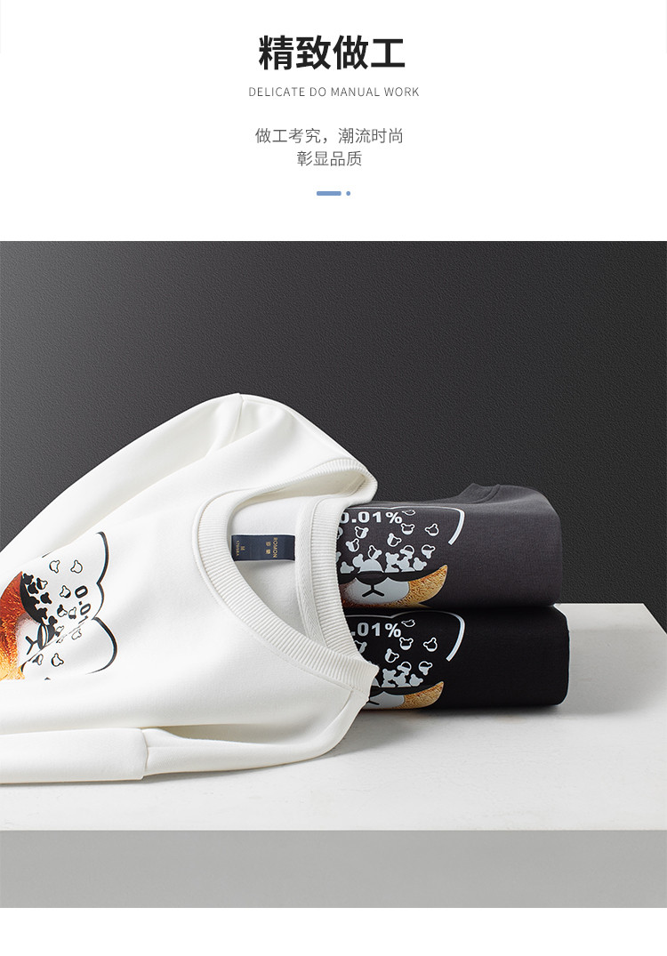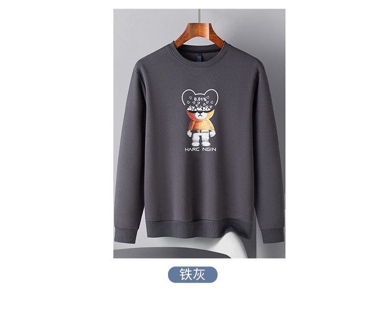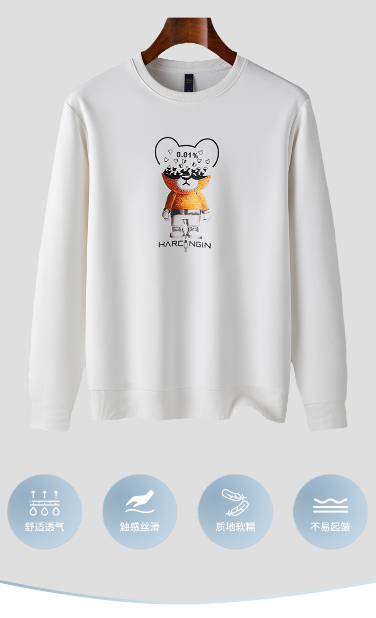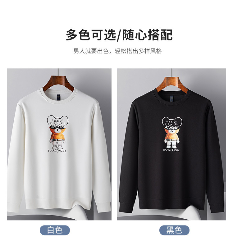 【桑蚕丝混纺】罗蒙春秋男装精美印花卫衣男士休闲百搭卫衣时尚圆领长袖T恤上衣男