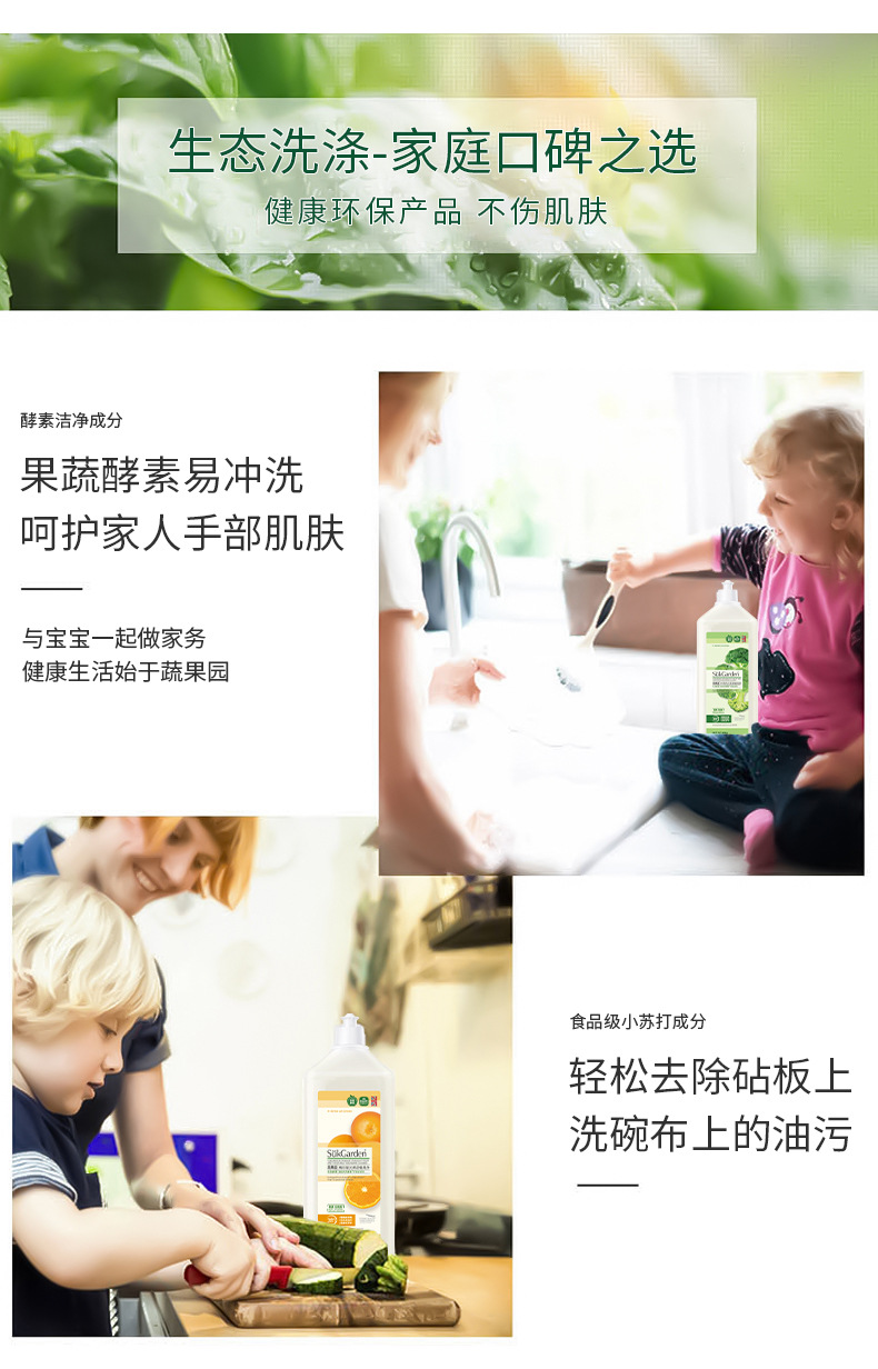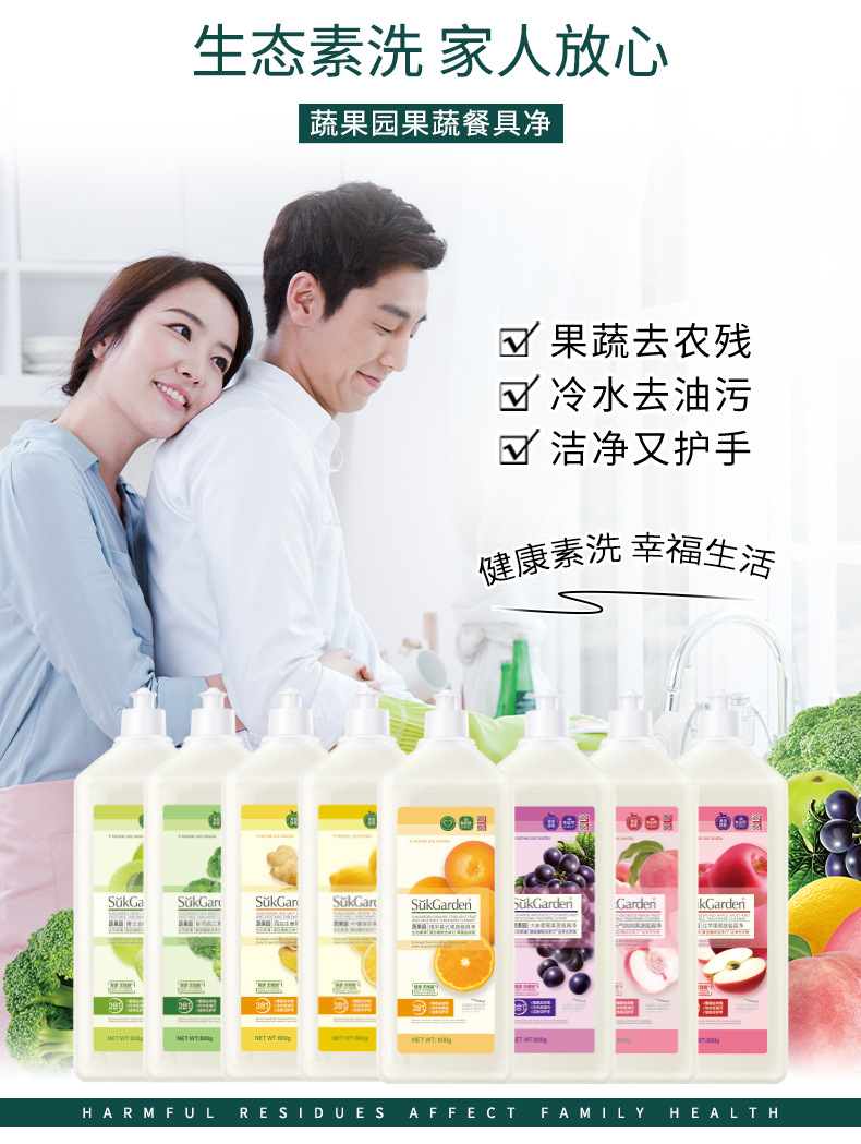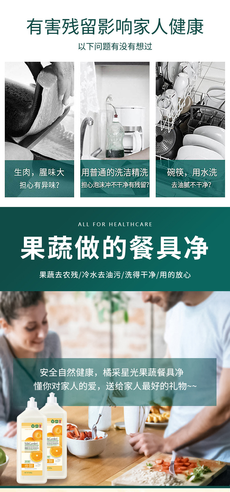 【日化洗护】蔬果园果蔬餐具净(半透瓶)泵装QSH