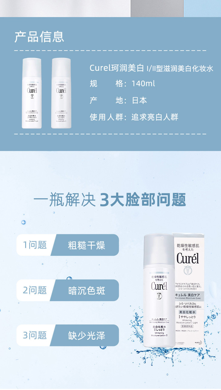 日本花王Curel珂润润浸美白柔和化妆水I(清爽型) 140ml(240309)