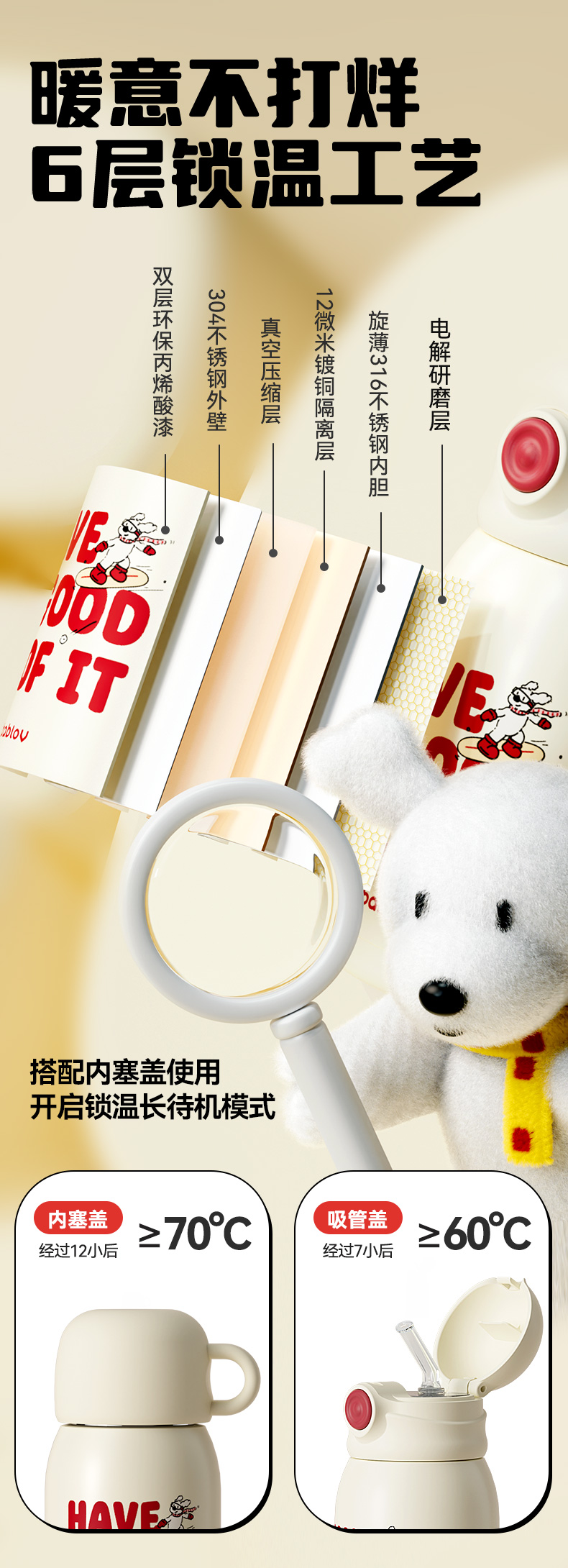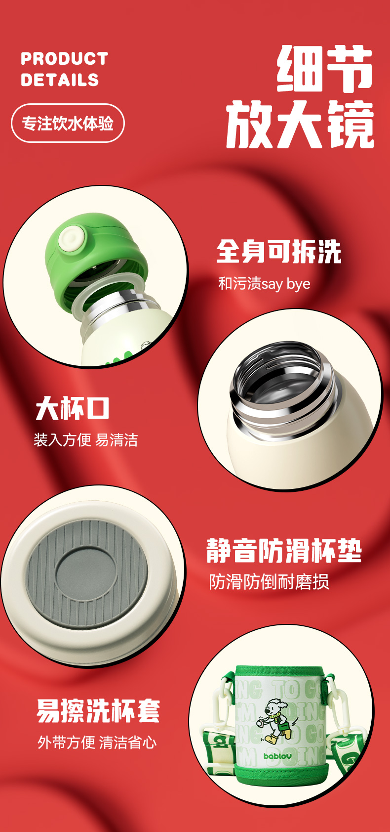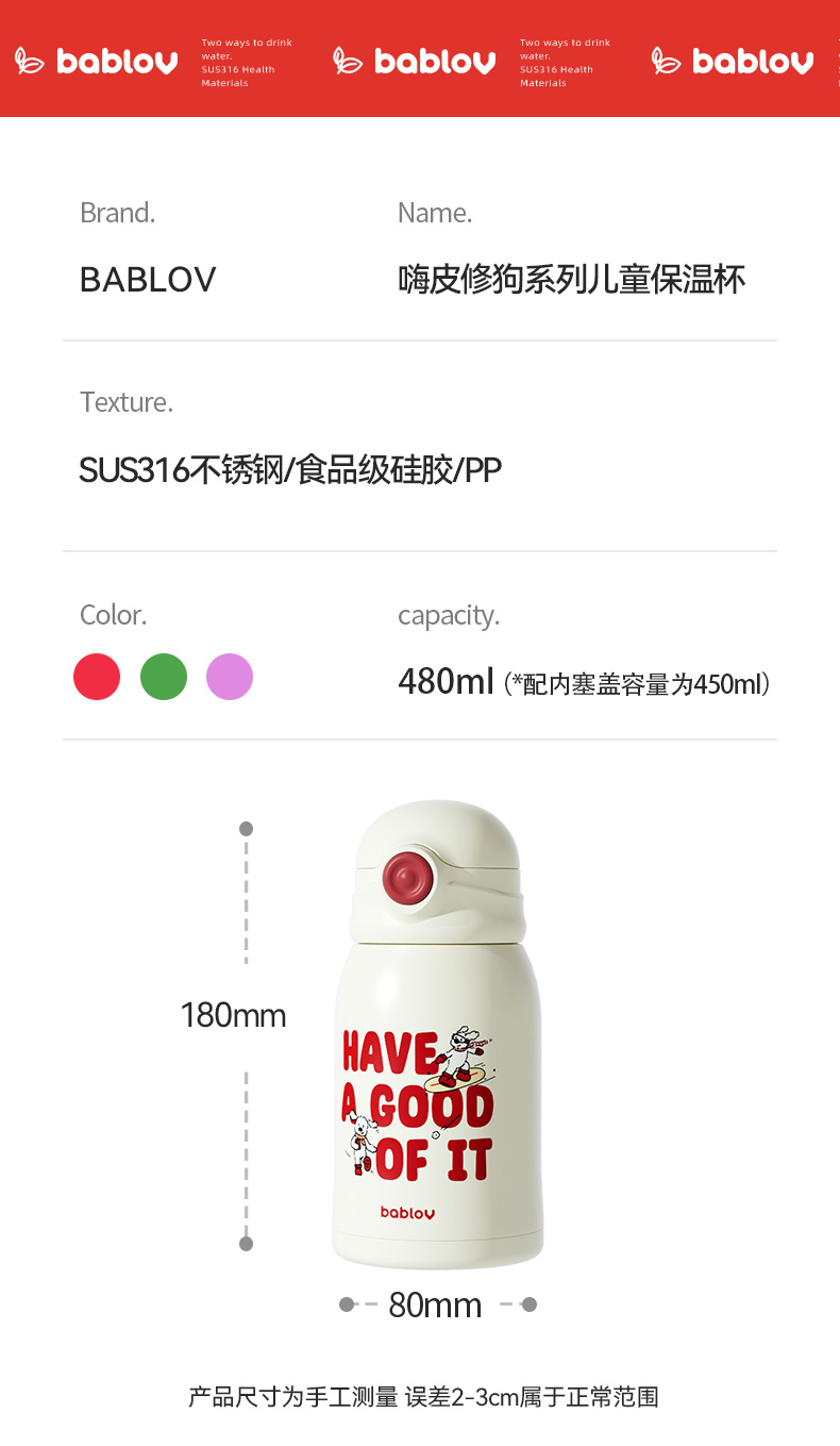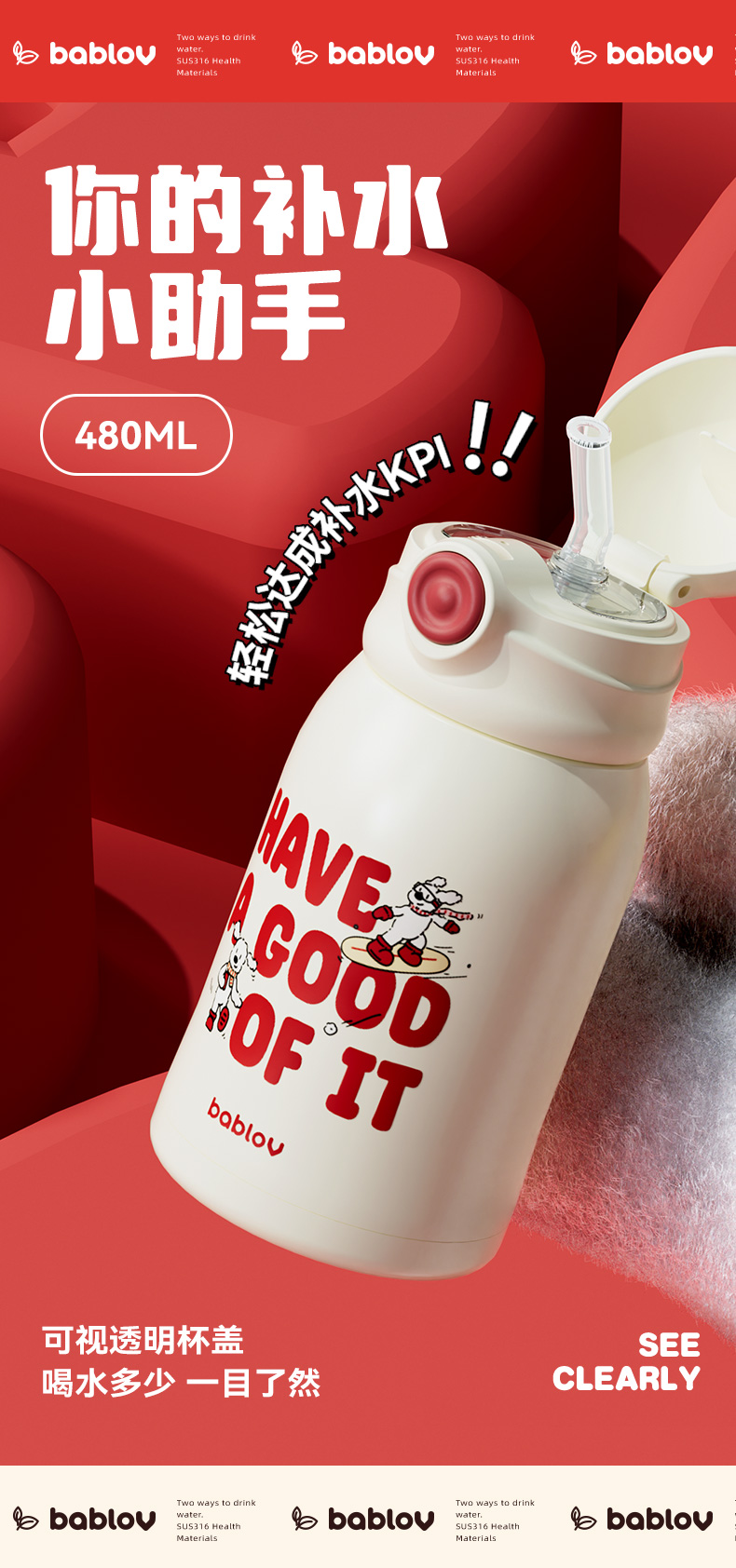 bablov保温杯儿童316不锈钢高颜值女杯子便携可爱小学生吸管水杯