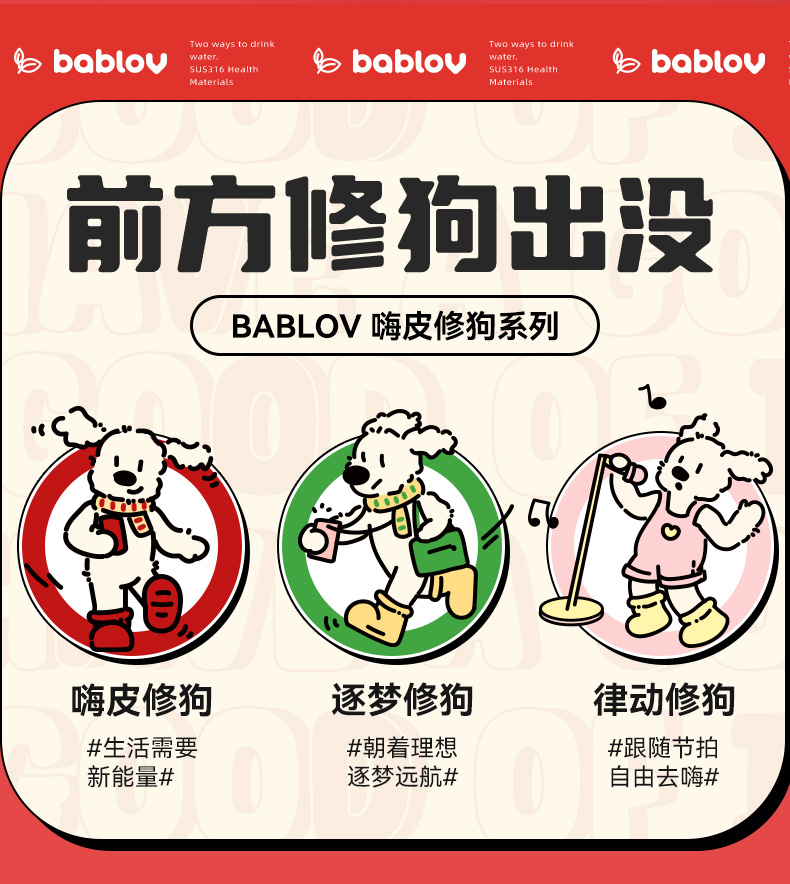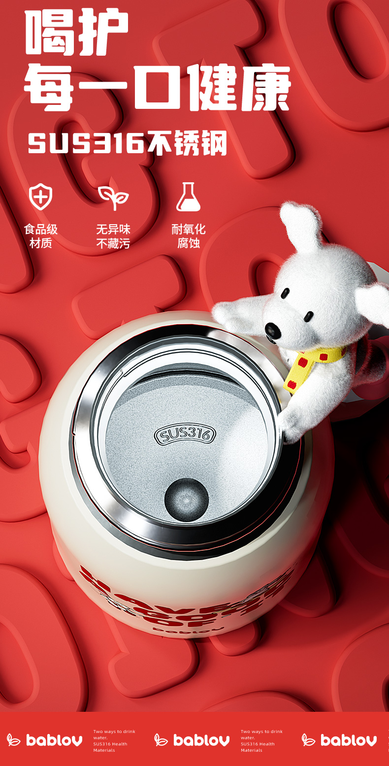 - BABLOV关注中国人的饮水健康,更不断探索未知可能性,专注于新生代自我个性表达,创造玩味新潮的产品体系。希望将水杯带入Z世代年轻人的生活,传递更多“饮”响力。