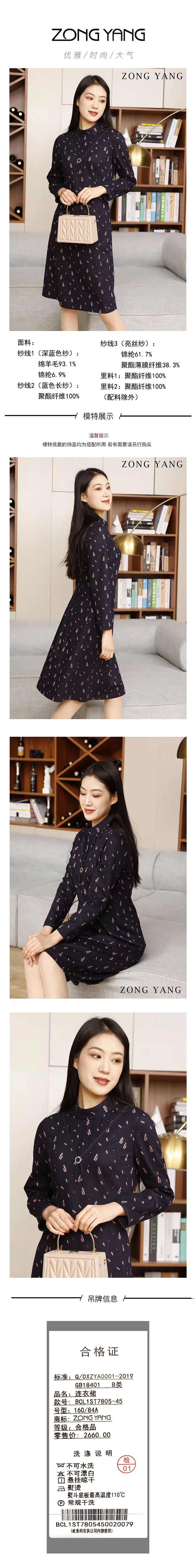 宗洋收腰立领提花面料连衣裙BCL1ST7805-45