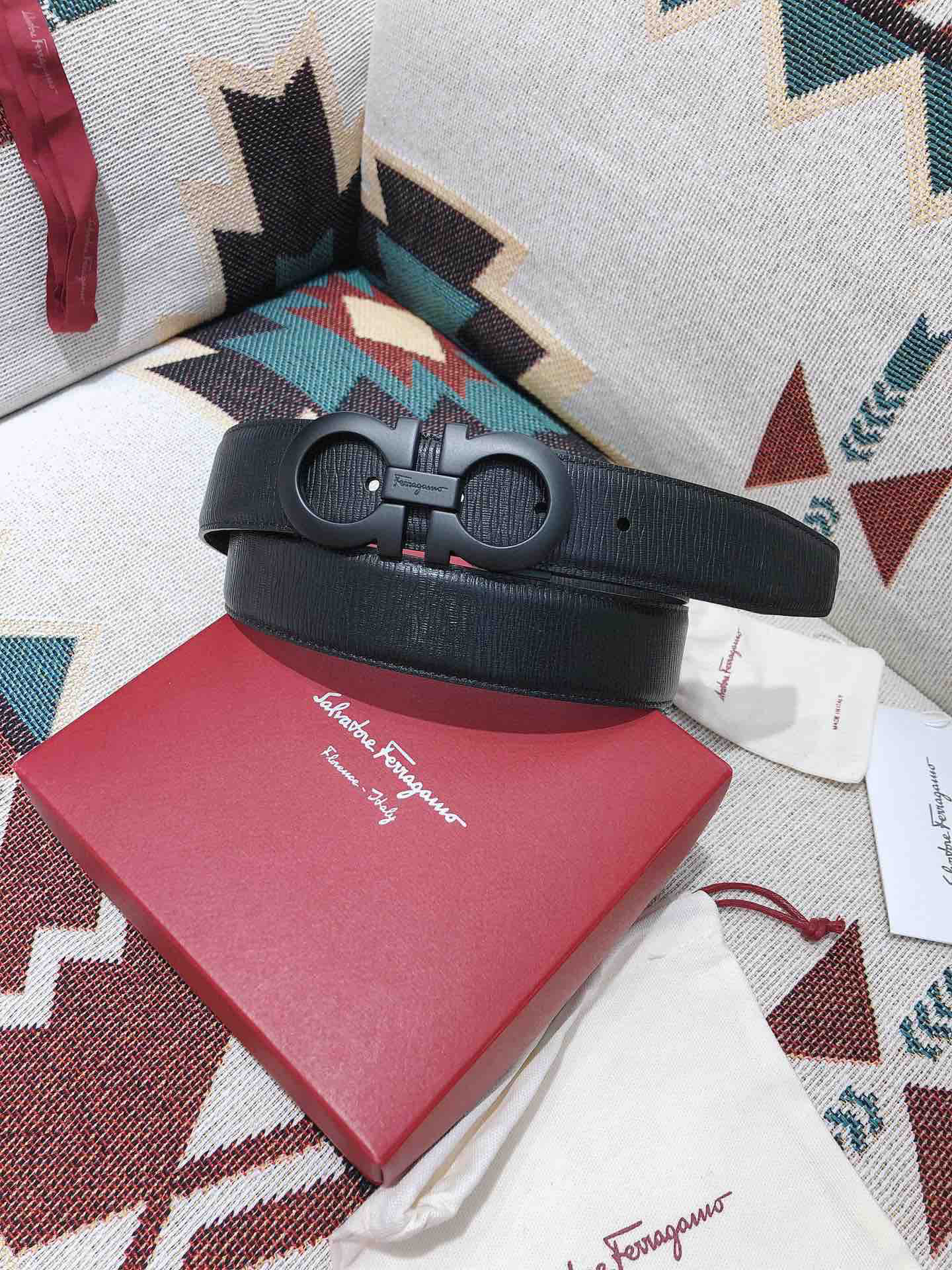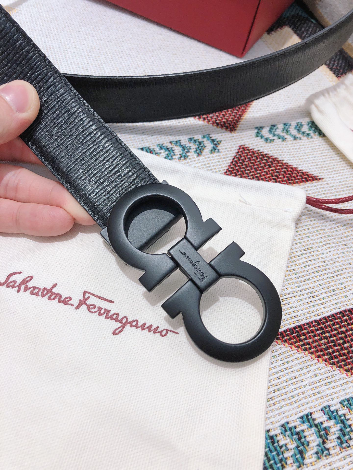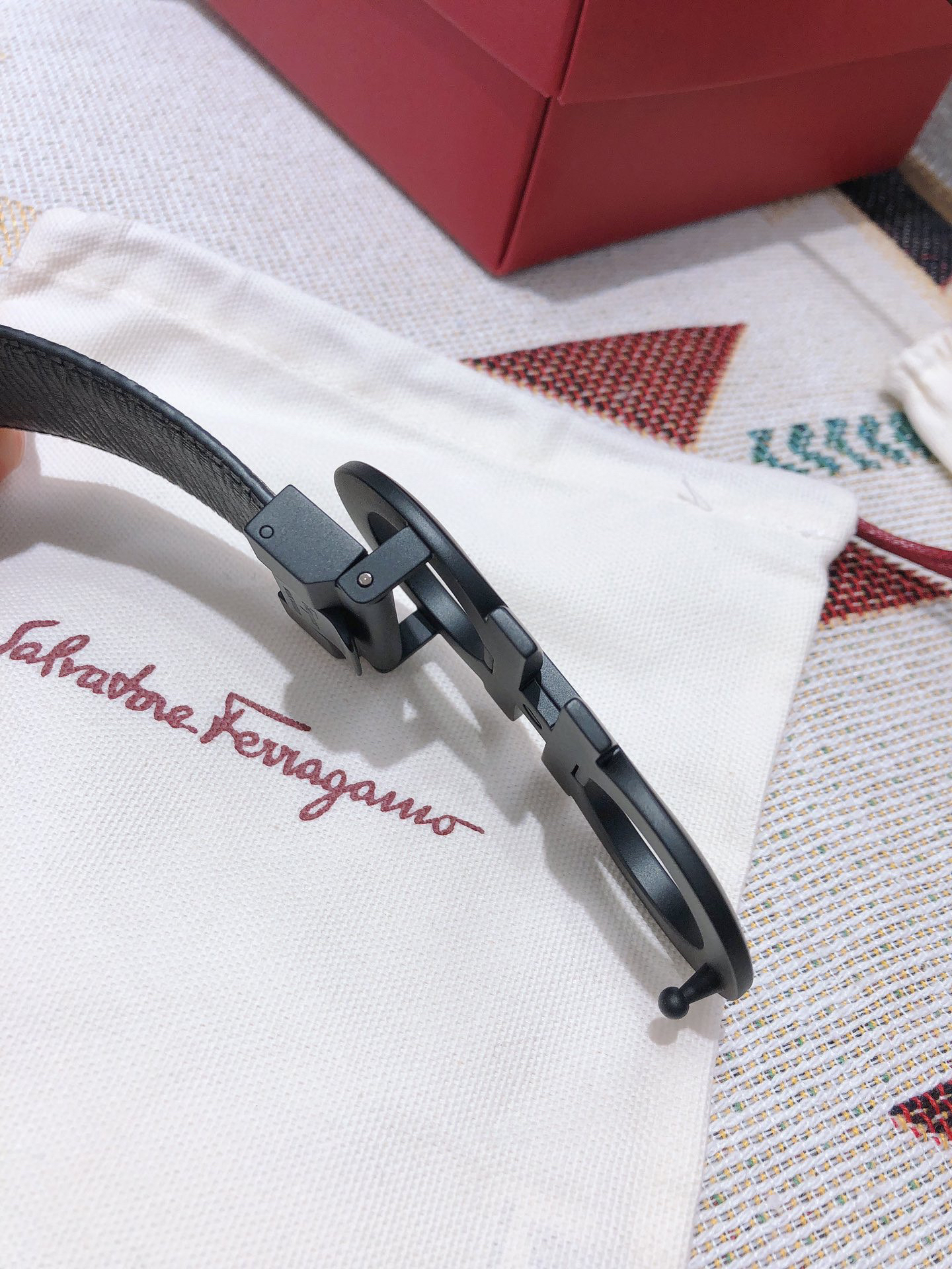 SF菲拉格慕-磨砂黑扣-水波纹